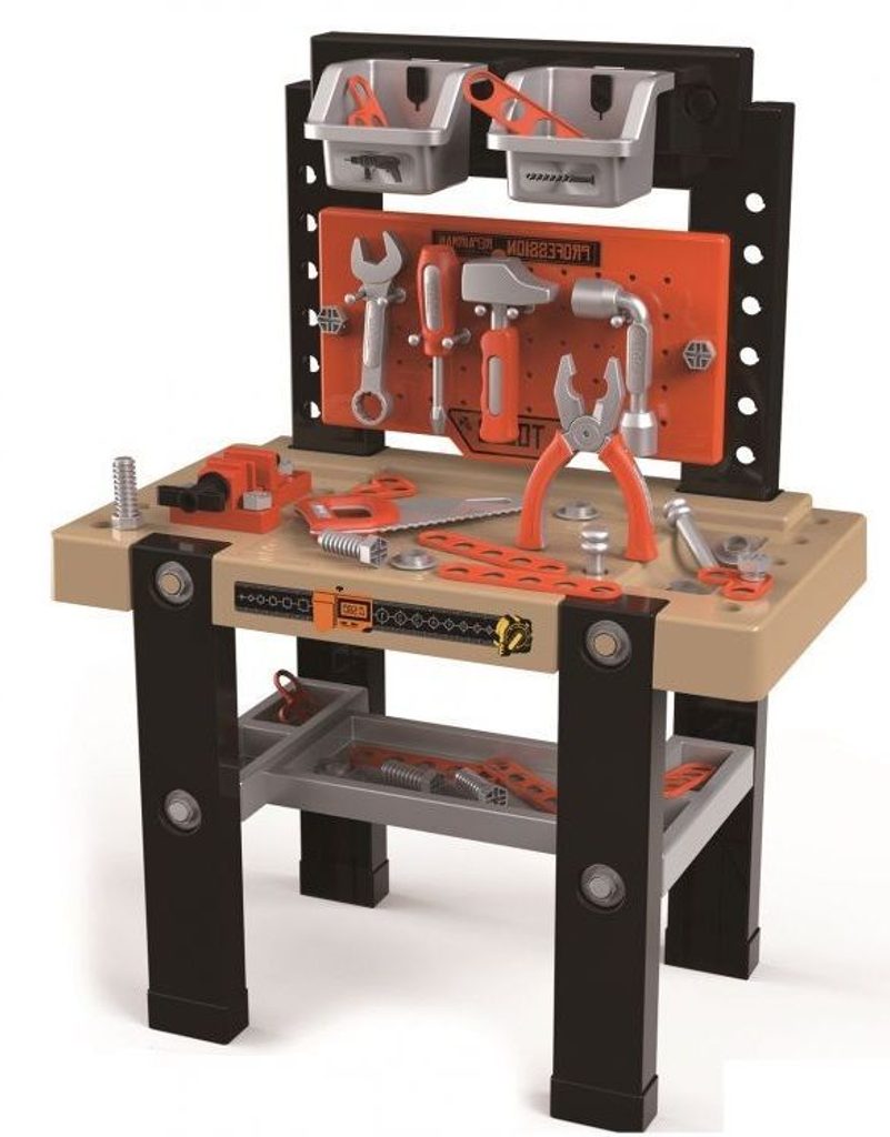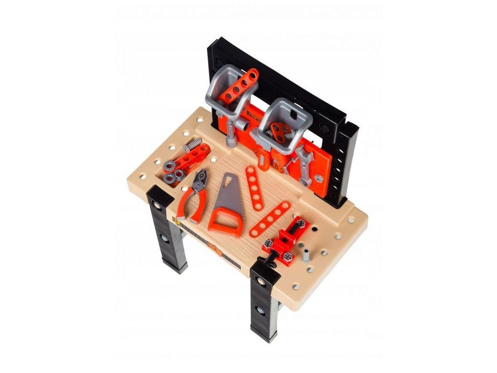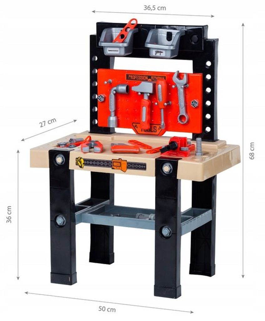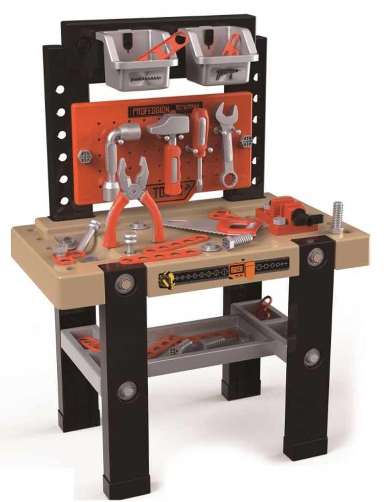 Ecotoys plastová pracovní dílna-ponk pro ty nejmenší kutily. Sada obsahuje celkem 50 součástí včetně pilky, pravítka, kladívka, klíče, šroubků, matic a dalších konstrukčních prvků. Ve spodní části je umístěna praktická police. V horní části je umístěn svěrák a na hlavním panelu jsou otvory pro zašroubování šroubků. Hračka je určena pro děti od 36 měsíců věku.