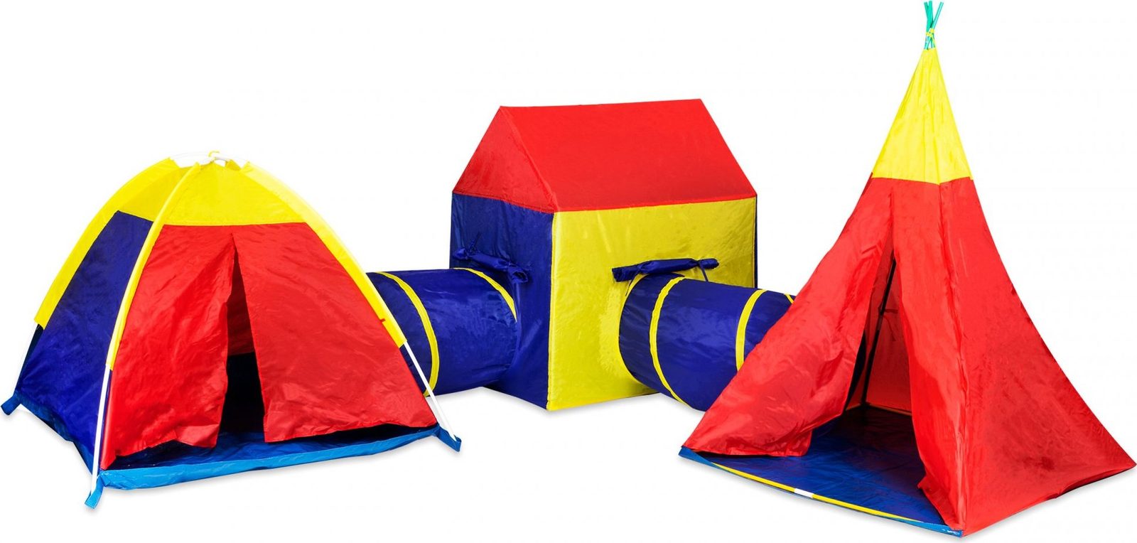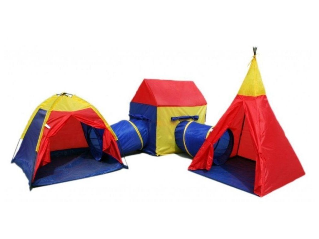 Ecotoys dětský stan 5v1 se skládá ze dvou stanů Iglů a TeePee, které se dají použít samostatně a Domečku přes který se dají propojit tunelem o průměru 48 cm. Díky nepromokavé podlaze je vhodný jak do vnitřních prostor tak i pro venkovní použití. Každý stan má 2 vchody, kdy jeden z nich slouží na připojení tunelu. Vchody do stanů se dají uchytit pomocí šnůrek. Svrchní materiál je polyester v pestrobarevném barevném provedení. Díky jednoduché konstrukci z plastových trubek je montáž stanu velmi snadná a rychlá, což oceníte zejména při jeho přemist'ování.