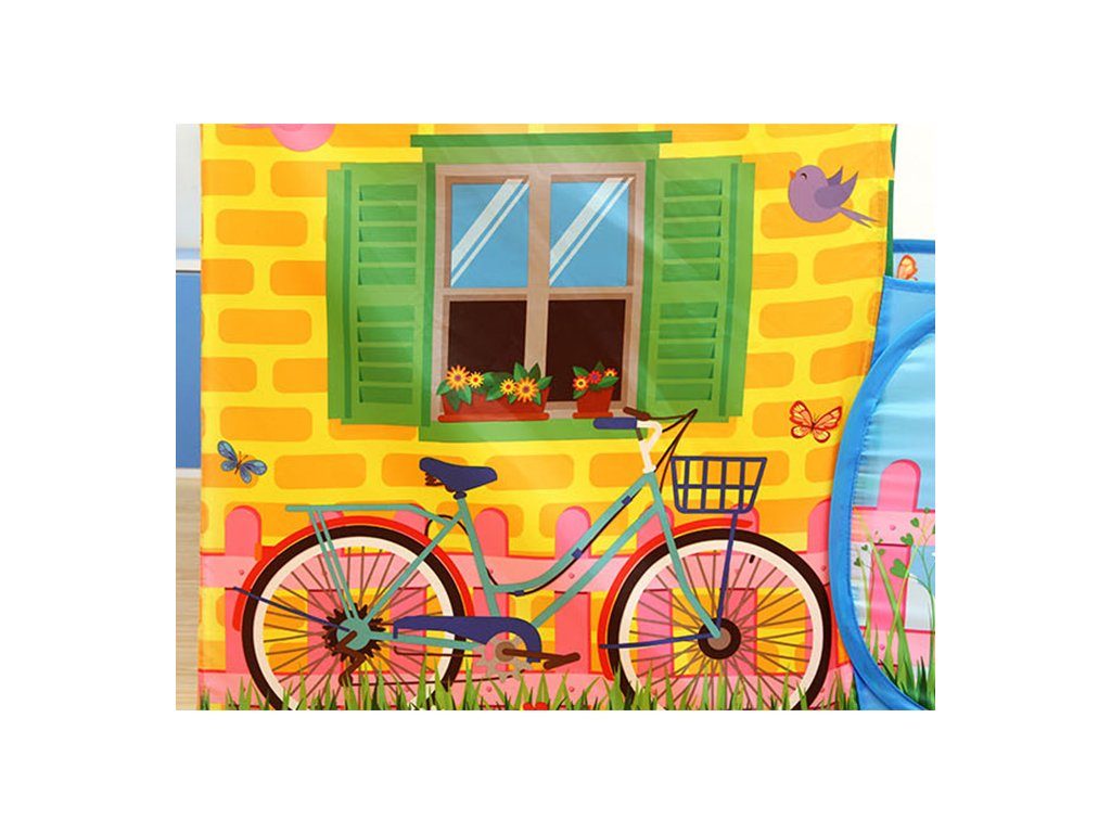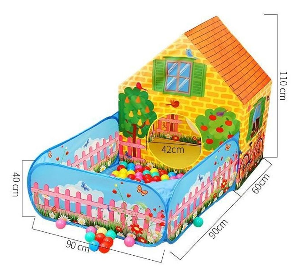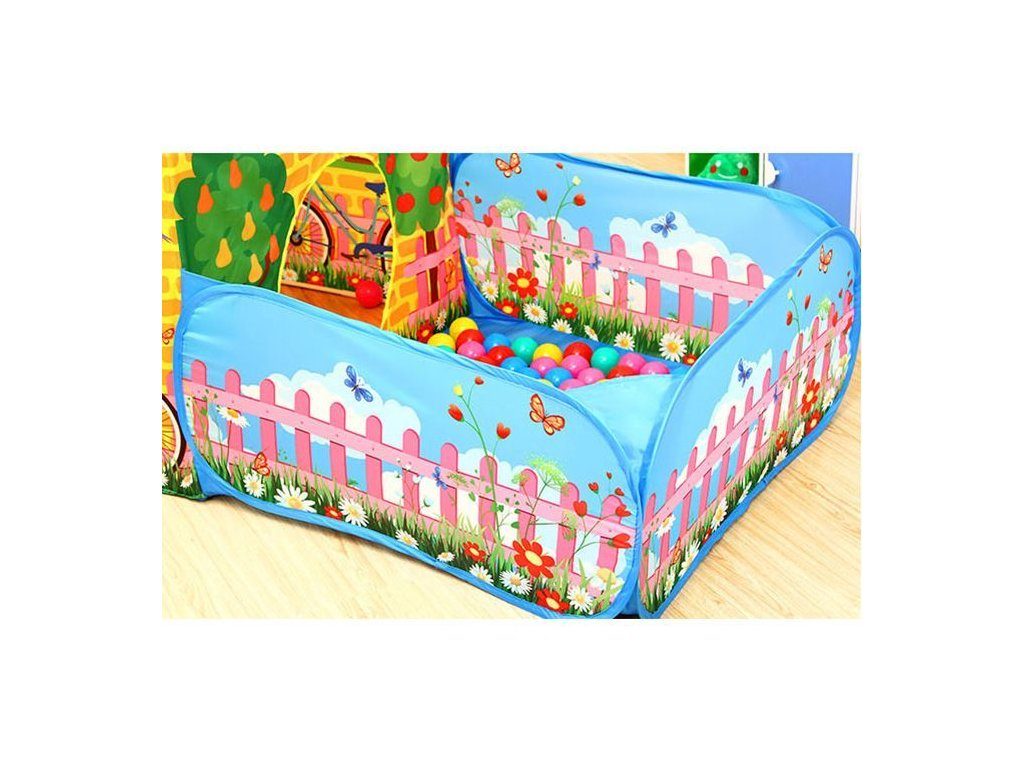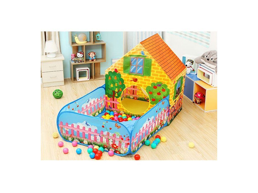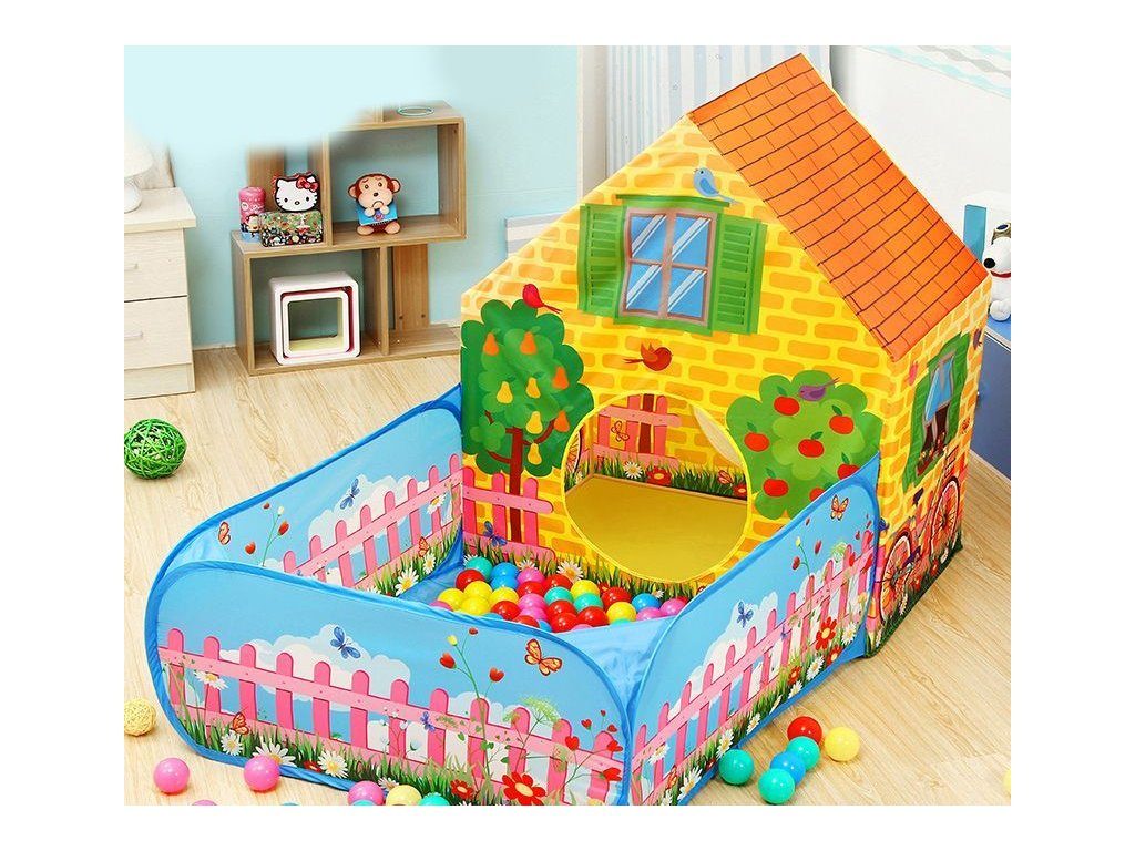 Ecotoys dětský stan Farma se zahrádkou, která slouží jako suchý bazén do kterého si můžete dokpupit plastové míčky. Je vhodný jak do vnitřních prostor tak i pro venkovní použití. Svrchní materiál je voděodolný pestrobarevný polyester. Montáž stanu je díky velmi snadná a rychlá, což oceníte zejména při jeho přemist'ování.