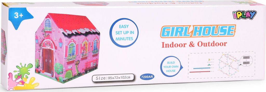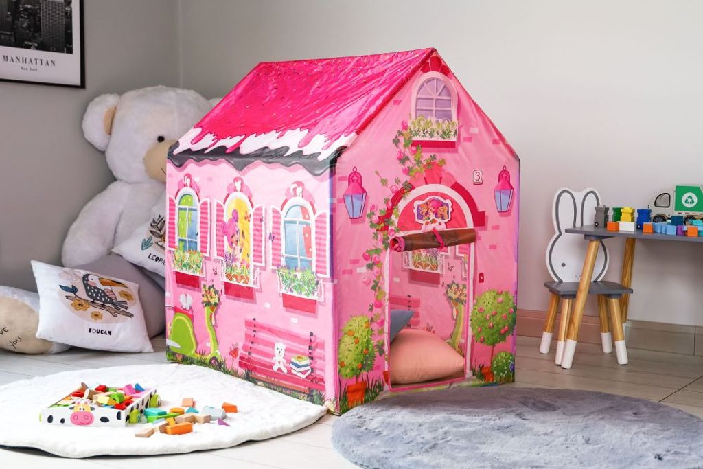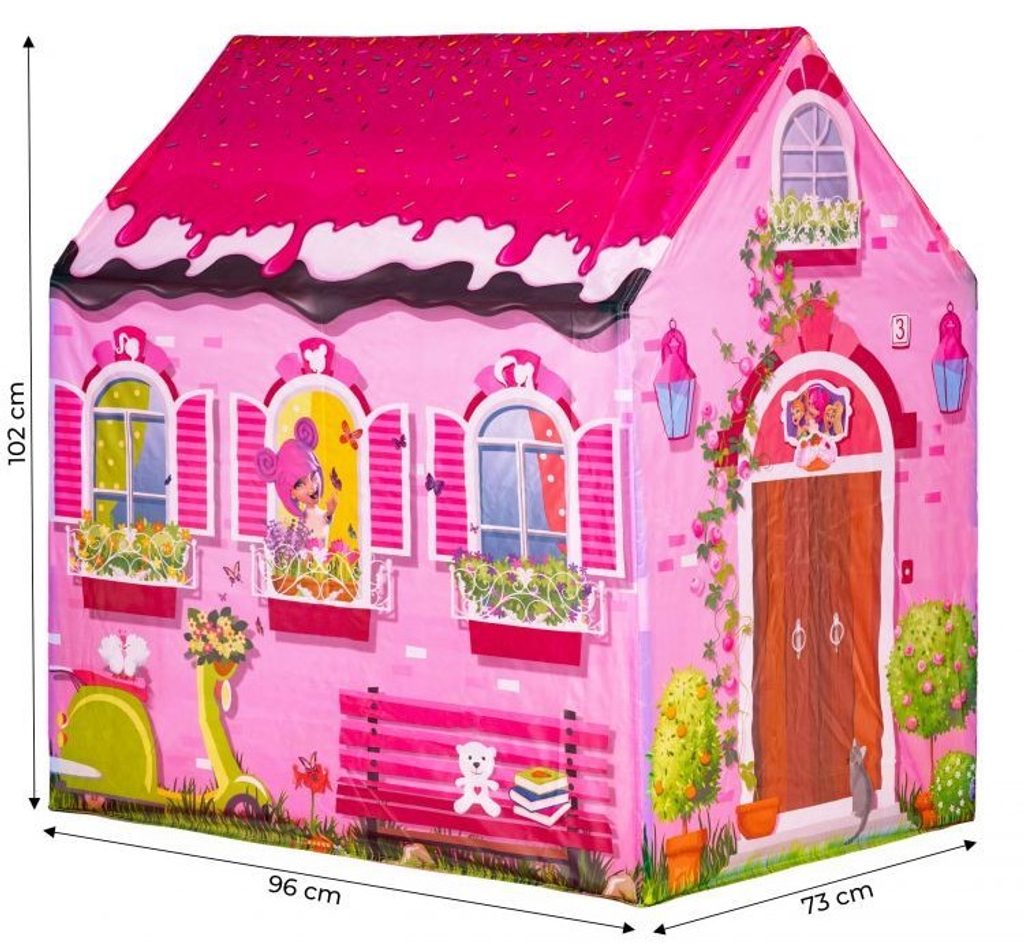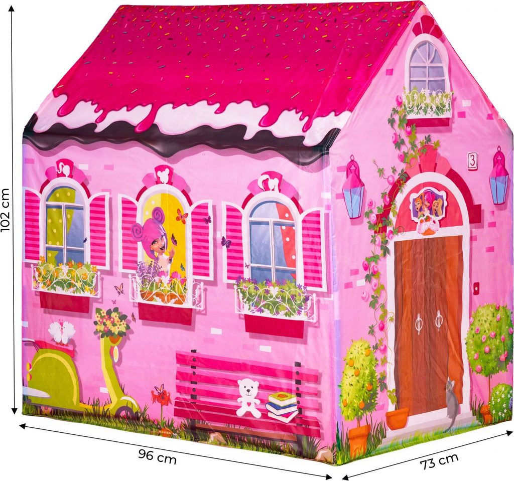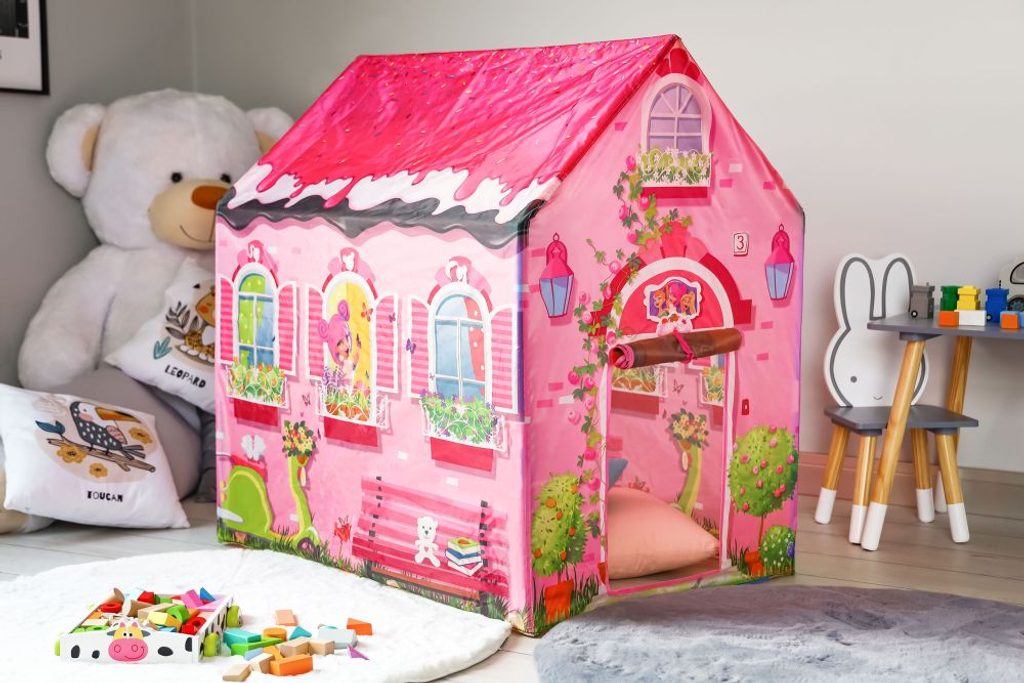Ecotoys dětský stan s motivem růžového domečku. Je vhodný jak do vnitřních prostor tak i pro venkovní použití.  Svrchní materiál je polyester s vyobrazením domečku. Montáž stanu je díky jednoduché konstrukci velmi snadná a rychlá, což oceníte zejména při jeho přemist'ování.