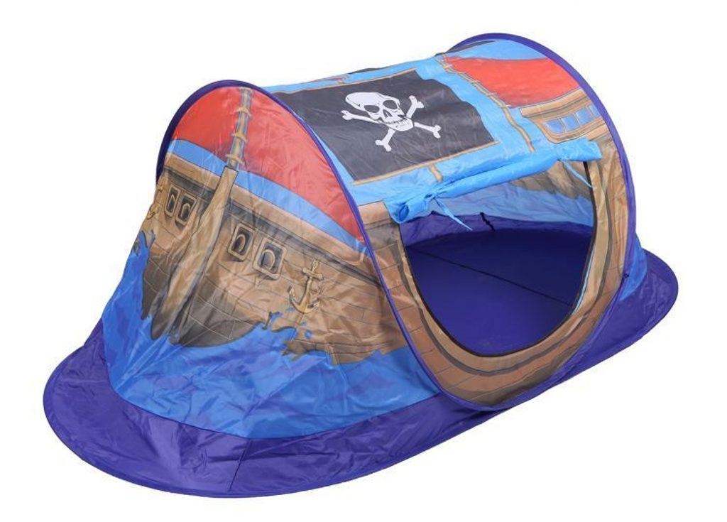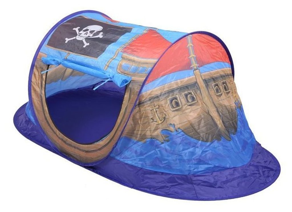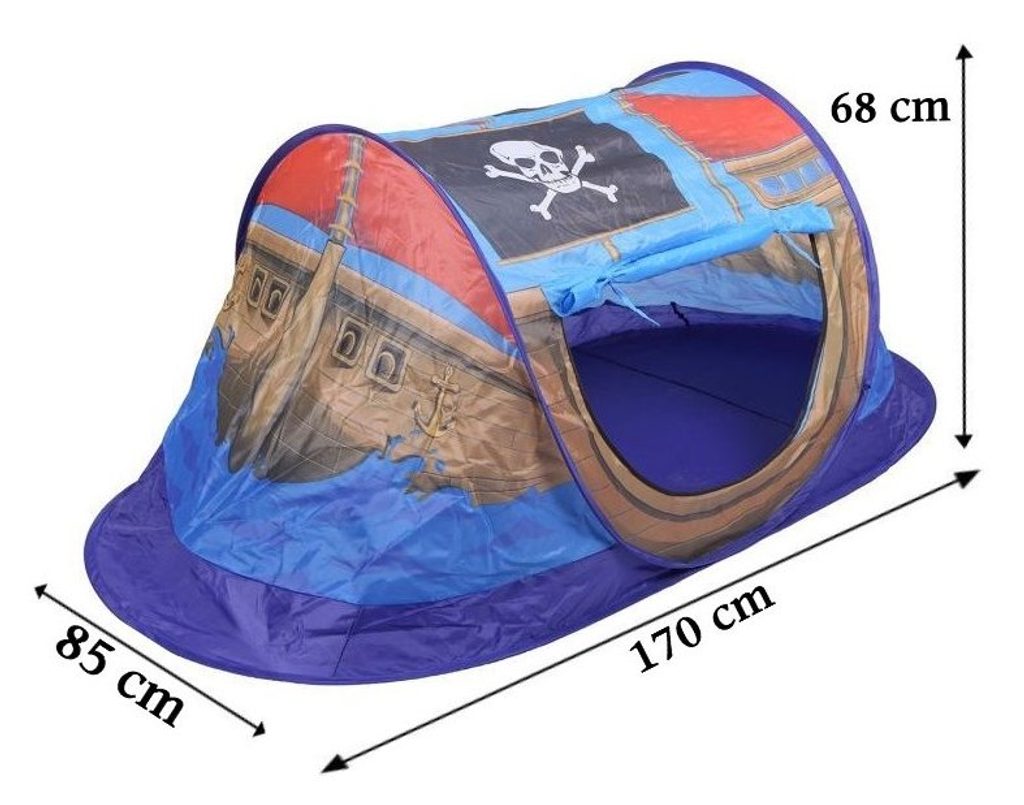 Ecotoys dětský stan s motivem pirátské lodi. Je vhodný jak do vnitřních prostor tak i pro venkovní použití. Je vybaven dvěmi rolovacími bočními vchody. Svrchní materiál je polyester, podlaha je nepromokavá. Montáž stanu je velmi a snadná a rychlá, což oceníte zejména při jeho přemist'ování.