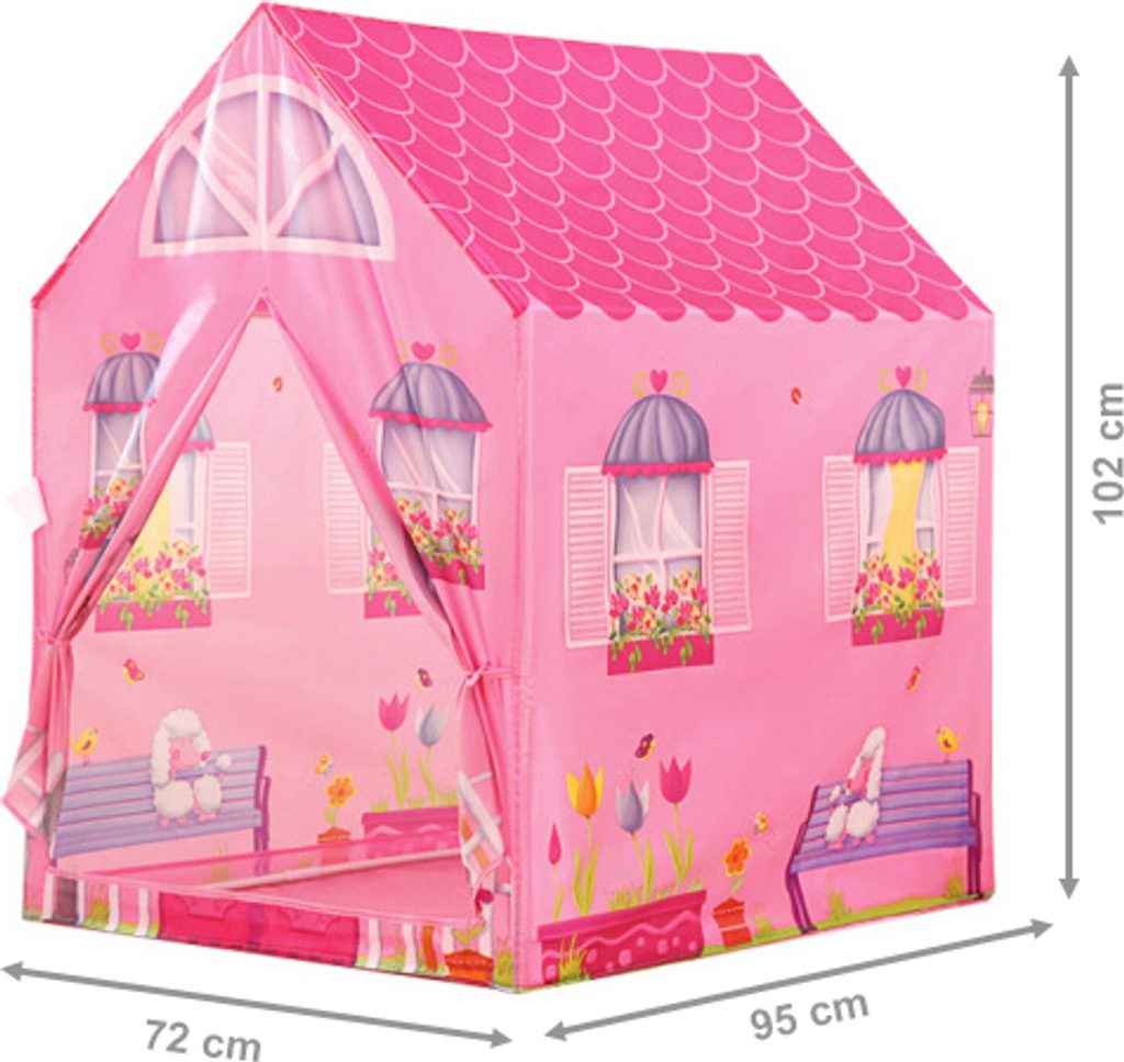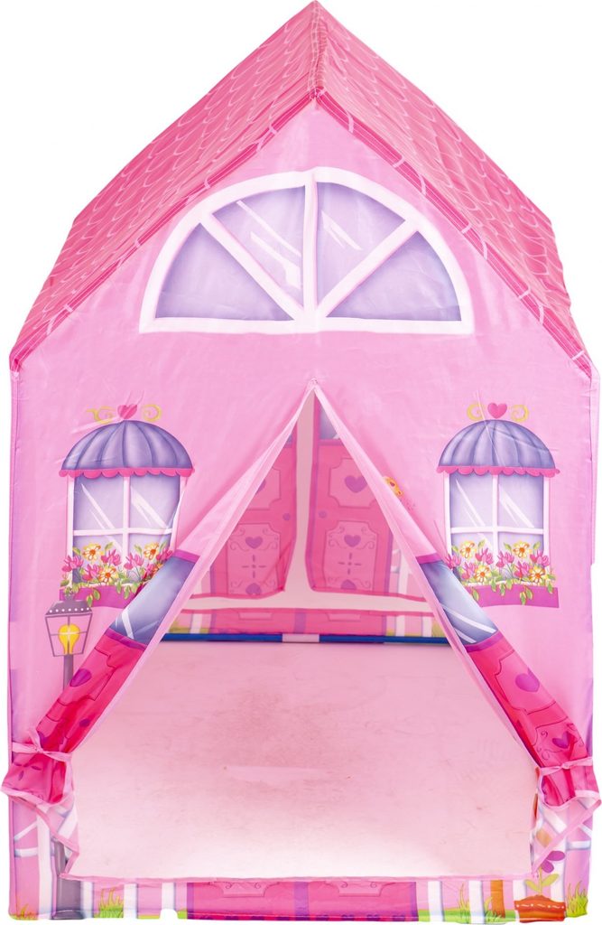 Ecotoys dětský stan s motivem růžového domečku. Je vhodný jak do vnitřních prostor tak i pro venkovní použití. Svrchní materiál je polyester s vyobrazením domečku. Montáž stanu je díky jednoduché konstrukci velmi snadná a rychlá, což oceníte zejména při jeho přemist'ování.