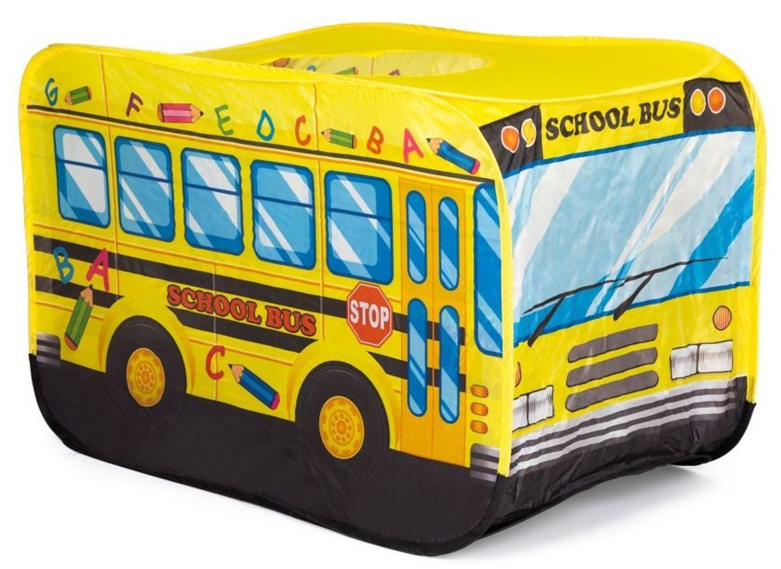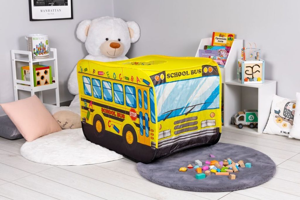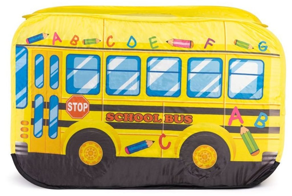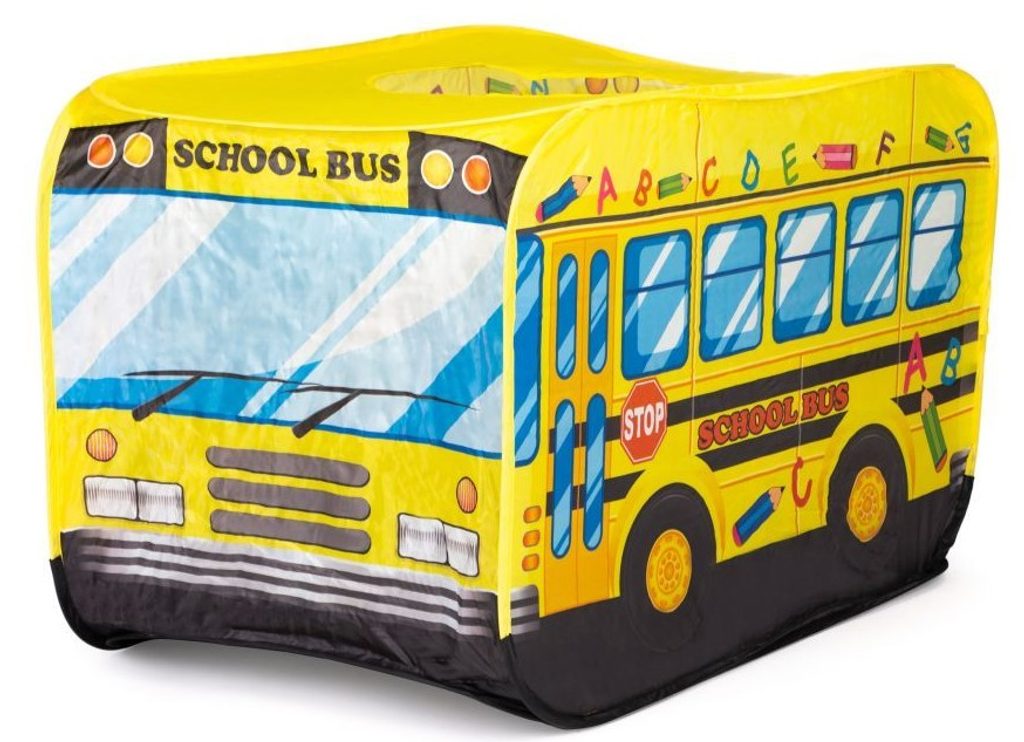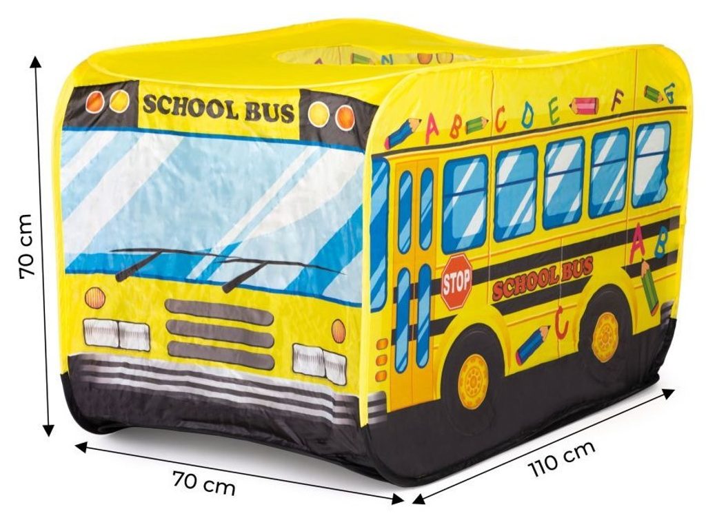 Ecotoys dětský stan s motivem školního autobusu. Díky nepromokavé podlaze je vhodný jak do vnitřních prostor tak i pro venkovní použití. Vchod do stanu je ze zadní strany stanu, ve střeše je praktický otvor. Svrchní materiál je polyester s vyobrazením školního autobusu. Montáž stanu je díky samorozkládací konstrukci velmi snadná a rychlá, což oceníte zejména při jeho přemist'ování.