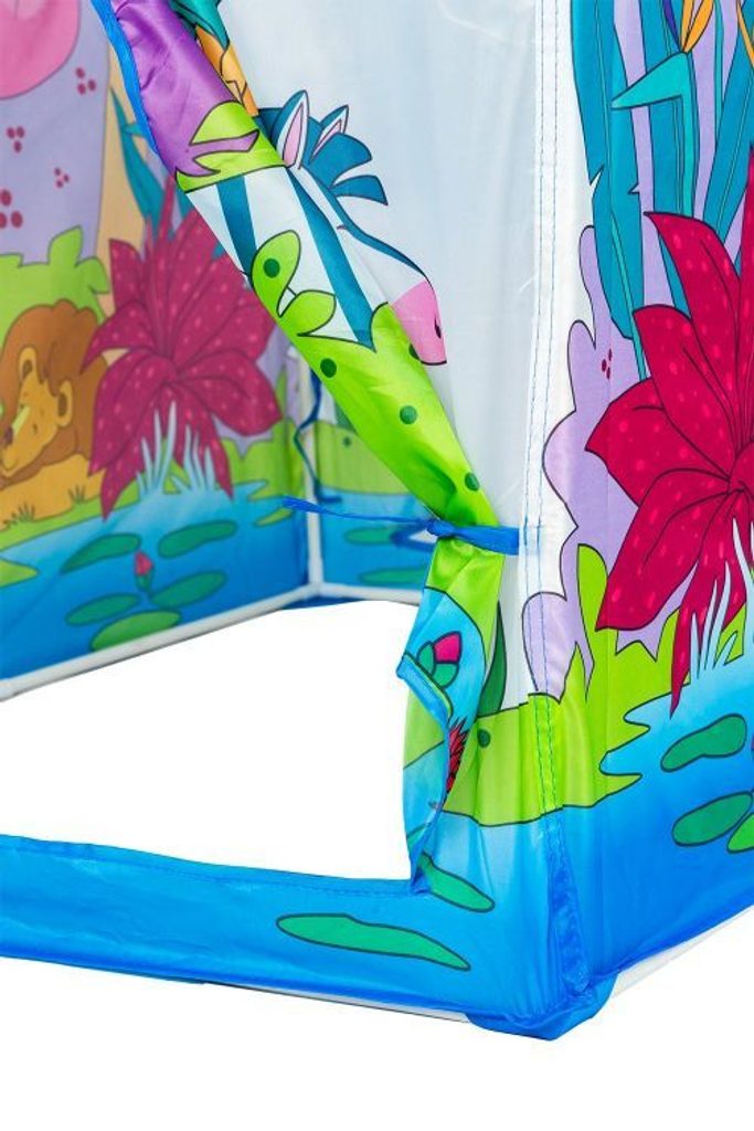 Ecotoys dětský stan s motivem zoologické zahrady. Je vhodný jak do vnitřních prostor tak i pro venkovní použití. Vchod do stanu je nastavitelný, můžete tak nastavit množství světla, které bude pronikat dovnitř stanu. Svrchní materiál je polyester s obrázky zvířat. Montáž stanu je velmi a snadná a rychlá, což oceníte zejména při jeho přemist'ování.