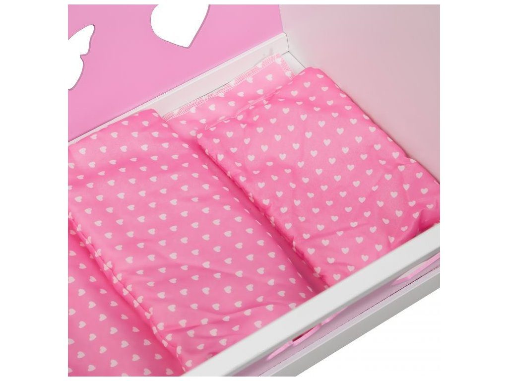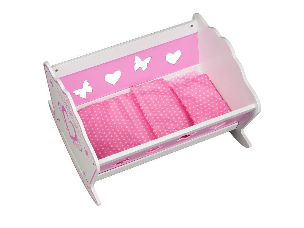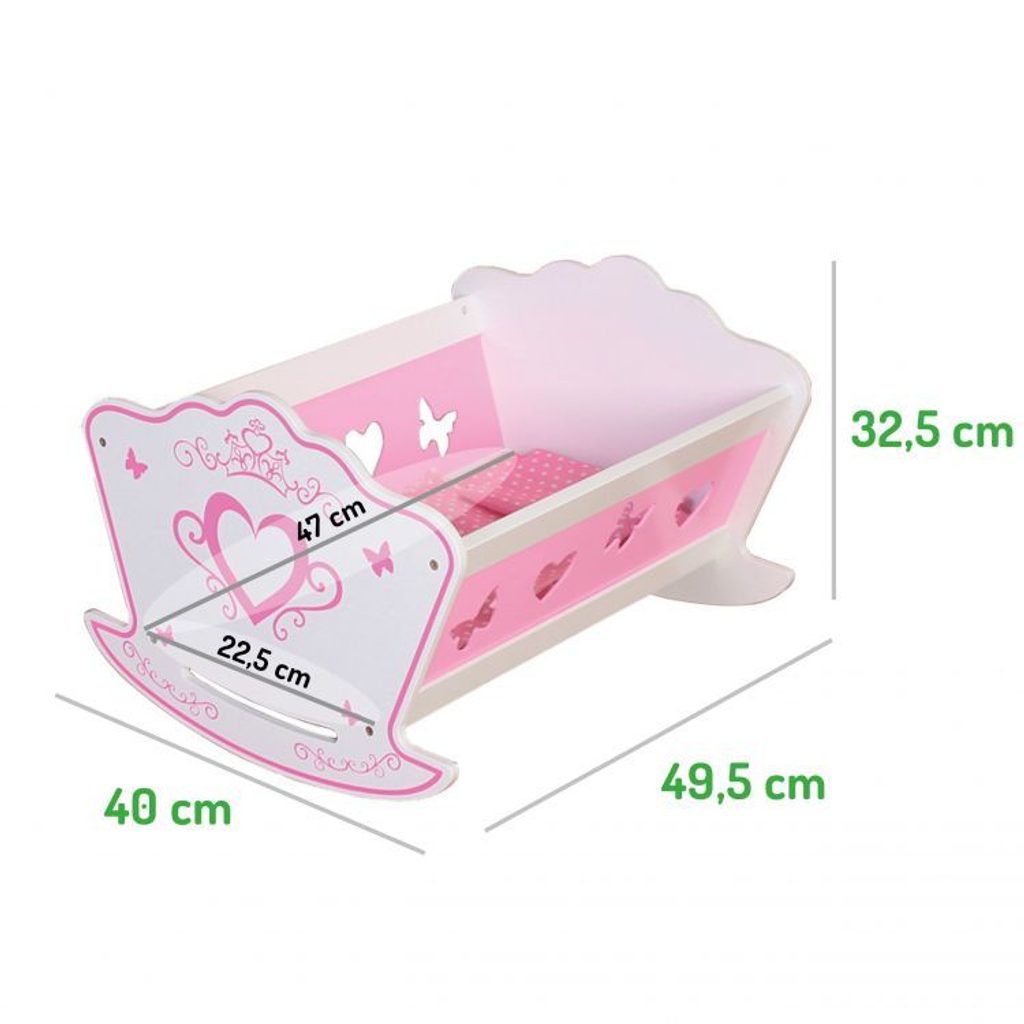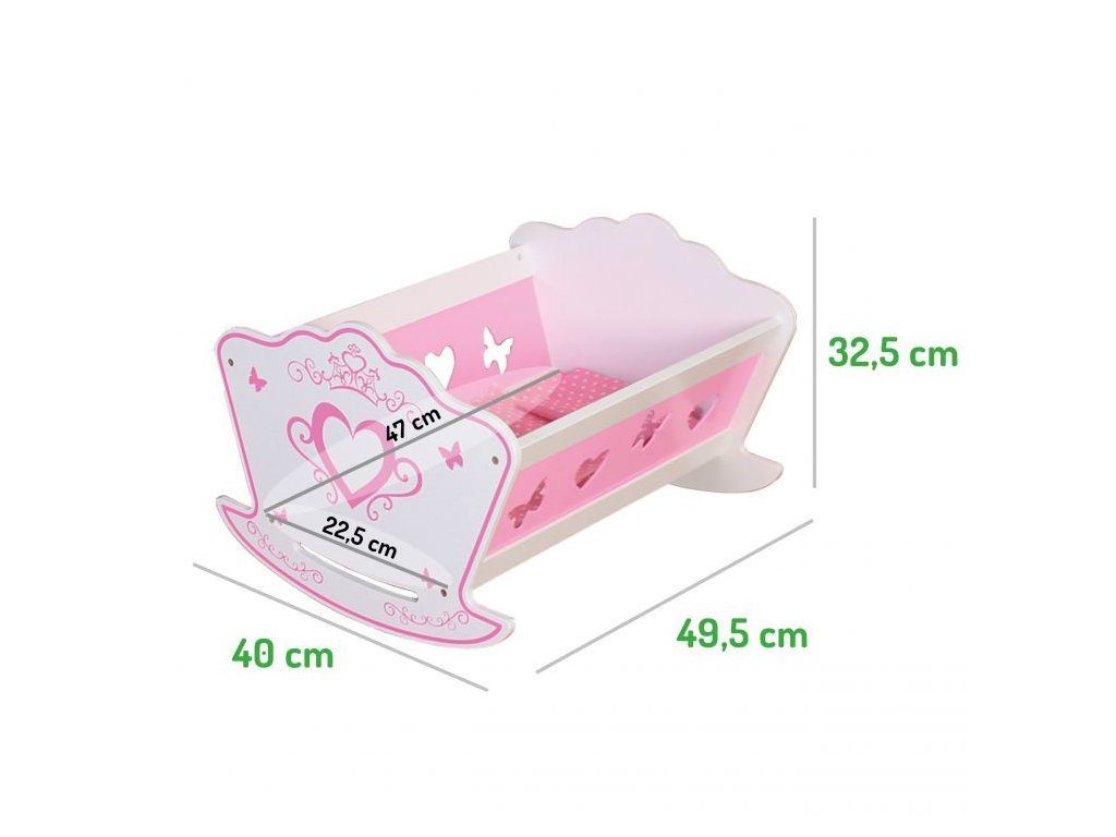 Ecotoys dřevěná postýlka pro panenky musí být součástí pokojíčku každé malé princezny. Je vyrobena z kvalitního dřeva, po stranách jsou otvory ve tvaru srdíček a motýlků. Aby se panenka cítila pohodlně je součástí postýlky také matrace a polštářek. Postýlku je možné využít i pro uschování jiných hraček. Hračka je určena pro děti od 18 měsíců věku.