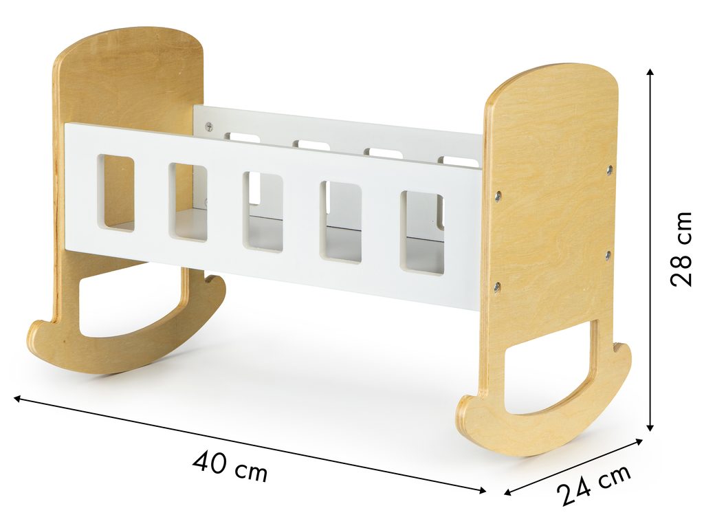 Ecotoys dřevěná postýlka pro panenky musí být součástí pokojíčku každé malé princezny. Je vyrobena ze dřeva, po stranách jsou otvory. Postýlku je možné využít i pro uschování jiných hraček. Hračka je určena pro děti od 36 měsíců věku.
