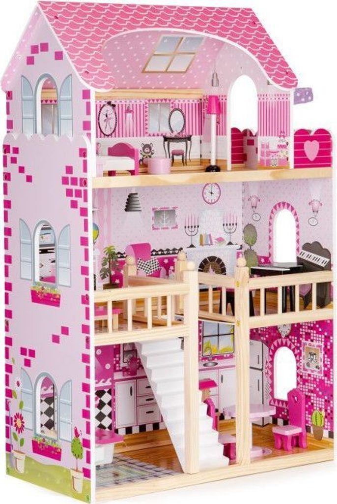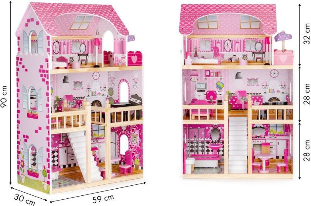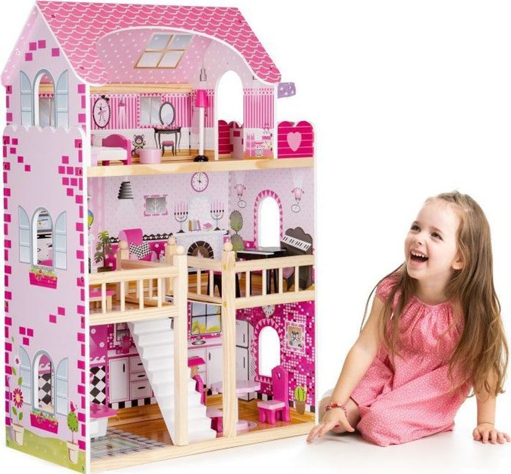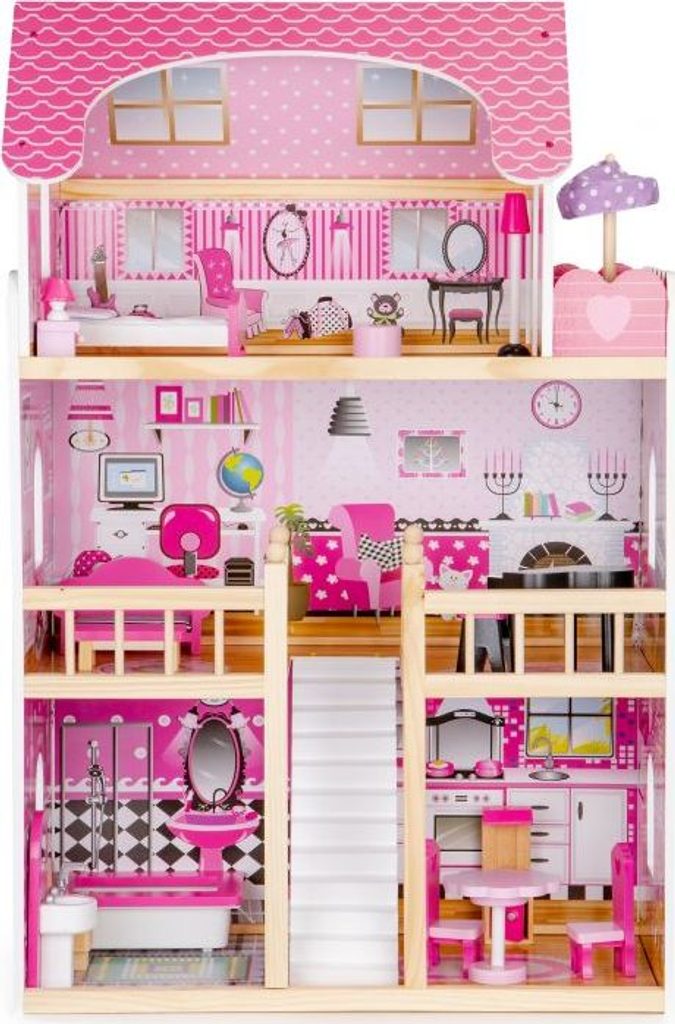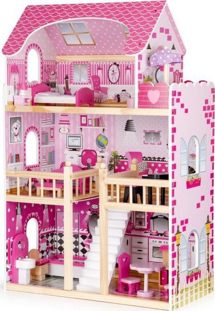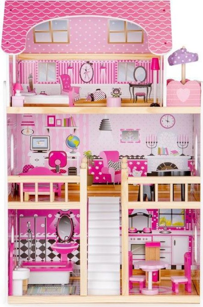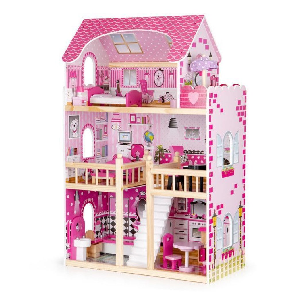 Domeček pro panenky s LED osvětlením Maryland má 3 nezávislé úrovně, ve kterých je celkem 5 pokojů a balkon - vše imituje dokonale skutečný bytový dům. Každý pokoj byl dokončen v jiném stylu, přizpůsoben byl dekor a nábytek charakteru a účelu místnosti. Celý domeček je osvětlený LED páskou, která se ovládá pomocí dálkového ovladače. Součástí soupravy je také sada 16 ks dřevěného nábytku, který lze bez omezení přesunovat. Každý kus nábytku je vyroben ručně, s velkou pozorností k detailu a nejvyšší kvalitě provedení, bylo také dbáno na odstranění ostrých hran, které jsou zásadní pro bezpečnost Vašeho dítěte. Domeček pro panenky je nepochybně nejlepší dárek, který můžete dát Vašemu dítěti! Každá dívka sní o takovém domečku! Rezidence bude vypadat dobře nejen v dětském pokoji, ale i v obývacím pokoji, což povzbudí potěšení všech členů domácnosti. Nemusíte se starat o sestavení domu - jasná příručka s obrázky a číslování všech prvků Vám umožní rychle a efektivně sestavit dům.