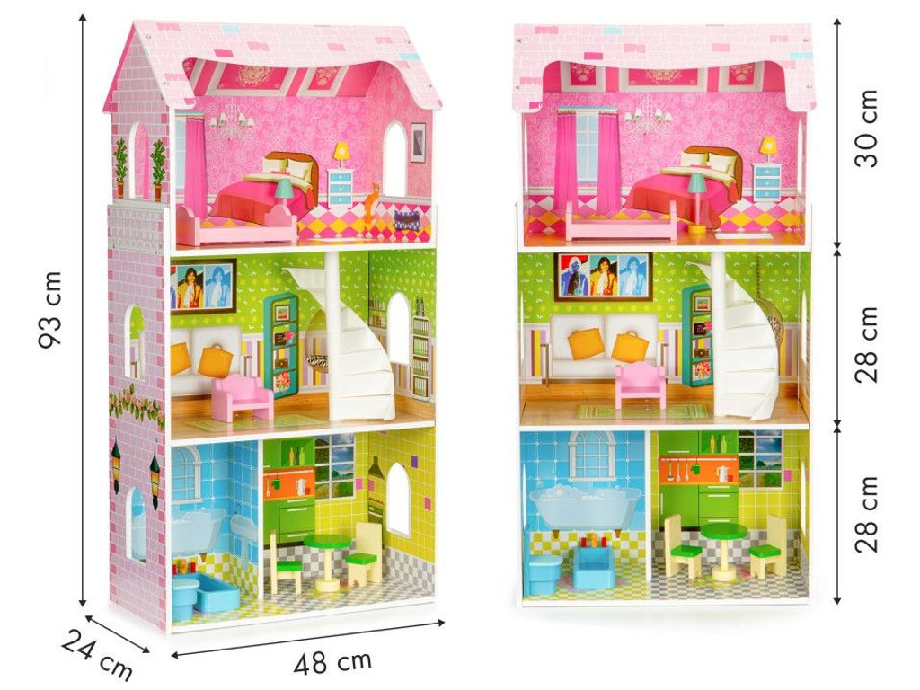Ecotoys domeček pro panenky rezidence Mintová. Celý domeček má 3 nezávislé úrovně, ve kterých jsou celkem 4 pokoje - vše imituje dokonale skutečný bytový dům. Každý pokoj byl dokončen v jiném stylu, přizpůsoben byl dekor a nábytek charakteru a účelu místnosti. Součástí soupravy je také sada 8 ks dřevěného nábytku, který lze bez omezení přesunovat. Každý kus nábytku je vyroben ručně, s velkou pozorností k detailu a nejvyšší kvalitě provedení, bylo také dbáno na odstranění ostrých hran, které jsou zásadní pro bezpečnost Vašeho dítěte. Domeček pro panenky je nepochybně nejlepší dárek, který můžete dát Vašemu dítěti! Každá dívka sní o takovém domečku! Rezidence bude vypadat dobře nejen v dětském pokoji, ale i v obývacím pokoji, což povzbudí potěšení všech členů domácnosti. Nemusíte se starat o sestavení domu - jasná příručka s obrázky a číslování všech prvků Vám umožní rychle a efektivně sestavit dům.