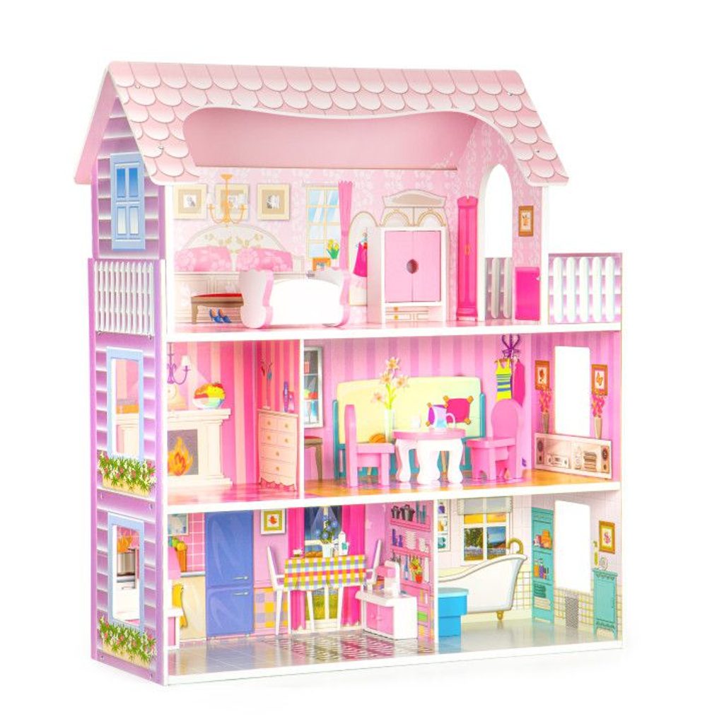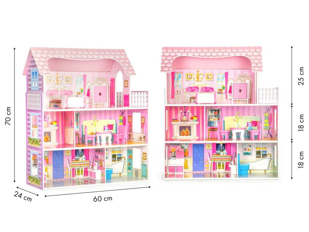Ecotoys domeček pro panenky rezidence Rozana. Celý domeček má 3 nezávislé úrovně, ve kterých je celkem 5 pokojů a terasa - vše imituje dokonale skutečný bytový dům. Každý pokoj byl dokončen v jiném stylu, přizpůsoben byl dekor a nábytek charakteru a účelu místnosti. Součástí soupravy je také sada 8 ks dřevěného nábytku, který lze bez omezení přesunovat. Každý kus nábytku je vyroben ručně, s velkou pozorností k detailu a nejvyšší kvalitě provedení, bylo také dbáno na odstranění ostrých hran, které jsou zásadní pro bezpečnost Vašeho dítěte. Domeček pro panenky je nepochybně nejlepší dárek, který můžete dát Vašemu dítěti! Každá dívka sní o takovém domečku! Rezidence bude vypadat dobře nejen v dětském pokoji, ale i v obývacím pokoji, což povzbudí potěšení všech