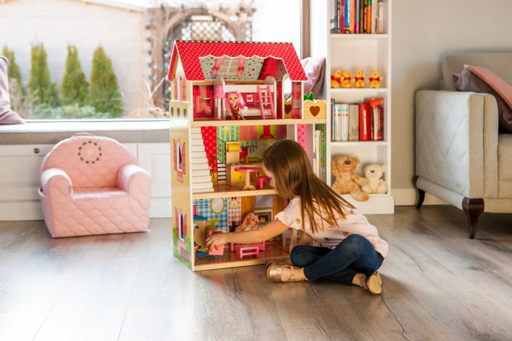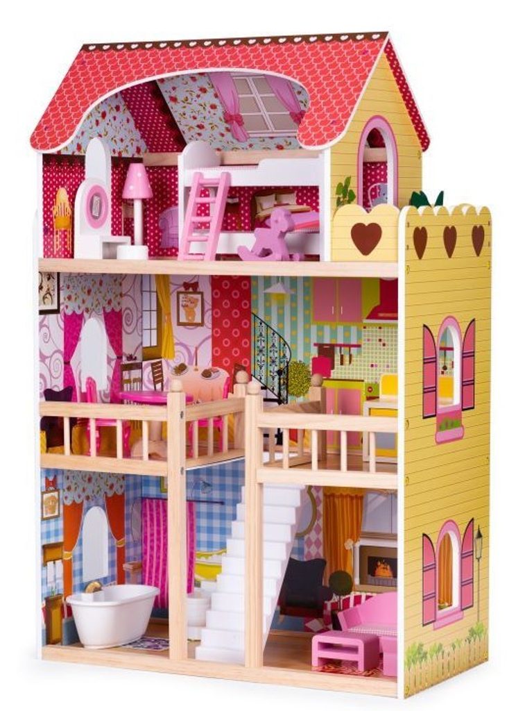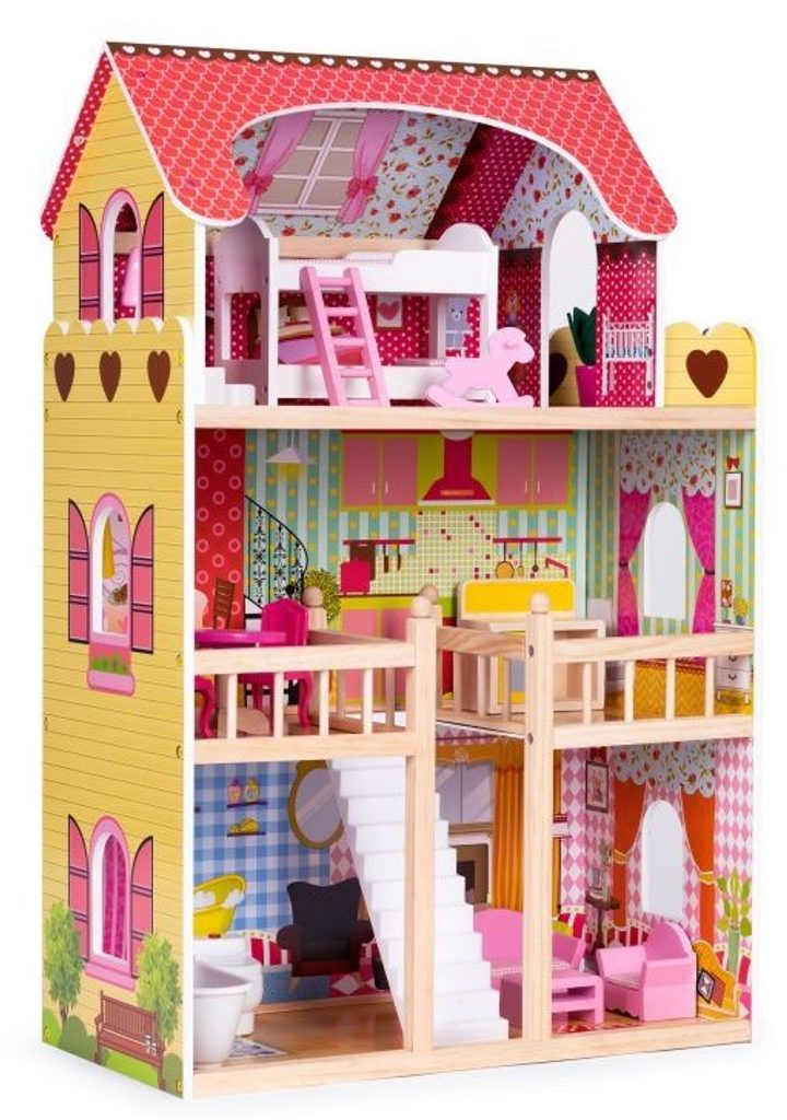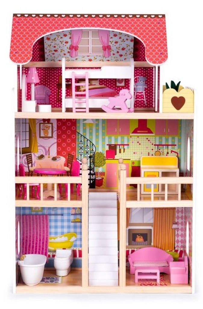 DOMEČEK PRO PANENKY MALINOVÁ Celý domeček má 3 nezávislé úrovně, ve kterých je celkem 5 pokojů - vše imituje dokonale skutečný bytový dům. Každý pokoj byl dokončen v jiném stylu, přizpůsoben byl dekor a nábytek charakteru a účelu místnosti. Součástí soupravy je také sada 17 ks dřevěného nábytku, který lze bez omezení přesunovat. Každý kus nábytku je vyroben ručně, s velkou pozorností k detailu a nejvyšší kvalitě provedení, bylo také dbáno na odstranění ostrých hran, které jsou zásadní pro bezpečnost Vašeho dítěte.