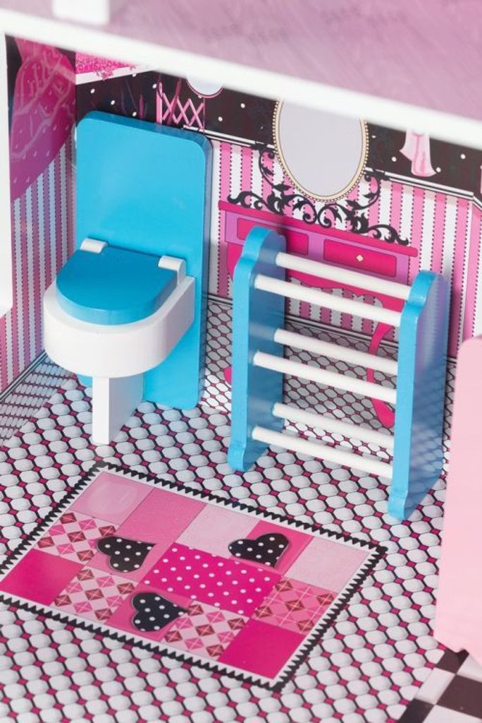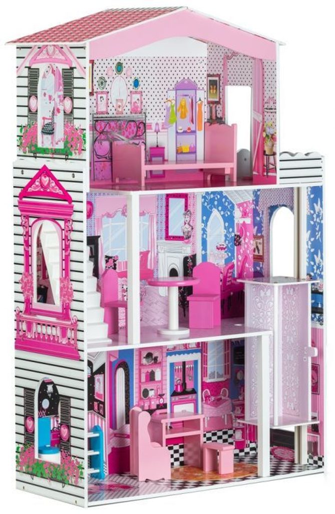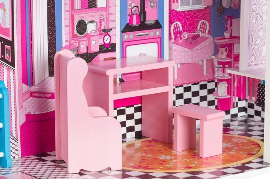 DOMEČEK PRO PANENKY MIAMI Celý domeček pro panenky má 3 části - přízemí a 2 patra,, pokoj je v každém podlaží. Každý pokoj byl navržen v jiném stylu, odpovídající dekor a nábytek podle charakteru a účelu místnosti. Domeček obsahuje také sadu 10 kusů dřevěného nábytku, který lze přesunovat bez omezení. Každý kus nábytku je vyroben ručně, s velkou pozorností k detailu a nejvyšší kvalitě provedení, bylo také dbáno na odstranění ostrých hran, které jsou zásadní pro bezpečnost Vašeho dítěte.