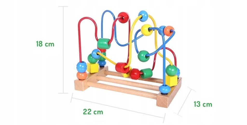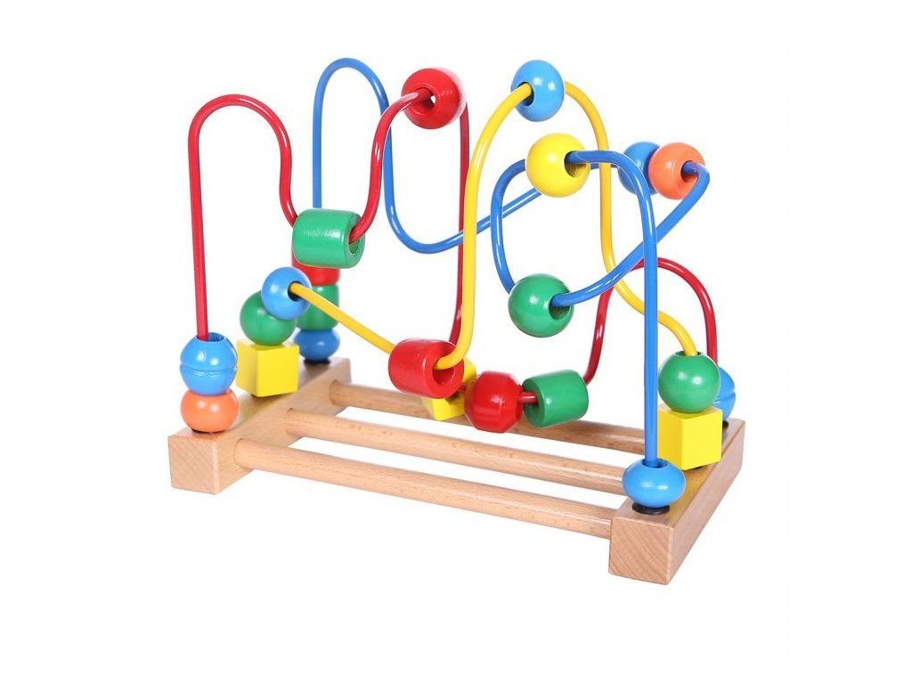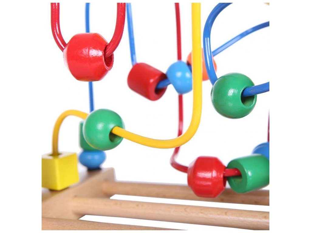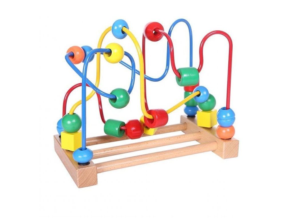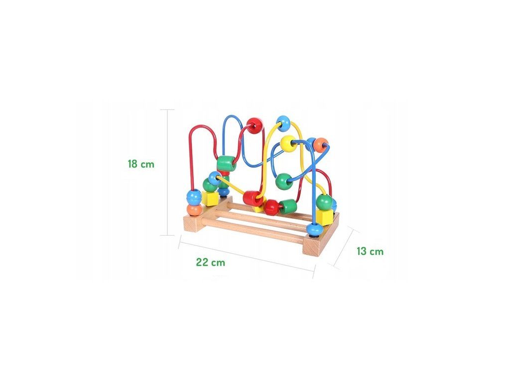 Ecotoys dřevěná edukační hračka labyrint Mula. Hračka rozvíjí u nejmenších dětí představivost, rozpoznávání barev a tvarů, logické myšlení a zlepšuje motoriku rukou a prstů. 3 barevné labirynty jsou umístěny na stabilní dřevěné základně a mají 23 barevných korálků na provlékaní. Je vyrobena z kvalitního dřeva bez ostrých hran. Hračka je určena pro děti od 18 měsíců věku.