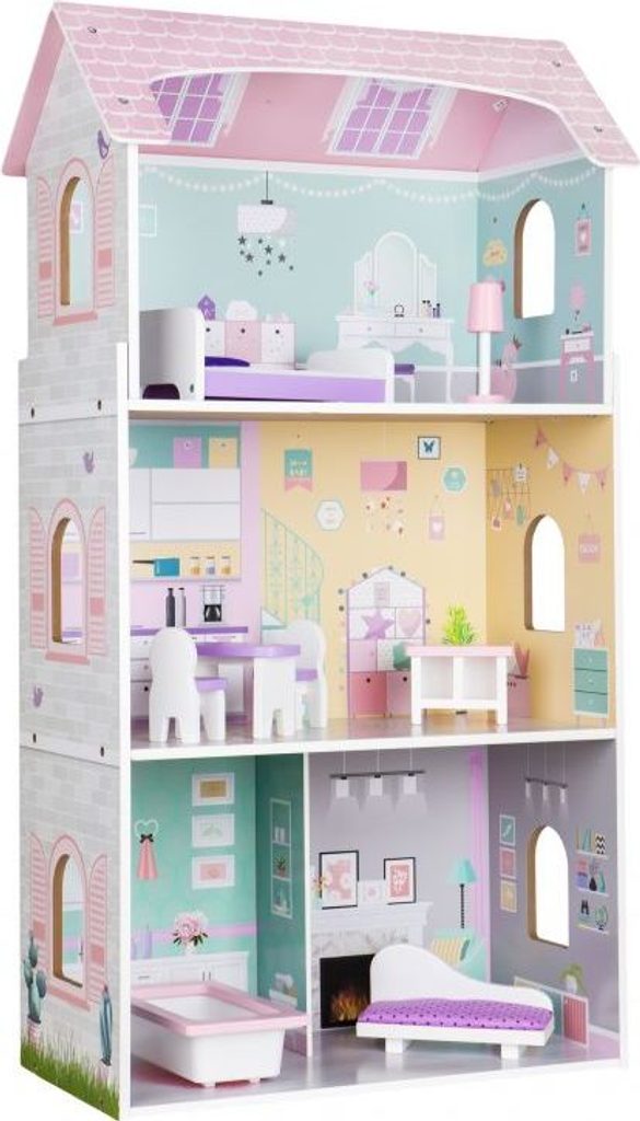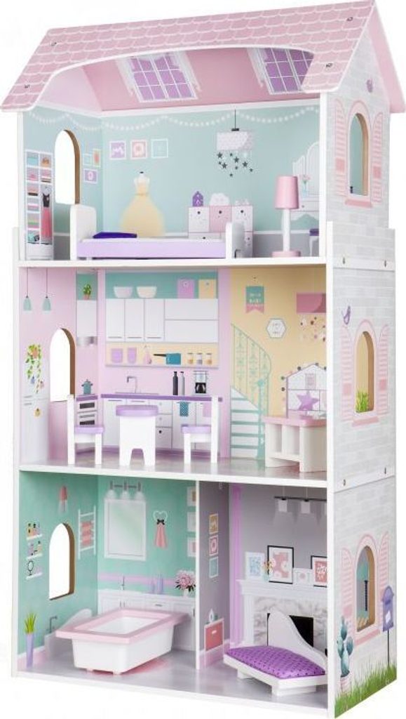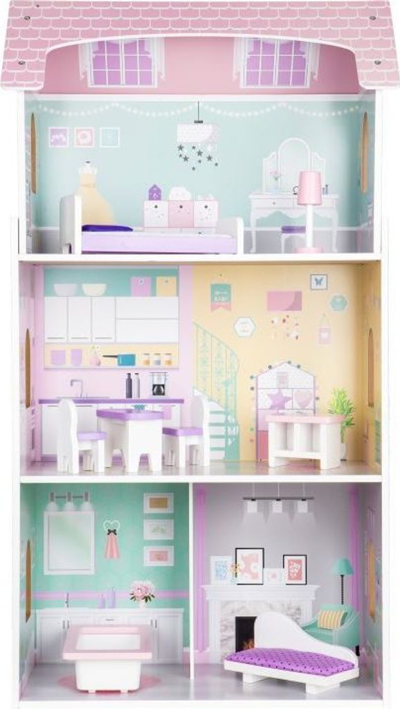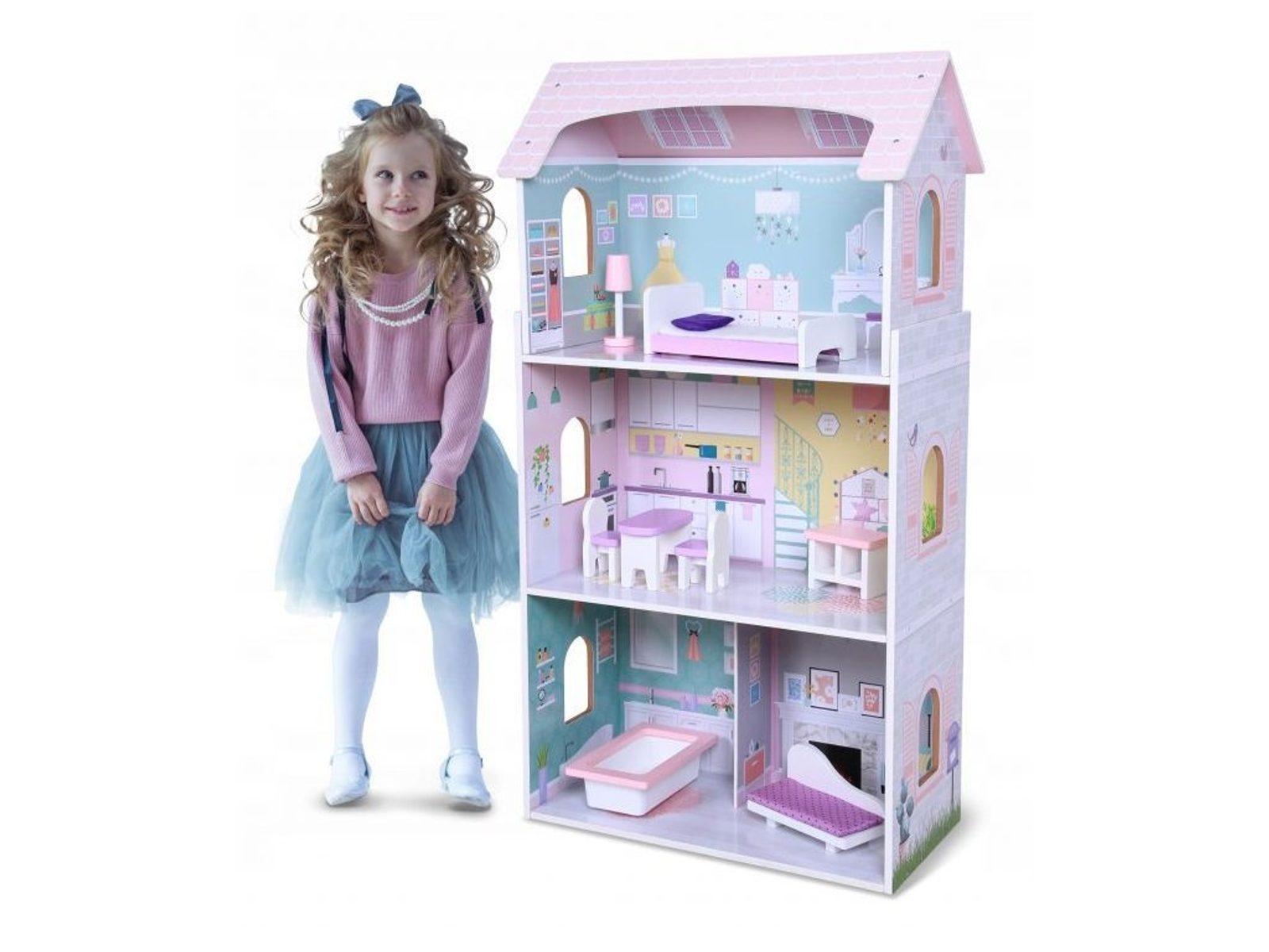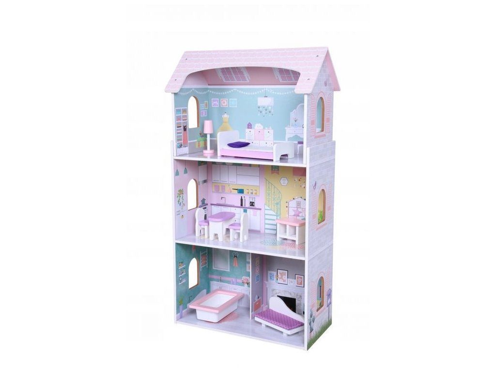 Domeček pro panenky se 3 patry rezidence Jahodová. Celý domeček má 3 nezávislé úrovně, ve kterých jsou celkem 4 pokoje - vše imituje dokonale skutečný bytový dům. Každý pokoj byl dokončen v jiném stylu, přizpůsoben byl dekor a nábytek charakteru a účelu místnosti. Součástí soupravy je také sada 8 ks dřevěného nábytku, který lze bez omezení přesunovat. Každý kus nábytku je vyroben ručně, s velkou pozorností k detailu a nejvyšší kvalitě provedení, bylo také dbáno na odstranění ostrých hran, které jsou zásadní pro bezpečnost Vašeho dítěte. Domeček pro panenky je nepochybně nejlepší dárek, který můžete dát Vašemu dítěti! Každá dívka sní o takovém domečku! Rezidence Jahodová bude vypadat dobře nejen v dětském pokoji, ale i v obývacím pokoji, což povzbudí potěšení všech členů domácnosti. Nemusíte se starat o sestavení domu - jasná příručka s obrázky a číslování všech prvků Vám umožní rychle a efektivně sestavit dům.