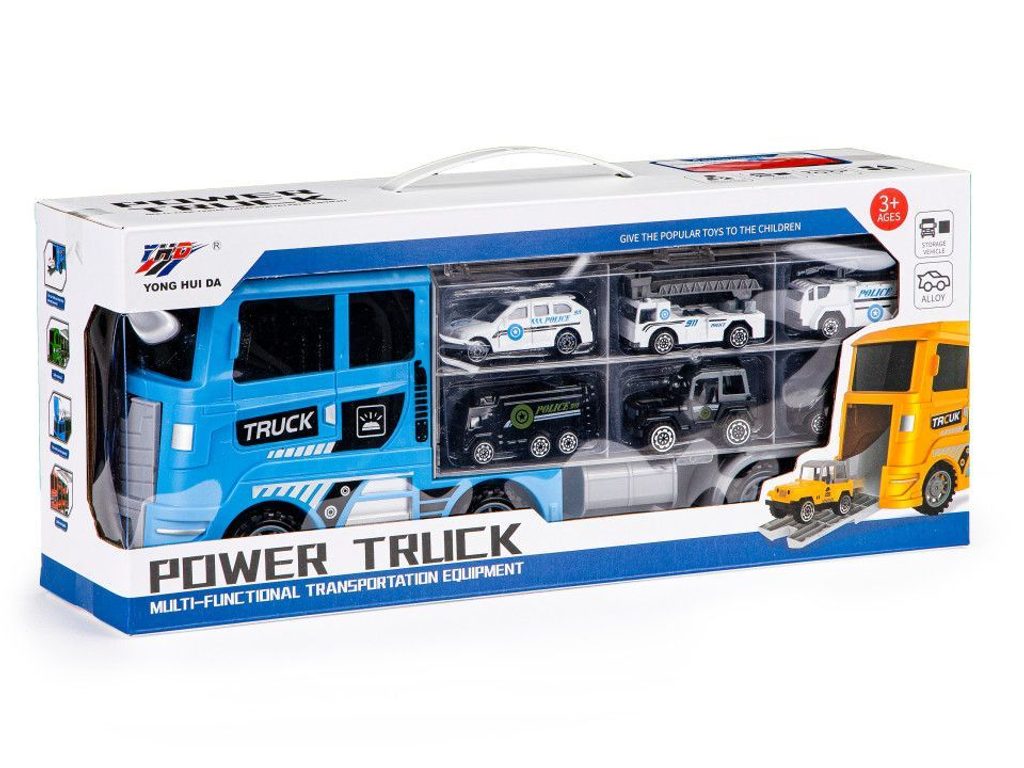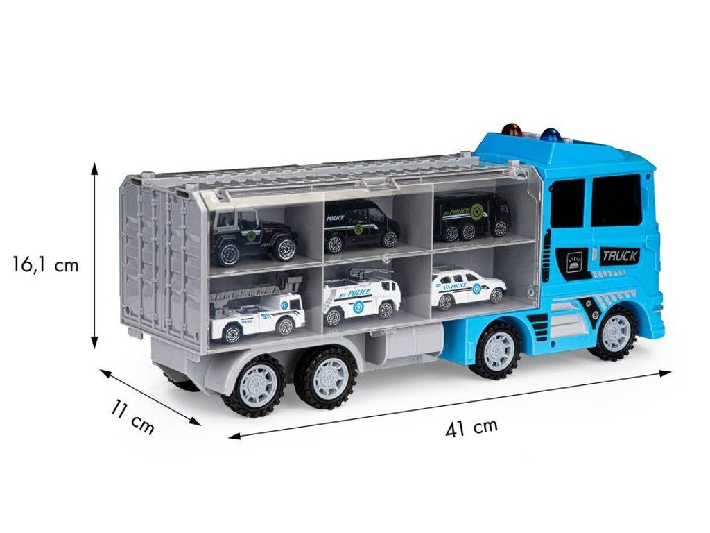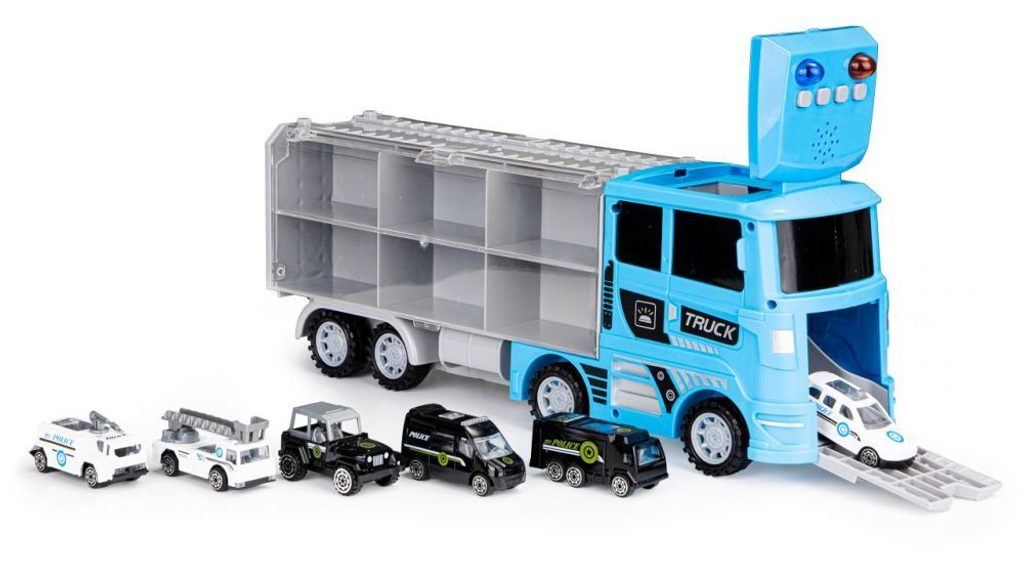 Velké nákladní autíčko Ecotoys Fire Brigade je vybaveno světýlky a melodiemi. Součástí je 6 různých policejních autíček. Ty lze převážet v zadní části nákladního auta, která je rozdělena na menší prostory. Přední otevíratelnou část kabiny lze jednoduchým způsobem přeměnit na sjížděcí rampu. Hračka je určena pro děti od 36 měsíců věku.