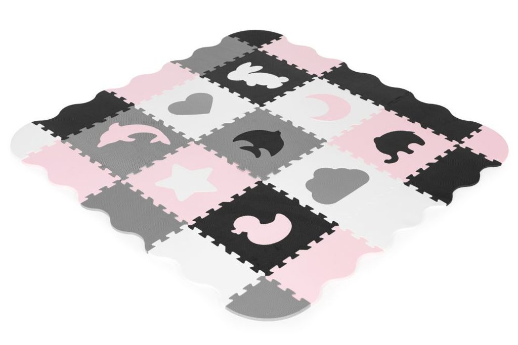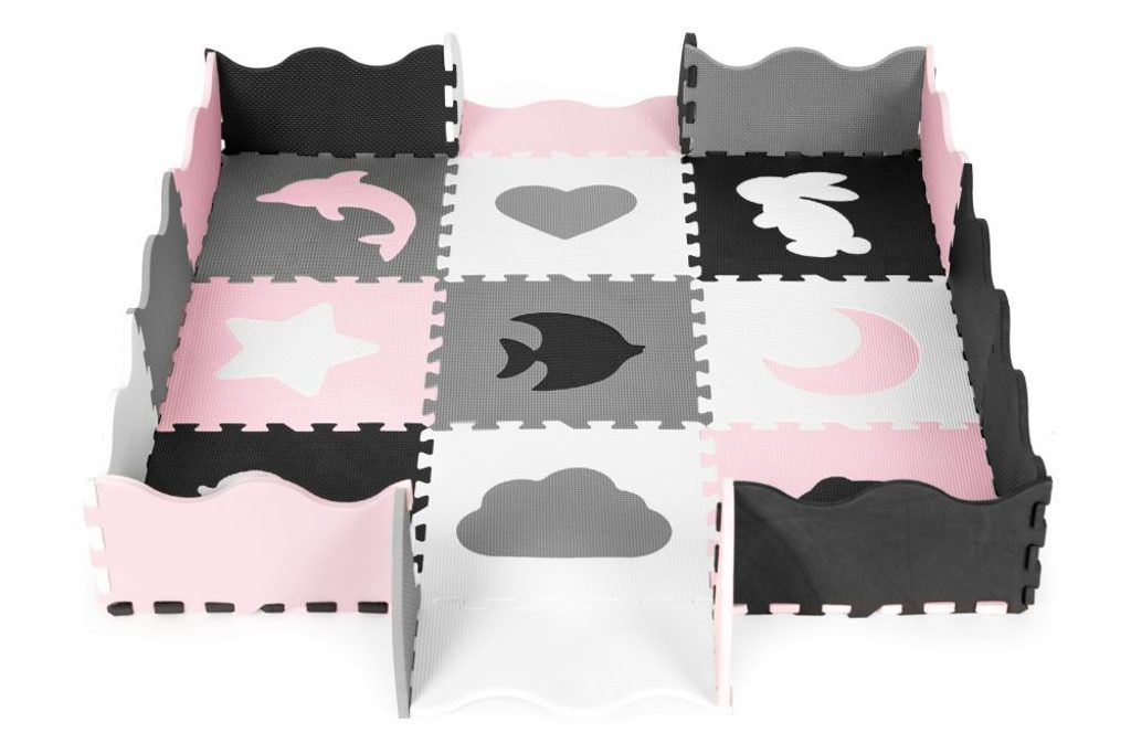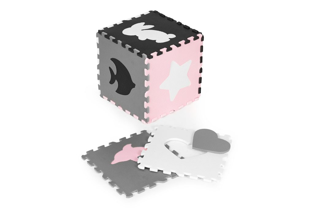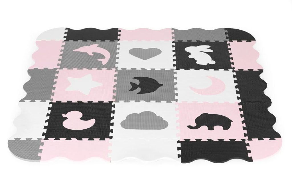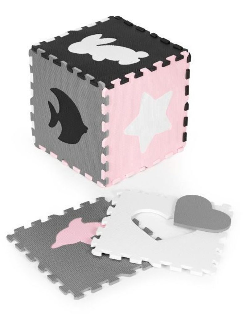 Ecotoys vzdělávací deka ve stylu puzzle Pink Puzzle se skládá z celkem 25 velkých barevných dílků z příjemné na dotek pěny. Uvnitř hlavních čtverců jsou vyobrazeny obrázky zvířátek a nebeských motivů. Všechny kostky jdou mezi sebou libovolně propojovat. Deka slouží k prvotnímu vzdělávání dítěte, dále jako cvičební podložka nebo místo pro hru. Vzhledem k tomu, že materiál deky nesaje vodu lze ji velmi snadno čistit například vlhkým hadříkem. Pomocí okrajových dílků lze vytvořit ohrádku.