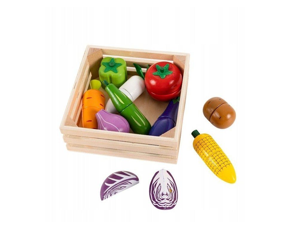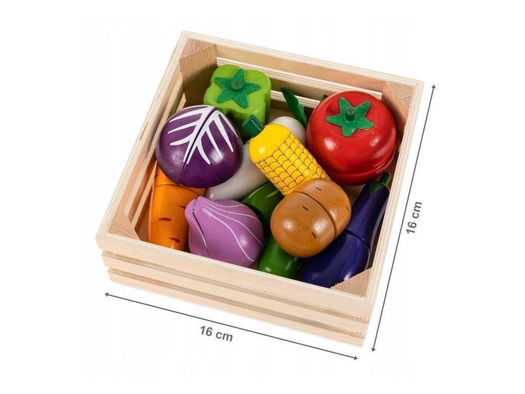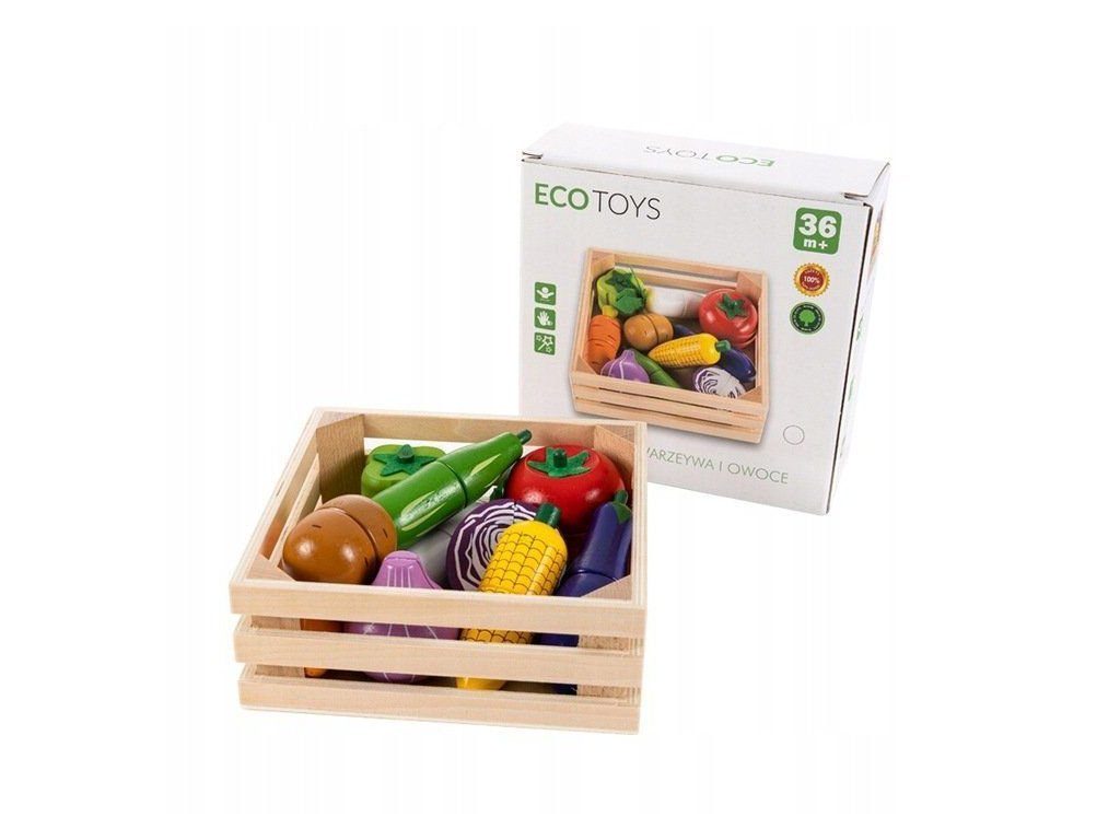 Sada dřevěné zeleniny Ecotoys se hodí do každé dětské kuchyňky nebo si s ní může dítě hrát samostatně. Zelenina je vyrobena z kvalitního dřeva a je pokryta zdravotně nezávadnou barvou. Každou z nich lze rozpůlit a zase zpět spojit pomocí magnetu. Sada obsahuje nejznámější druhy zeleniny, dítě se je tak snadno naučí rozpoznávat. Vše je uloženo v praktické dřevěné bedýnce. Tato hračka je určena pro děti od 3 let věku.