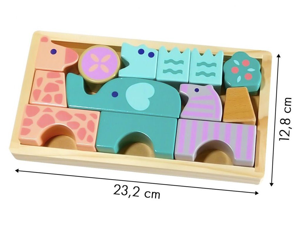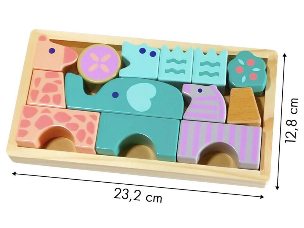 Ecotoys sada barevných dřevěných kostek Zvířátka v praktickém dřevěném tácu s okraji. Všechny kostky mají zaoblené hrany a jsou vyrobeny pouze z kvalitního dřeva. Hra s nimi podporuje u dětí představivost a motoriku. Z kostek může dítě vytvořit 4 různé zvířátka a 2 rostliny. Hračka je určena pro děti od 36 měsíců věku.