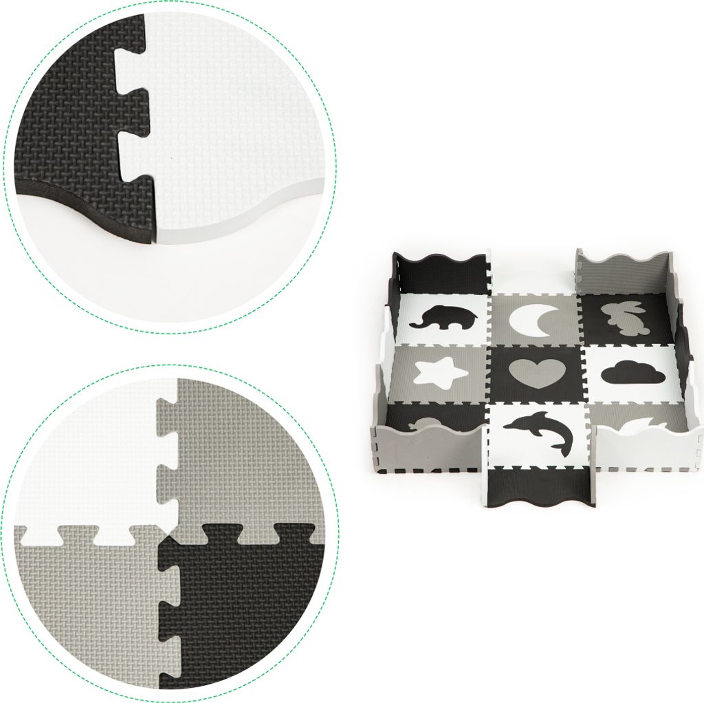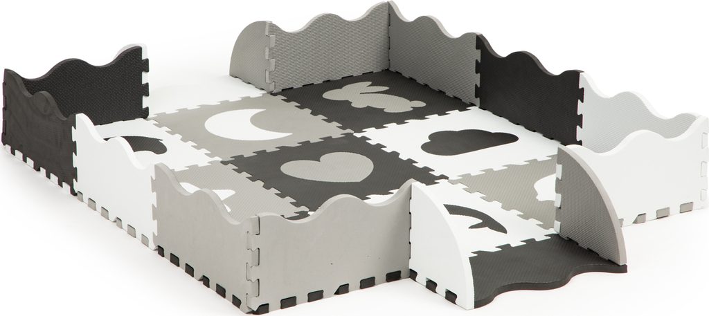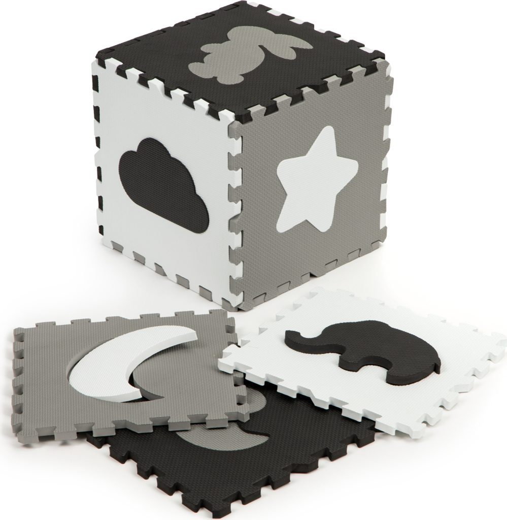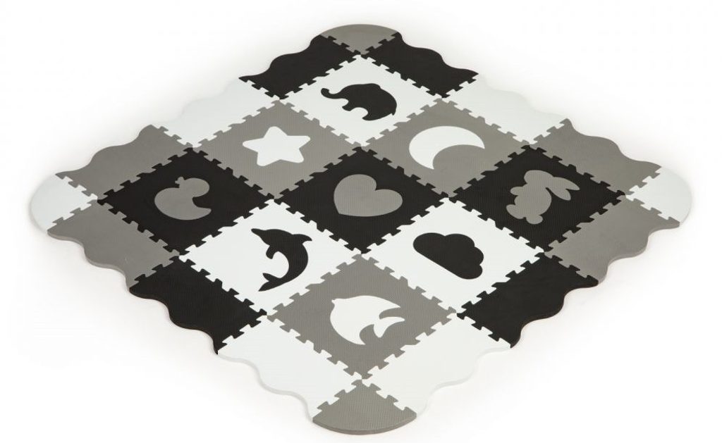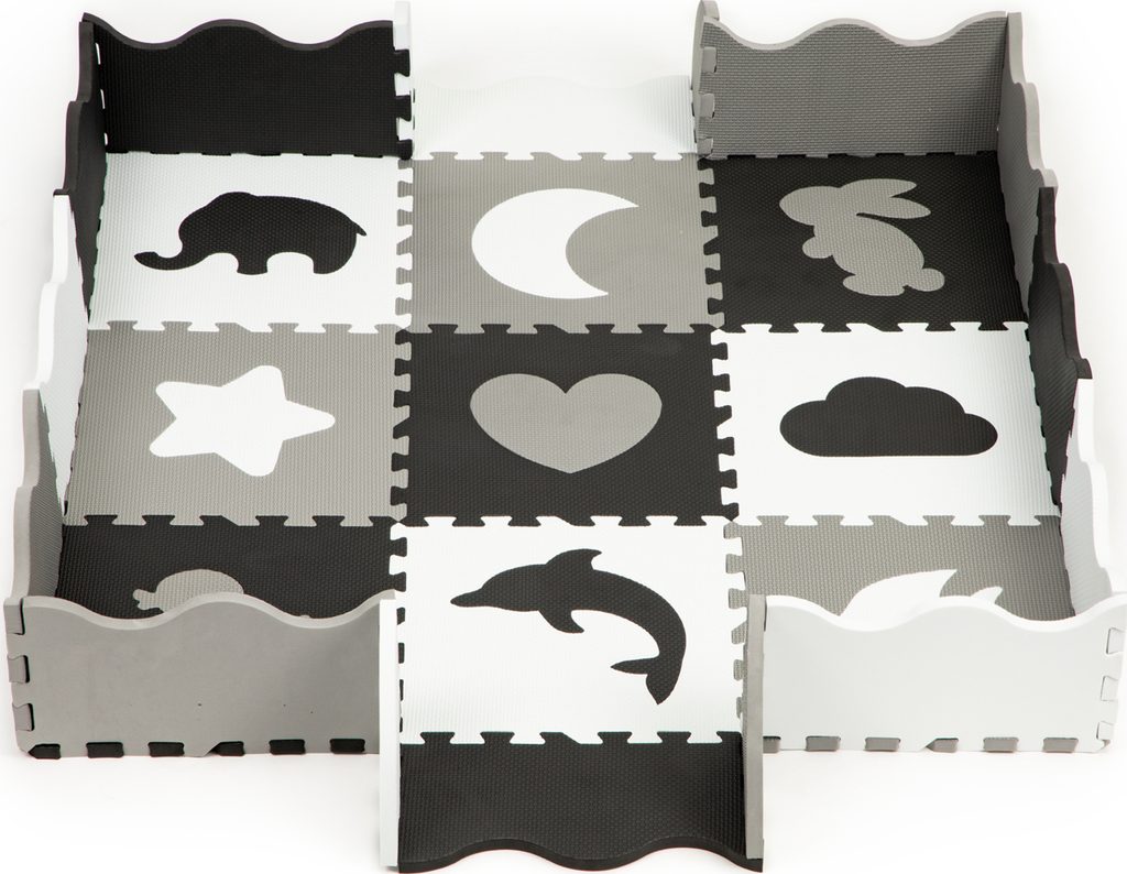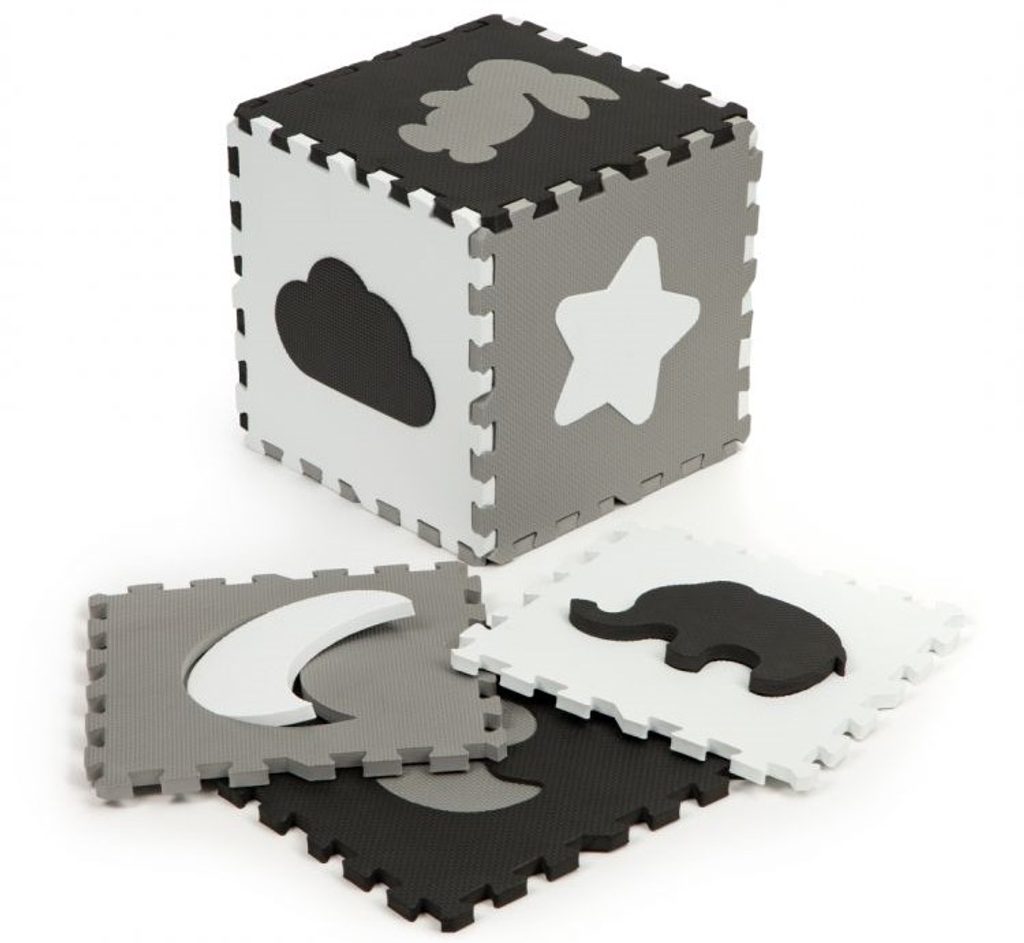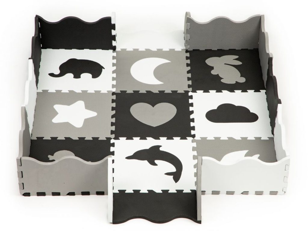Ecotoys vzdělávací deka ve stylu puzzle Happy Gray se skládá z celkem 25 velkých barevných dílků z příjemné na dotek pěny. Uvnitř hlavních čtverců jsou vyobrazeny obrázky zvířátek a nebeských motivů. Všechny kostky jdou mezi sebou libovolně propojovat. Deka slouží k prvotnímu vzdělávání dítěte, dále jako cvičební podložka nebo místo pro hru. Vzhledem k tomu, že materiál deky nesaje vodu lze ji velmi snadno čistit například vlhkým hadříkem. Pomocí okrajových dílků lze vytvořit ohrádku. Součástí balení je praktická průhledná taška, kam můžete deku složit.