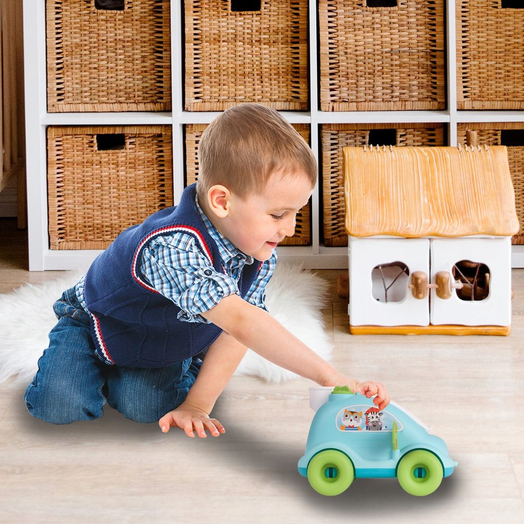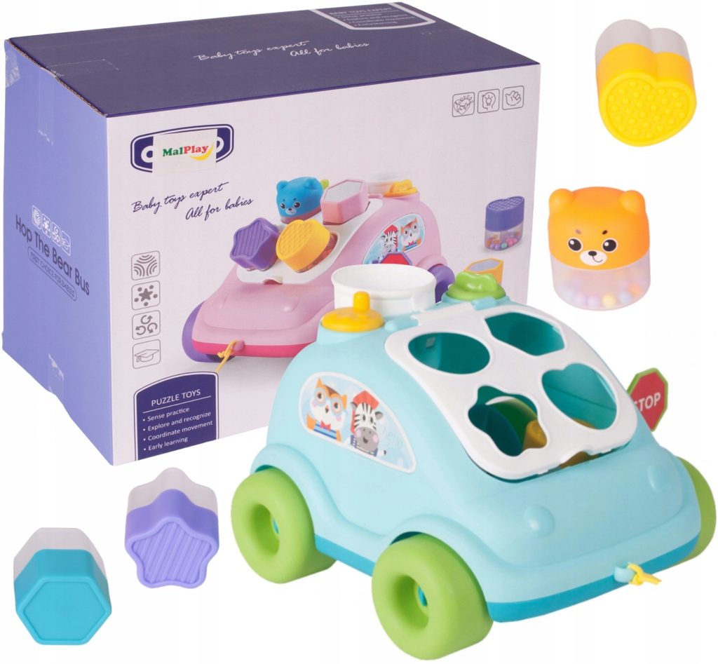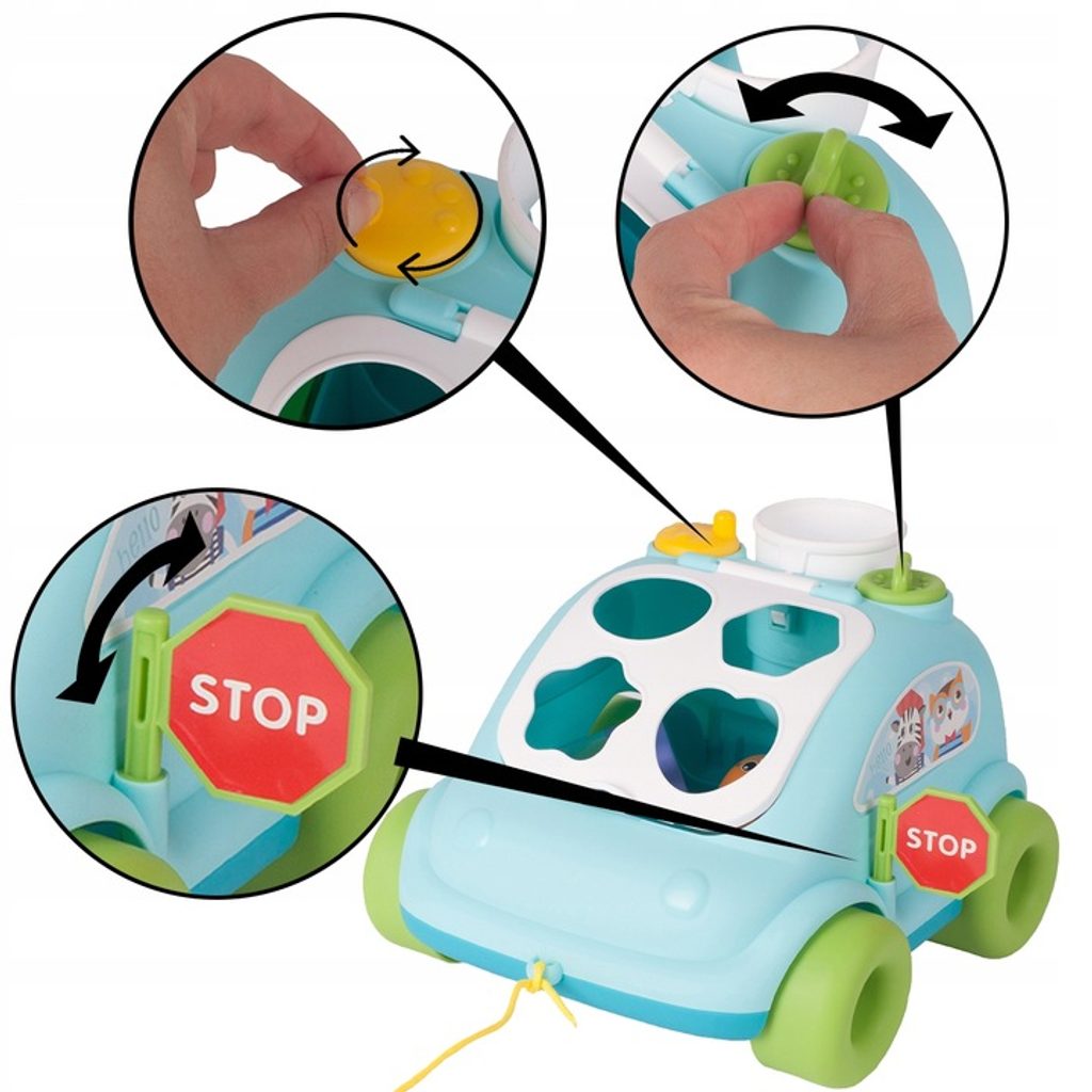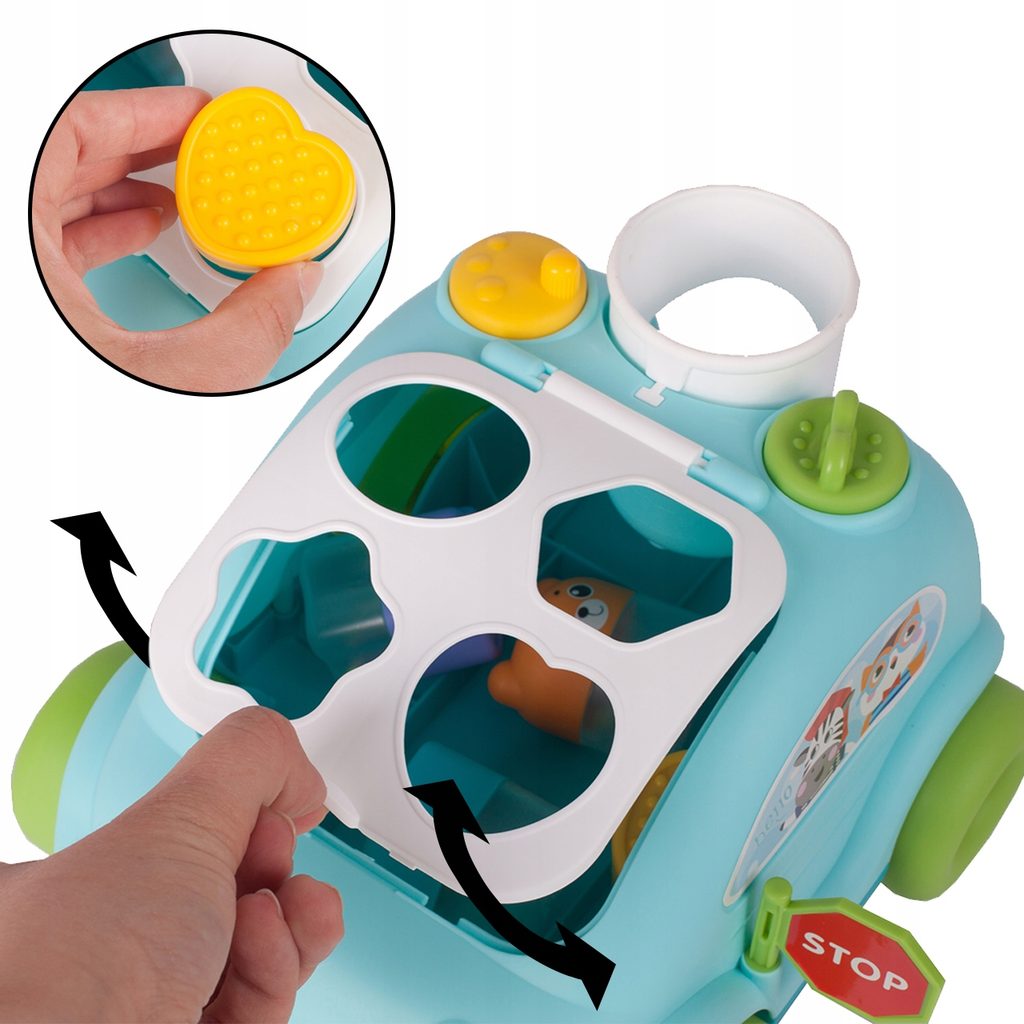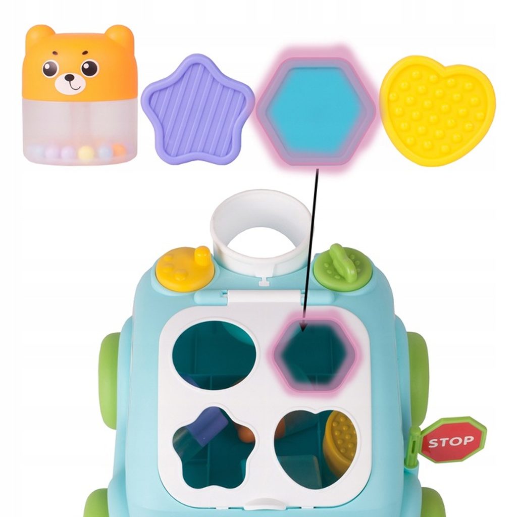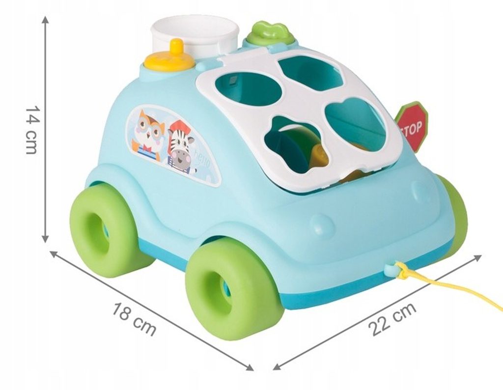 Edukační vkládací kostka - tahací autíčko je ideální hračkou pro ty nejmenší děti kdy jim pomůže rozvíjet logické myšlení, rozpoznávání barev a tvarů a také motorickou koordinaci. Úkolem je vkládat správný tvar a barvu kostky do vhodného otvoru. Na horní části hračky jsou umístěny 2 knoflíky, které otočením zpouští zvuky. Hračka je určena pro děti od 12 měsíců věku.