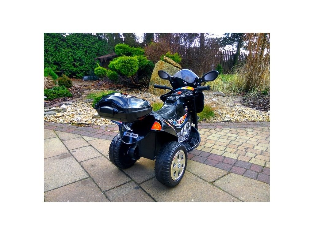 Dětská elektrická tříkolka Racing Black s atraktivním vzhledem. Směr jízdy se mění pomocí tlačítka umístěného na předním panelu. Rychlost jízdy 3 - 4 km/h. Světelné a zvukové efekty. Kola snižující hlučnost jsou opatřena gumovým páskem a mají průměr 19 cm. Tříkolka je vyrobena z kvalitního materiálu a je velmi stabilní. Hrát si s ní je absolutně bezpečné. Určena pro děti od 3 let věku a nosnosti do 20 kg.