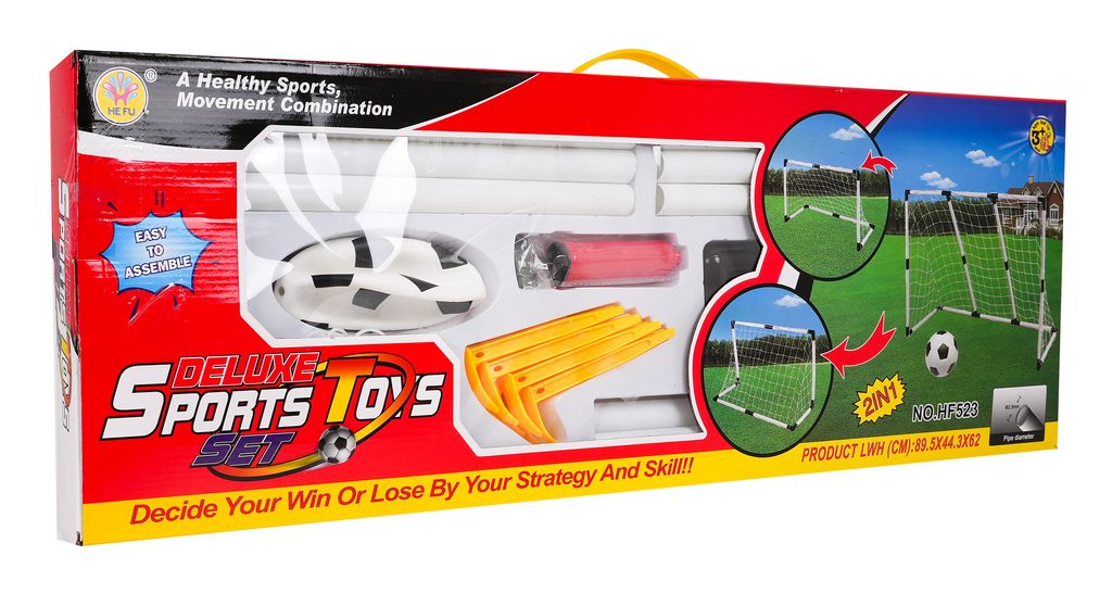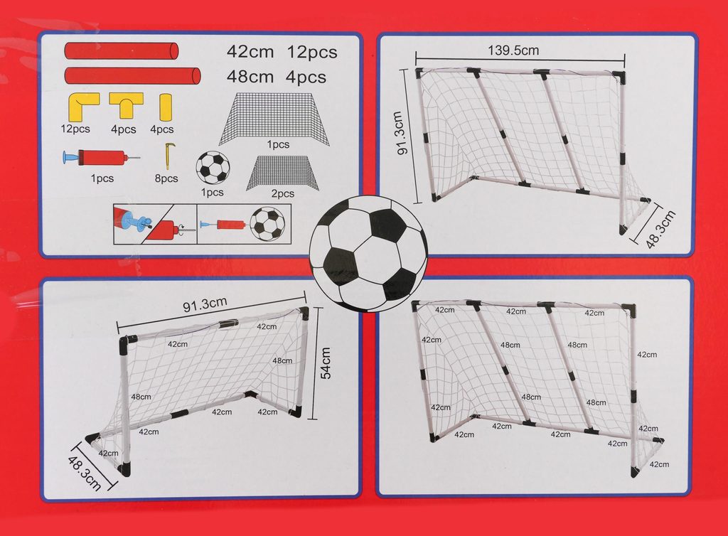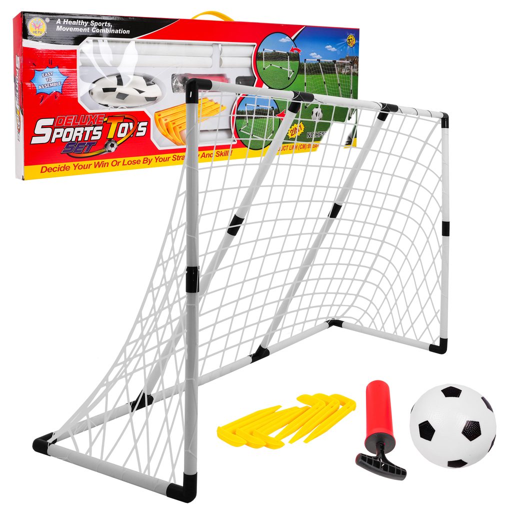 Sestava skládací fotbalové branky a míče 2v1 je ideální hračkou pro každého malého fotbalistu. Ze sestavy lze vytvořit jednou velkou nebo dvě menší brány pro hru více dětí.  V sadě je také míč a pumpička. Hračka je určena pro děti od 36 měsíců věku.