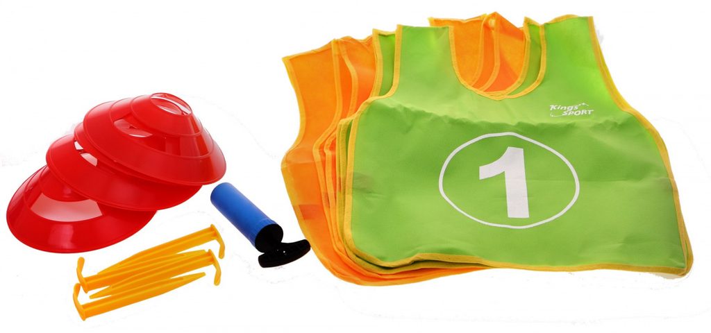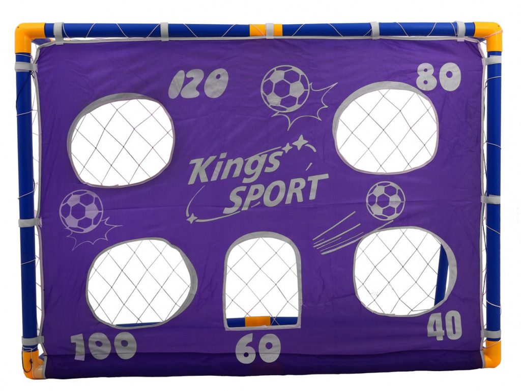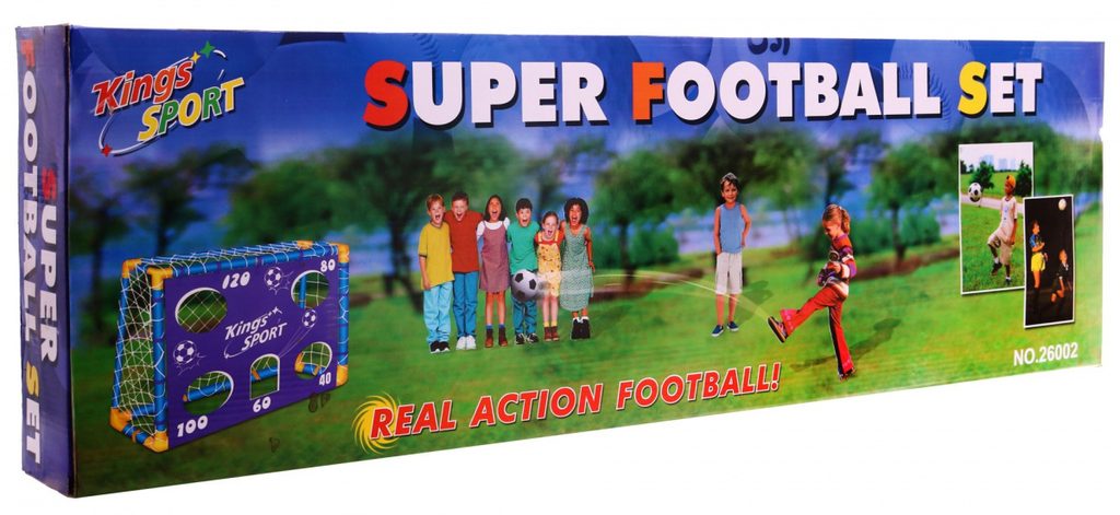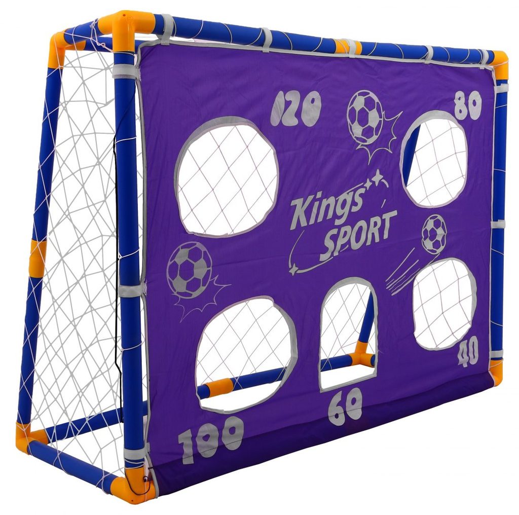 Sestava skládací fotbalové branky a příslušenství Kings Sport je ideální hračkou pro každého malého fotbalistu. Složená brána se uchycuje pomocí přiložených úchytů do země. Pro kopy na cíl je v sadě také plachta s otvory. V sadě je také míč, pumpička, vesty a plastové značky. Hračka je určena pro děti od 36 měsíců věku.