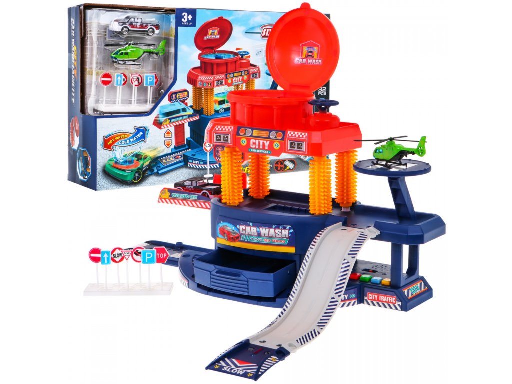 Kompletně vybavená automyčka s autíčkem, helikoptérou a příslušenstvím Car Wash. V horní části myčky je umístěna nádrž na vodu, která se pouští otočným kohoutkem. Mytí aut je tak zcela realistické. První a druhé patro je propojeno pohyblivým výtahem. Součástí myčky je také zvukový panel s blikajícím LED světlem. Zmáčknutím tlačítek se ozývají zvuky sirén různých aut a startování. V horní části je také přistávací plocha vrtulníku. Mladý motoristický nadšenec zde nalezne vše co potřebuje. Je vyrobena z kvalitního materiálu bez ostrých hran. Hračka je učena pro děti od 3 let věku.