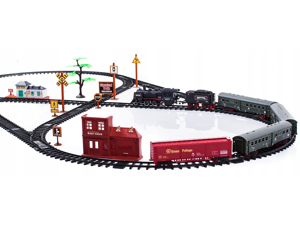 Doris vláčkodráha Rail King na baterie učí dětí představivost a podporuje kreativitu. Vláčkodráha je kompletně vybavená, naleznete zde lokomotivu, která po na nalití vody kouří a vydává zvukové efekty, vagóny, budovu železniční stanice, stromky, koleje včetně křížení, železniční značení a stromky. Celkově se dá z kolejí sestavit dráha až o délce 700 cm. Vše je vyrobeno z plastu bez ostrých hran. Hračka je určena pro děti od 36 měsíců věku.