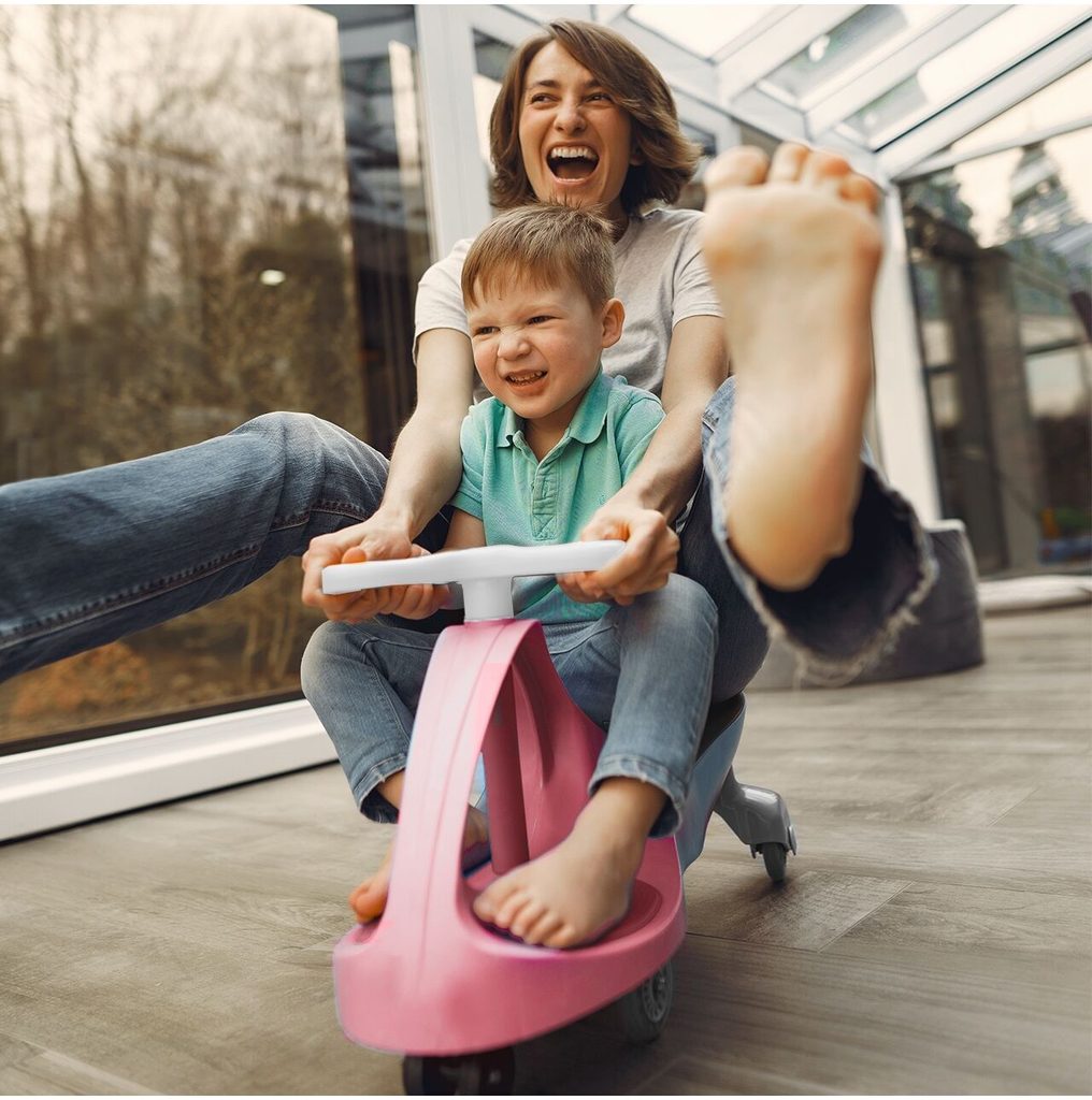 • střídavým pohybem volantu vlevo a vpravo je jízda poháněna dětskou energií
