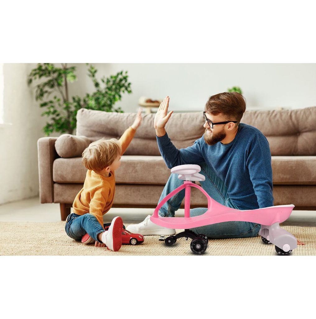 Dětské gravitační odrážedlo Spinner zaručí Vašemu dítěti spoustu zábavy a legrace. Jeho pohyb spočívá ve střídání pohybů volantu bez použití nohou. Podporuje správný vývoj dítěte využitím energie a její přeměnou v pohyb. Je vhodné pro použití venku i doma. Díky kaučukovým kolečkům s LED osvětlením se vyhnete poškození podlahy. Při správné rychlosti začnou kola svítit. Bezpečné hraní zajistí speciálně profilované sedátko a protiskluzové místo pro nohy. Odrážedlo umožňuje také umožňuje jezdit starším dětem a dokonce i rodičům. Je určeno pro děti od 3 let věku.
