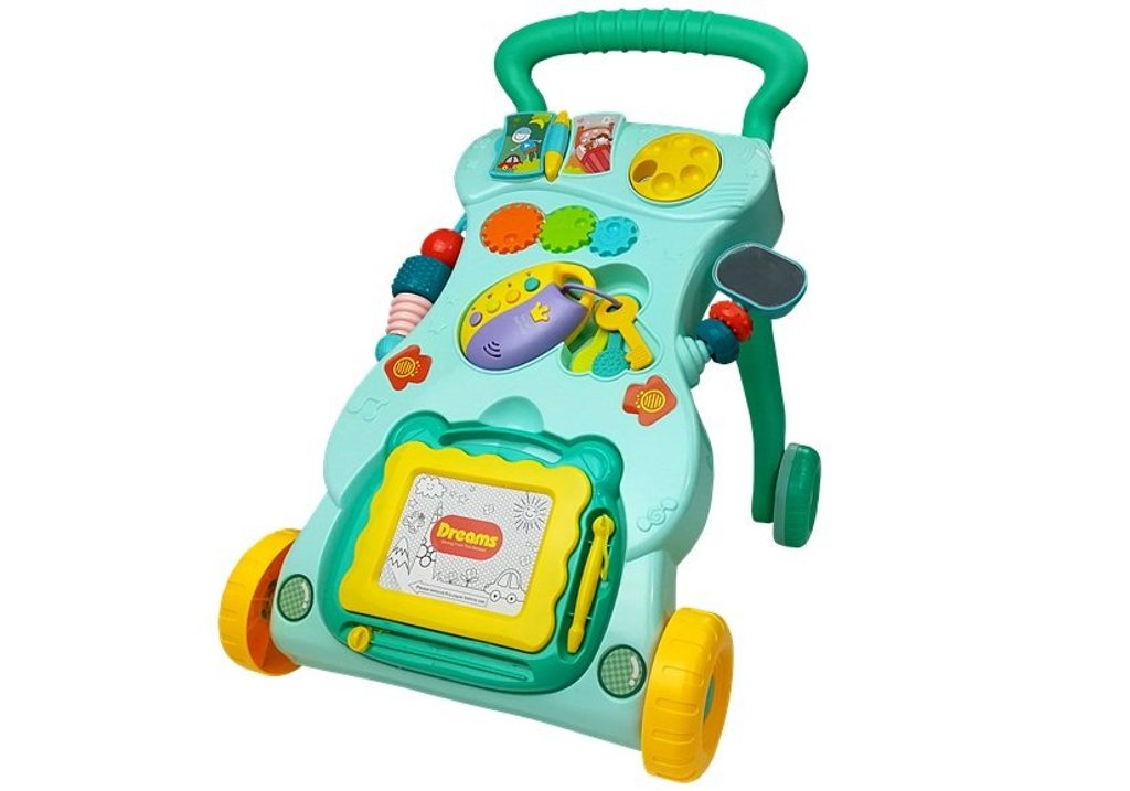 Dětské multifunkční chodítko pro ty nejmenši děti, edukační centrum. Je vyrobeno ve tvaru písmene A se dvěmi rameny, které dítěti pomáhá udržet rovnováhu a stabilitu při chůzi. Chodítko je vybaveno knížkou s obrázky,  kulatým číselníkem na vytáčení čísel, "dálkovým ovladačem" s malým světýlkem, který vydává veselé melodie, zvuk startujícího auta, zvuk zamykání auta a troubení. Na pravé straně je umístěno zrcátko pro bezpečnost dítěte. V horní části chodítka je umístěn držák pomocí kterého dítě snadno udrží rovnováhu a nespadne na zem. Určeno pro děti od 9 měsíců věku.