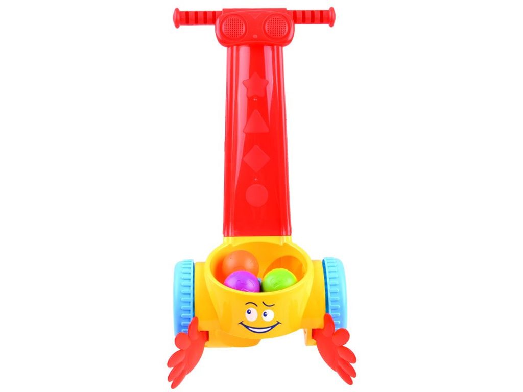 Dětské multifunkční chodítko Huanger Popper Walker pro ty nejmenší děti, edukační centrum. Chodítko má v přední části umístěné "tlapky", pomocí kterých se za pohybu sbírají plastové míčky. Vše doprovází melodie a zvuky motoru, letadla a lokomotivy. Určeno pro děti od 12 měsíců věku.