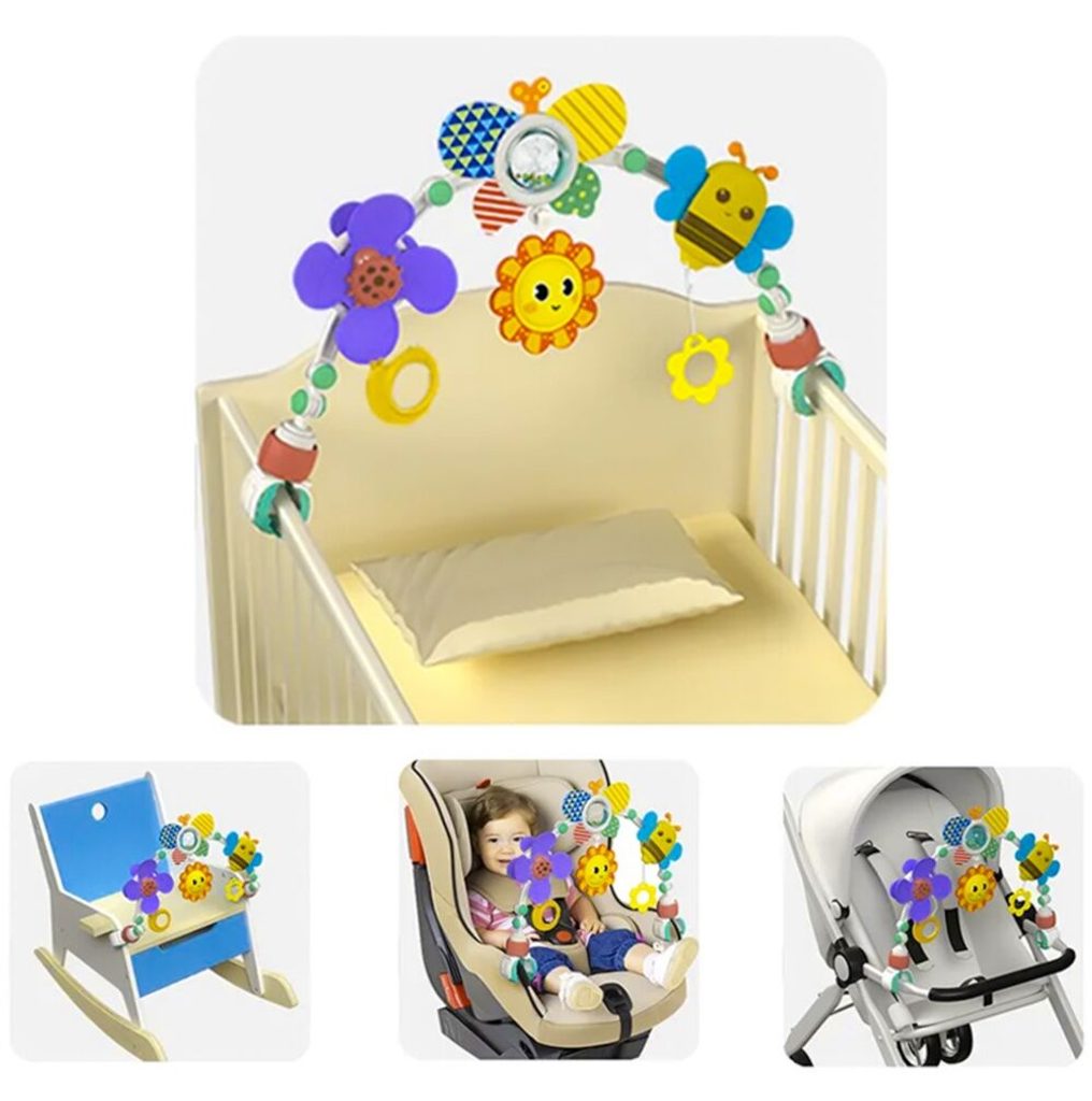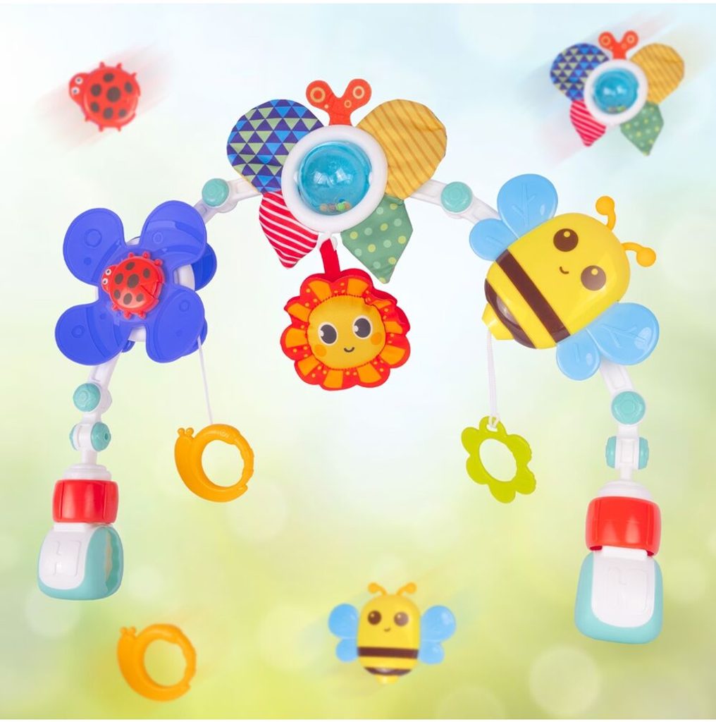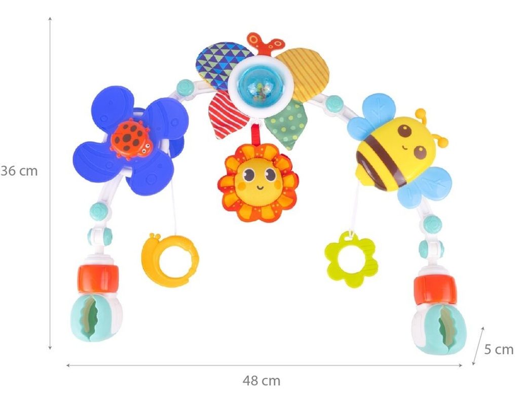 Hrazdička je praktický produkt, který využijete kdekoliv na cestách. Hrazdičku snadno připevníte k autosedačce nebo kočárku a zabavíte tak své miminko na dlouhou dobu. Hračka se velmi snadno sestavuje a nastavení jejího úhlu vám umožní přizpůsobit ji potřebám každého dítěte. Hračky zavěšené na oblouku umožní každému dítěti rozvíjet hrubou motoriku, přesné pohyby a jednotlivé smysly.