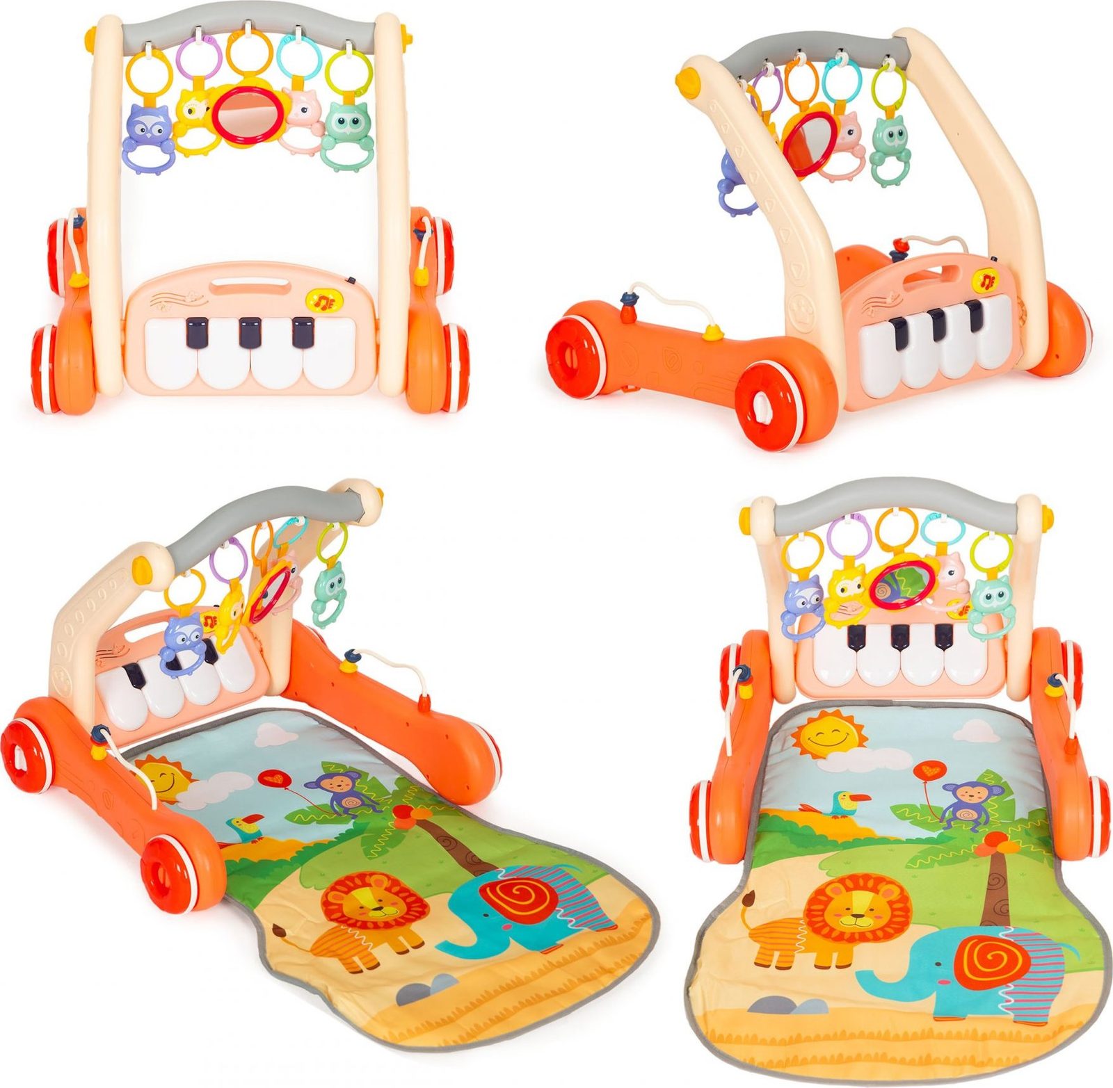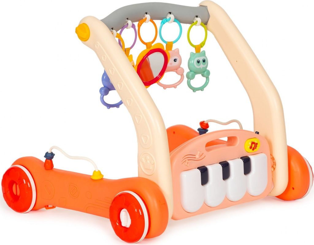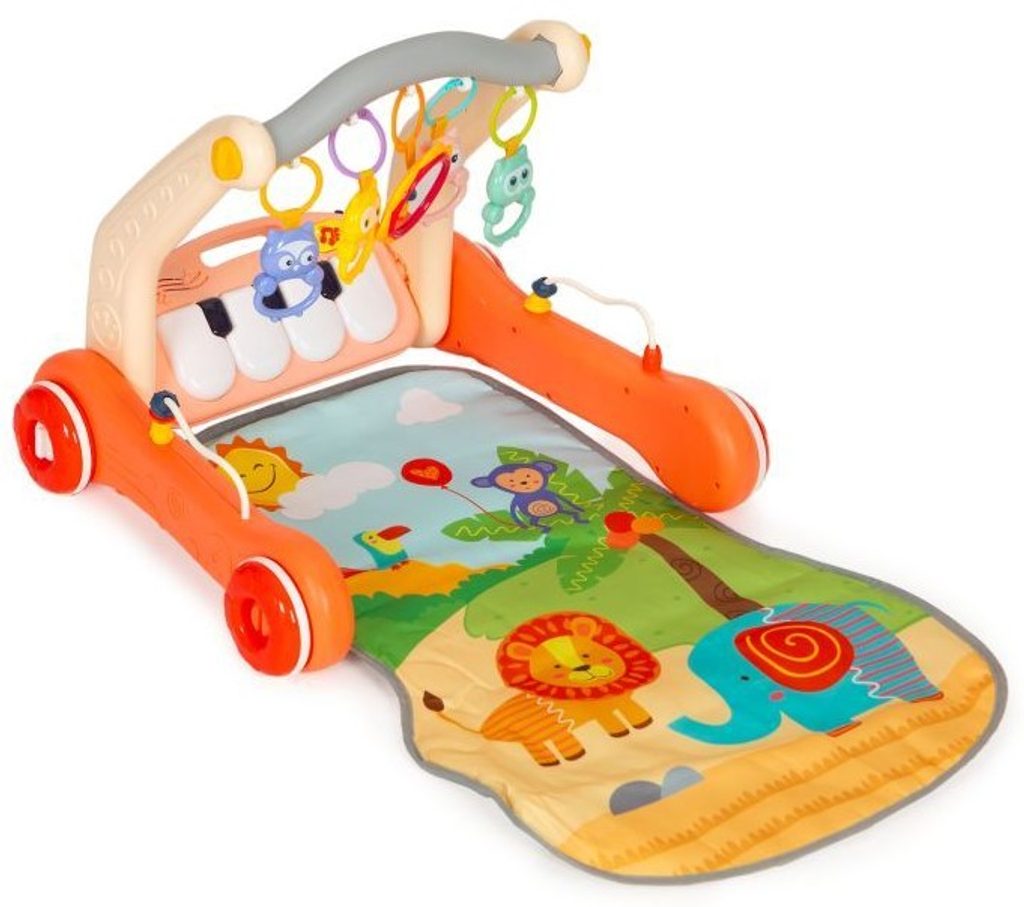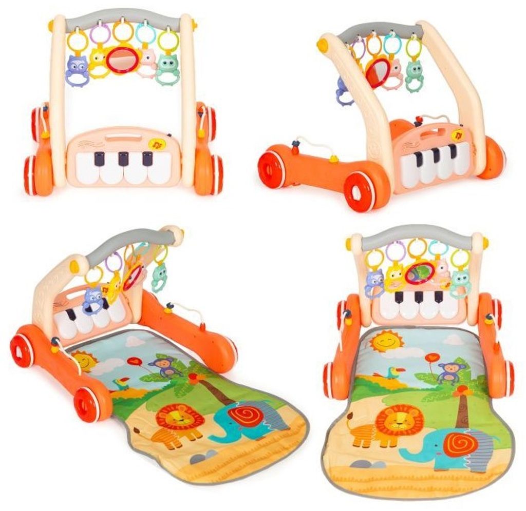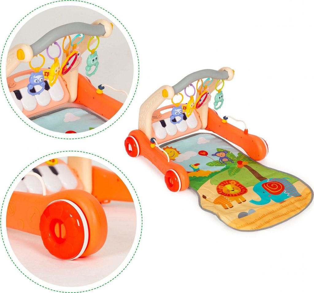 Haunger chodítko 2v1 s hrací dekou a piankem Rack Walker - oranžové