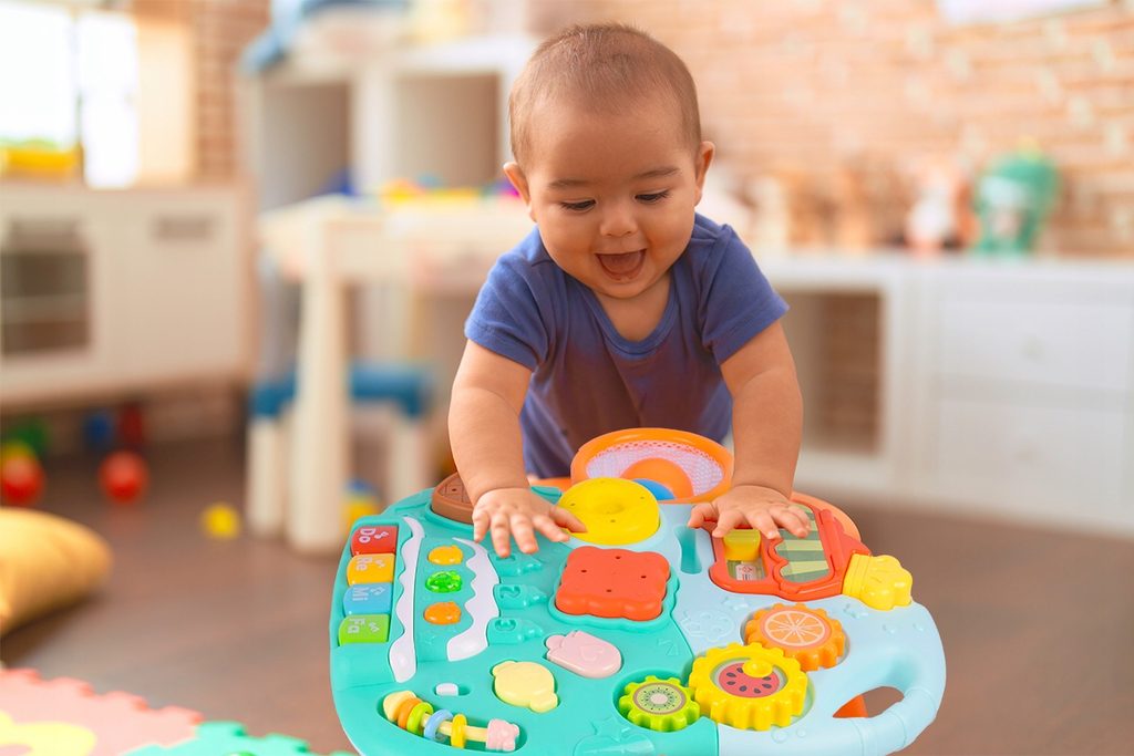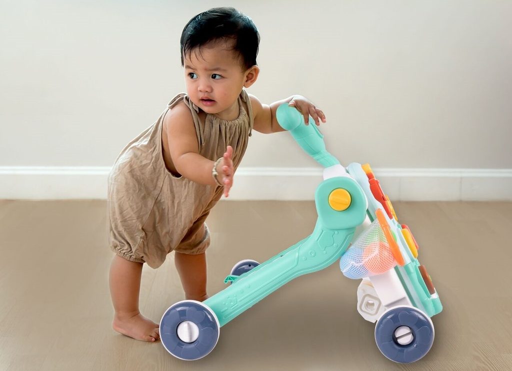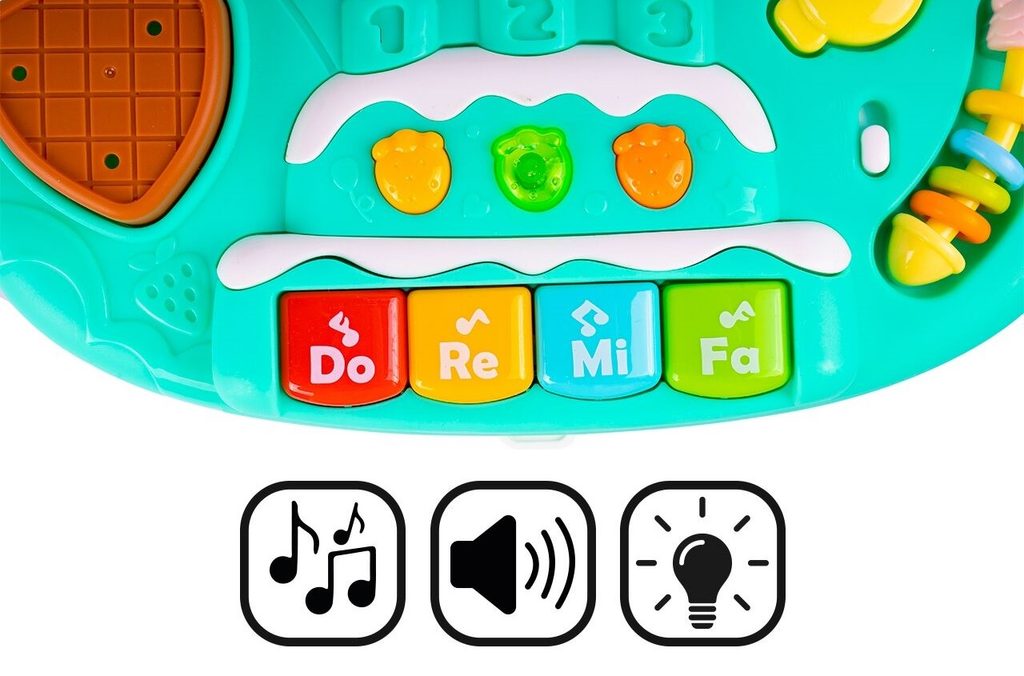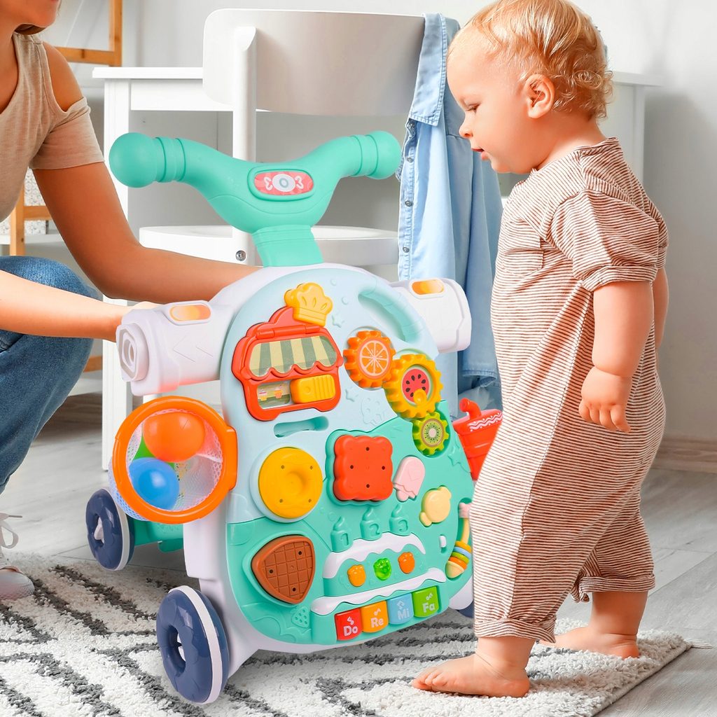 Dětské multifunkční chodítko Active Table 2v1 pro ty nejmenší děti, edukační centrum. Lze ho využít jako samostatné chodítko nebo hudební stoleček pro sedící děti. Panel je vybaven piánem s podsvícenými klávesami, otevírací mušlí, košíkovou se 3 míčky, otáčivými ozubenými kolečky a spoustou dalších zábavných prvků. V horní části chodítka je umístěn držák pomocí kterého dítě snadno udrží rovnováhu a nespadne na zem. Kolečka mají protiskluzovou úpravu a brzdu. Určeno pro děti od 12 měsíců věku a je ideální hračkou pro nauku prvních krůčků.