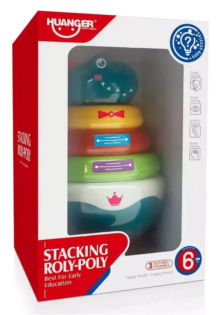 Multifunkční hračka Haunger pro nejmenší děti ve tvaru pyramidy Roly Poly Unicorn je ideální hračkou pro ty nejmenší děti. Tato hračka roste spolu s dítětem. Obruče slouží jako chrastítka, stimulují tak zrak, sluch a hmat. Celý jednorožec se také naklání ze strany na stranu, je tak skvělou pomůckou při plazení. Poslední funkcí je uspořádávaní prstenců což podporuje rozvoj manuální zručnosti a učí děti rozpoznávat barvy. Hračka je určena pro děti od 3 měsíců věku.