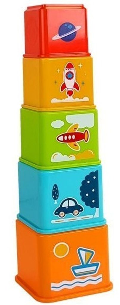 Haunger edukační pyramida Stack Blocks je určena pro ty nejmenší děti. Skládá se z 5 kostek v různých velikostech a barvách, ze kterých lze vytvořit pyramidu. Tři z nich mají prohazovací otvory, kterými lze vkládat přiložené kostky. Ty jsou provedeny ve tvaru autíčka, letadla a lodě. Tato hračka je ideální hračkou pro rozvoj dětské motoriky, hmatu, zraku, logického myšlení, rozpoznávání barev a tvarů. Je určena pro děti od 12 měsíců věku.