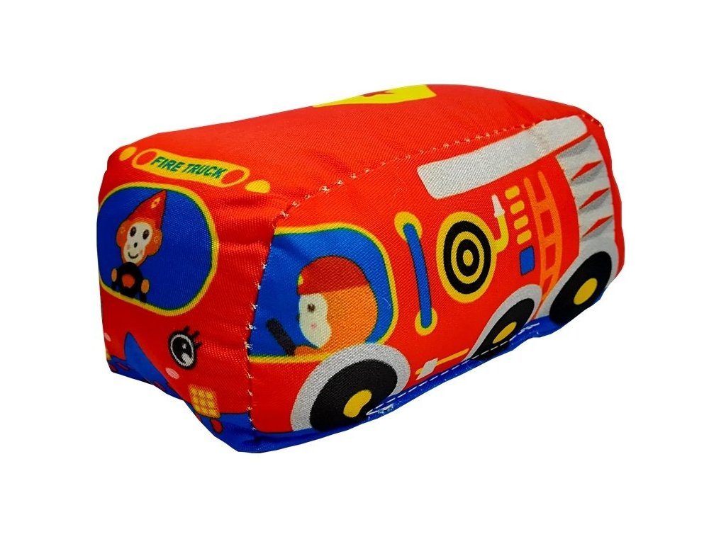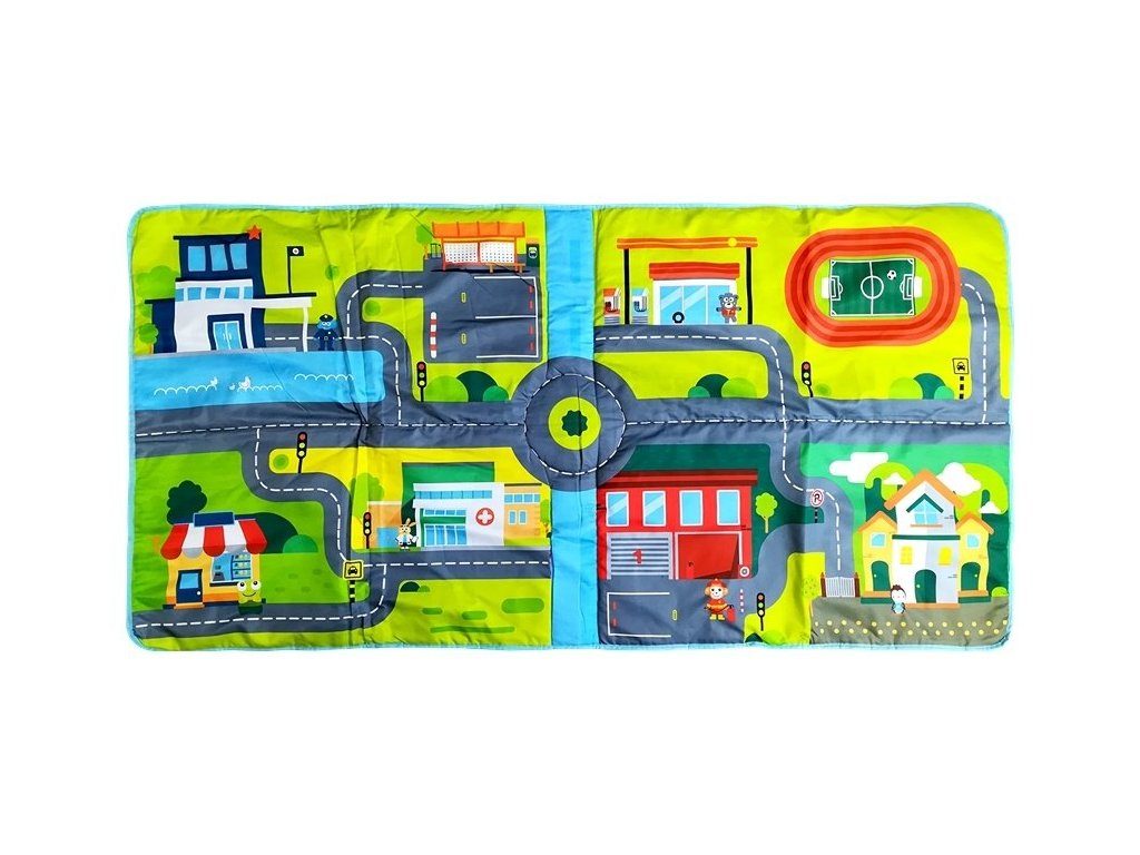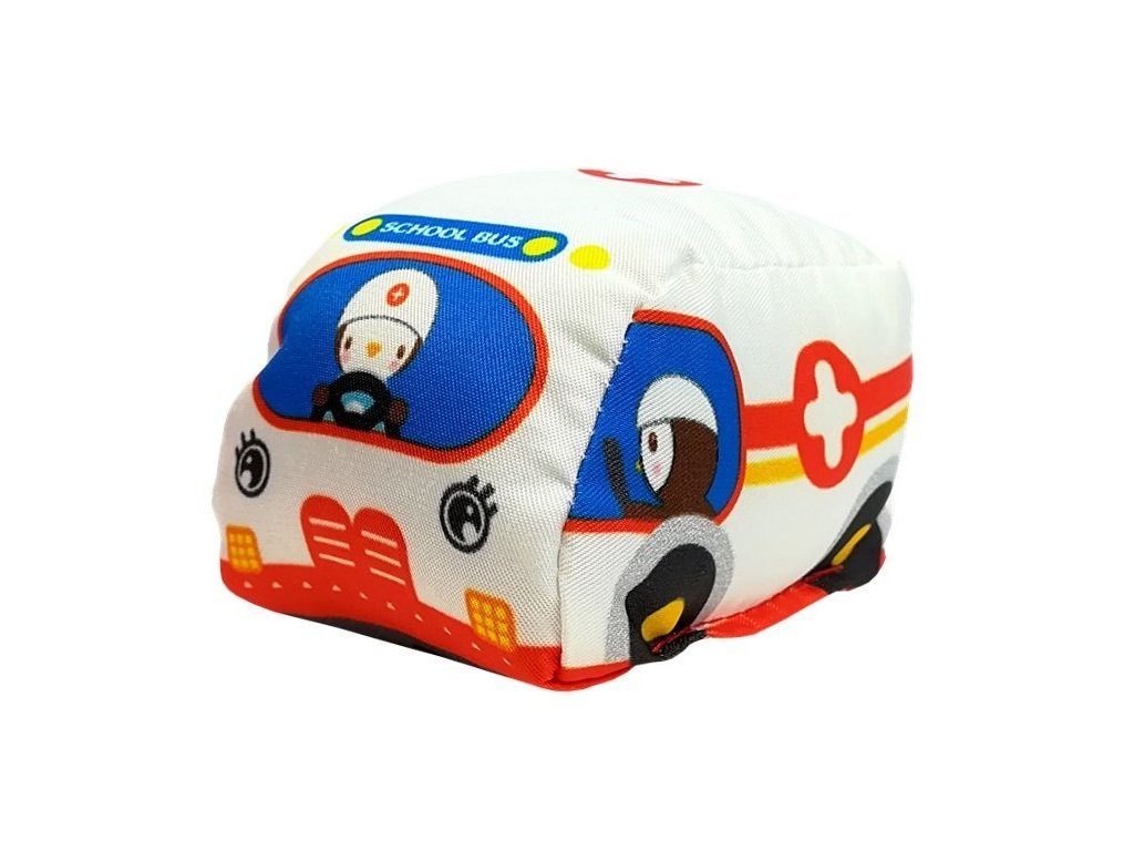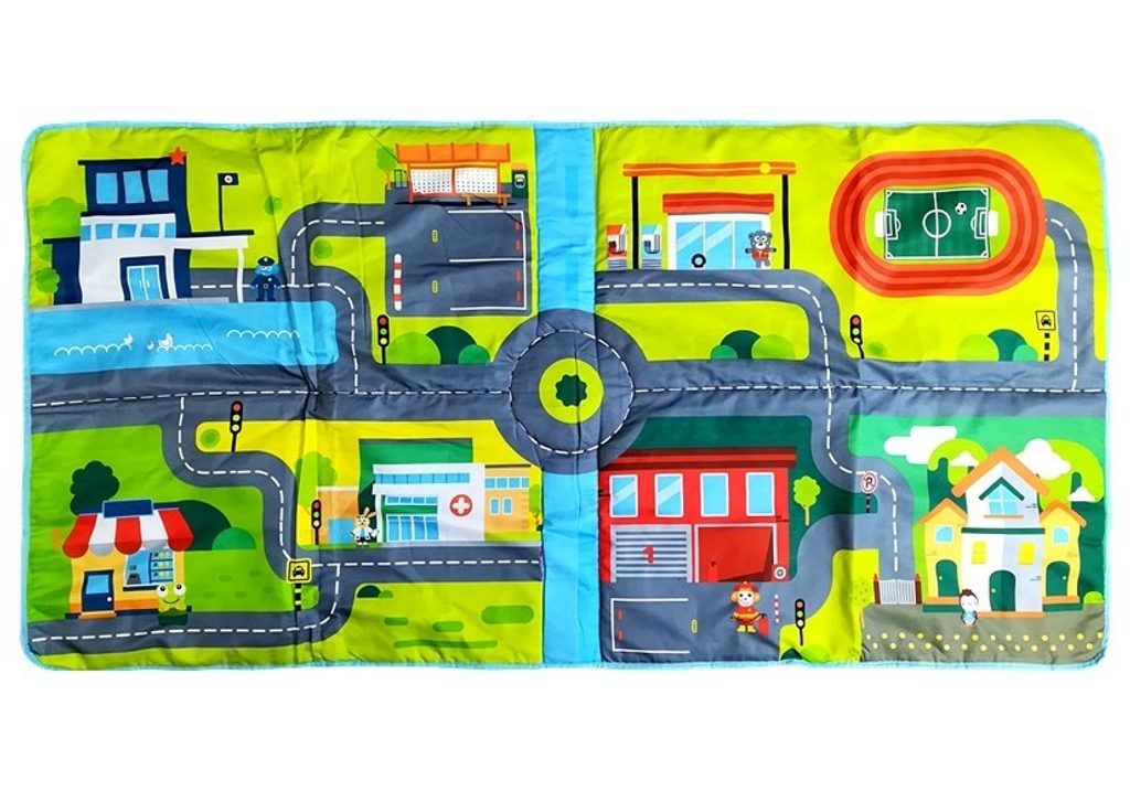 Barevná hrací deka Haunger Game Carpet je určena pro děti od 12 měsíců věku. Měkká deka má rozměry 152x80 cm. Součástí balení je 6 měkkých látkových autíček s výplní, které vydávají různé zvuky. Autobus, policejní auto a taxík šustí, zmrzlinový vůz a sanitka vydávají zvuk zvonku a hasičské auto imituje troubení.