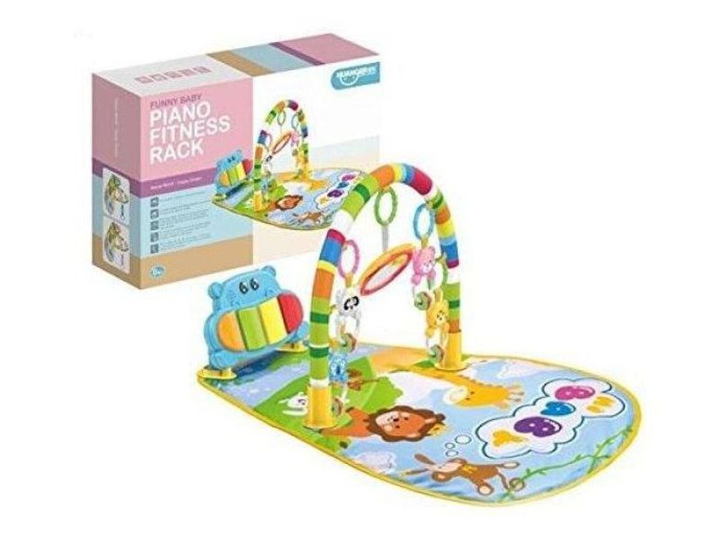 Barevná hrací deka Haunger 2v1 je určena Vašemu dítěti už od narození. Součástí deky je hrazdička se zavěšenými chrastítky a malinkým zrcadlem a také pianko, které má 3 režimy.Dítě si může v leže hrát s chrastítky a sledovat se u toho v zrcátku a pianko může být využito jako uspávací melodie (0-12 měsíců). Na břiše se dítě naučí zvedat hlavičku a pozorovat věci kolem sebe, pomůže mu k prvním krůčkům a zároveň oděluje dítě od chladné podlahy (6-18 měsíců). Zároveň se tím prohlubuje motorika dítěte, rozvíjí se sluch a zrak (6-36 měsíců).