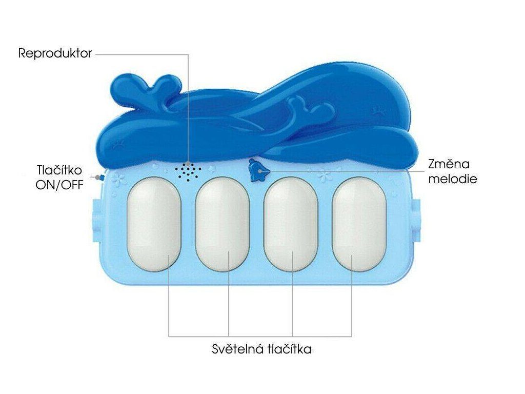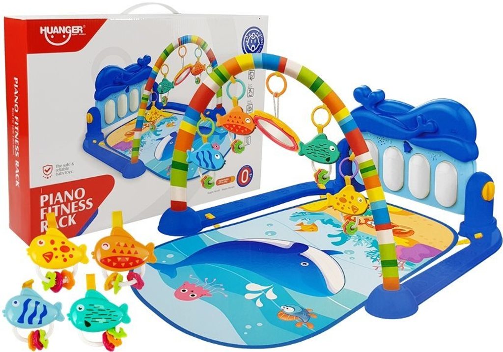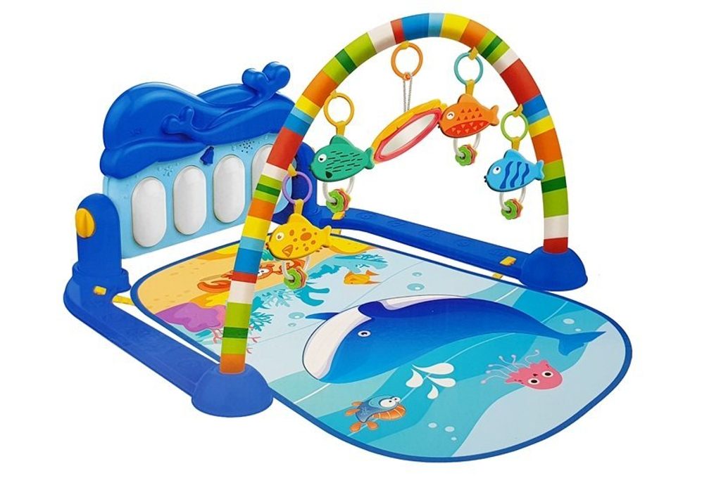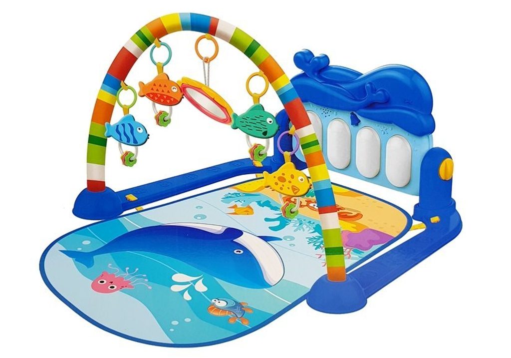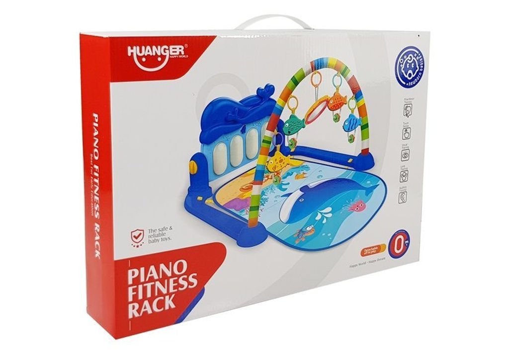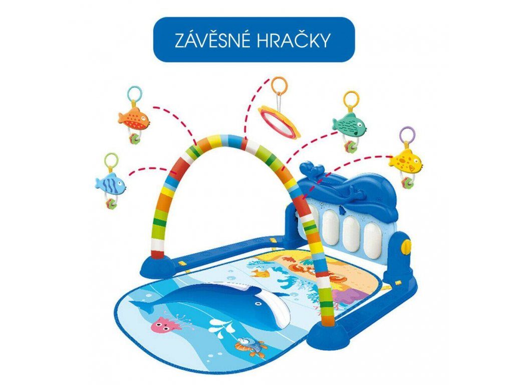 Barevná hrací deka Haunger 3v1 Delfínek je určena Vašemu dítěti už od narození. Součástí deky je hrazdička se zavěšenými chrastítky a malinkým zrcadlem a také pianko, které svítí a hraje melodie. Dítě si může v leže hrát s chrastítky a sledovat se u toho v zrcátku a pianko může být využito jako uspávací melodie (0-12 měsíců). Na břiše se dítě naučí zvedat hlavičku a pozorovat věci kolem sebe, pomůže mu k prvním krůčkům a zároveň oděluje dítě od chladné podlahy (6-18 měsíců). Pokud již dítě samostatně sedí může hrát na pianko nebo ho využít jako interaktivní stoleček. Zároveň se tím prohlubuje motorika dítěte, rozvíjí se sluch a zrak (6-36 měsíců).