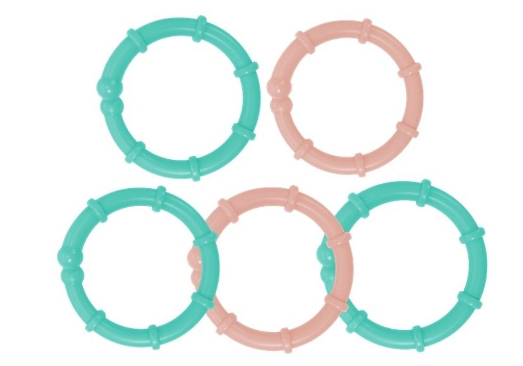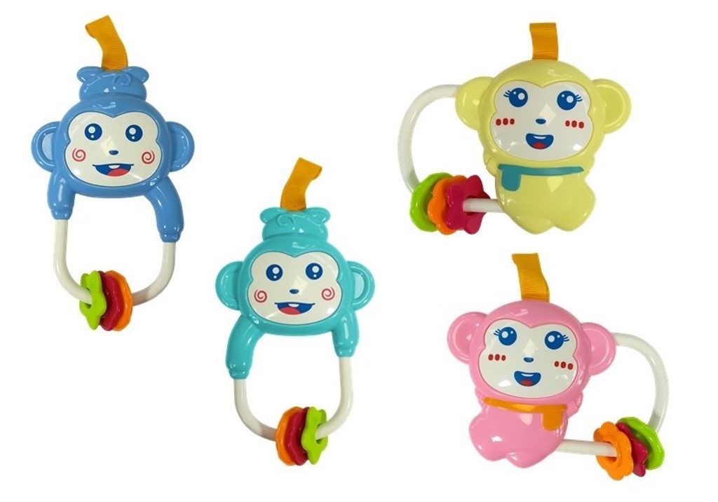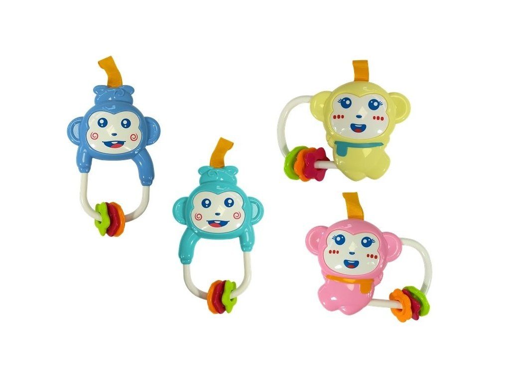 • na hrazdičce jsou zavěšeny chrastítka ve tvaru zvířátek a malinké zrcadlo