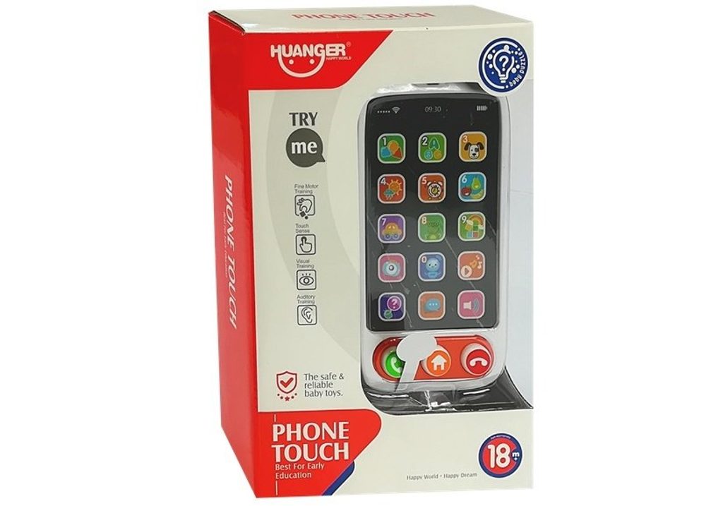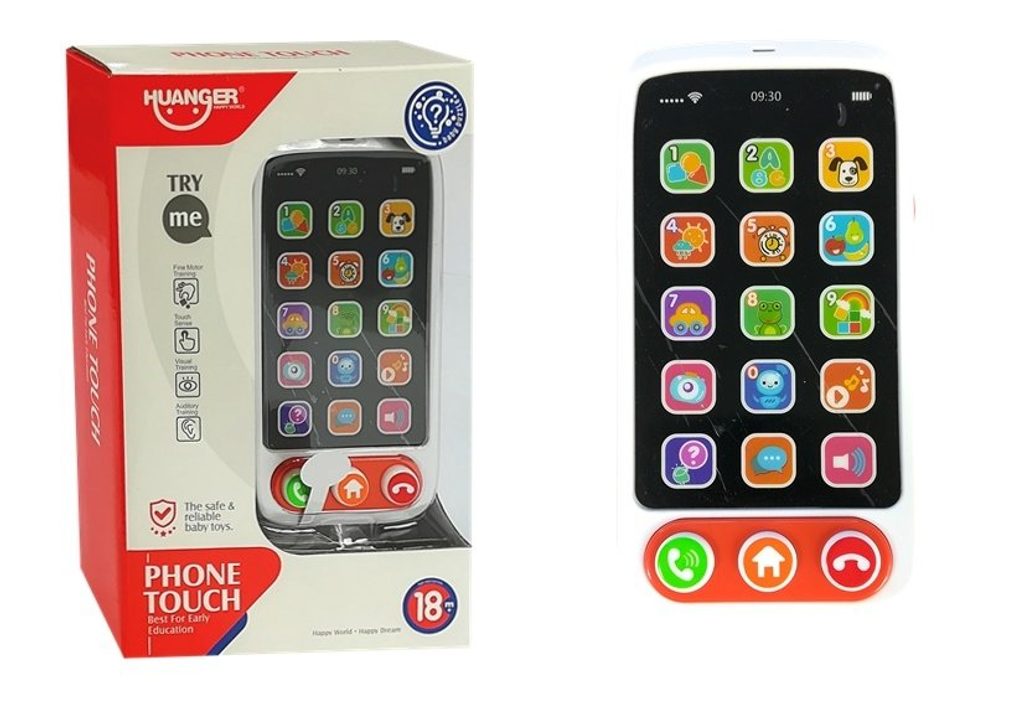 Haunger interaktivní dotykový telefon Phone Touch je určen pro ty nejmenší děti. Nabízí dětem celkem 5 druhů zábavy kdy předříkává názvy v angličtině, slouží jako piánko, opakuje názvy obrázků, má režim malování a také zábavnou rychlostí hru s 5 úrovněmi. Je ideální hračkou pro rozvoj dětské motoriky, hmatu, zraku, logického myšlení, rozpoznávání barev a tvarů. Hračka je určena pro děti od 18 měsíců věku.