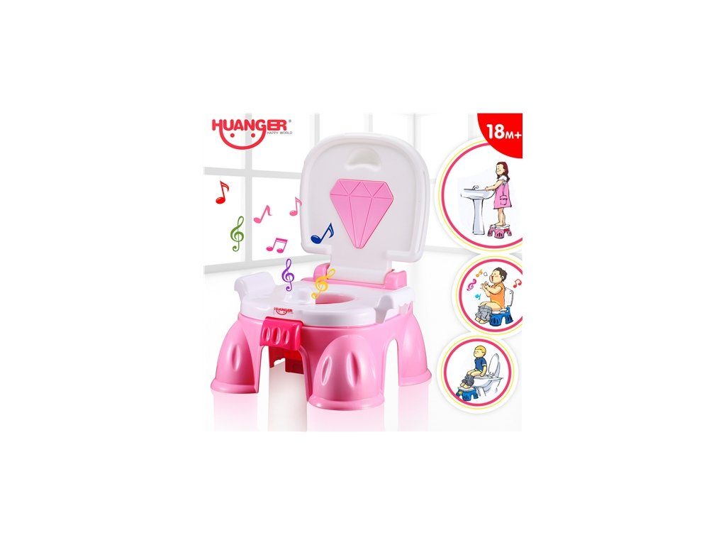 Haunger interaktivní hrající nočník je určen pro ty nejmenší děti. Má celkem 4 způsoby využití, takže přímo roste z Vaším dítětem. Pro výuku používání toalety slouží pro nejmenší děti jako pohodlný nočník. Pro větší děti lze využít prkýnko pro zvětšení otvoru na klasické tolaletě. Poslední využití je jako stolička před umyvadlo nebo pod skříňku. Po použití toalety se spouští veselé melodie. Spodní nádoba je vyjímatelná. Nočník je určen pro děti od 18 měsíců věku.