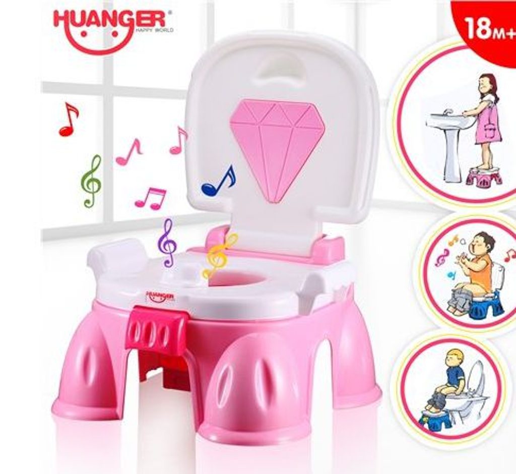 Haunger interaktivní hrající nočník je určen pro ty nejmenší děti. Má celkem 3 způsoby využití, takže přímo roste z Vaším dítětem. Pro výuku používání toalety slouží pro nejmenší děti jako pohodlný nočník. Pro větší děti lze využít prkýnko pro zvětšení otvoru na klasické tolaletě. Poslední využití je jako stolička před umyvadlo nebo pod skříňku.Po použití toalety se spouští veselé melodie. Spodní nádoba je vyjímatelná. Nočník je určen pro děti od 18 měsíců věku.