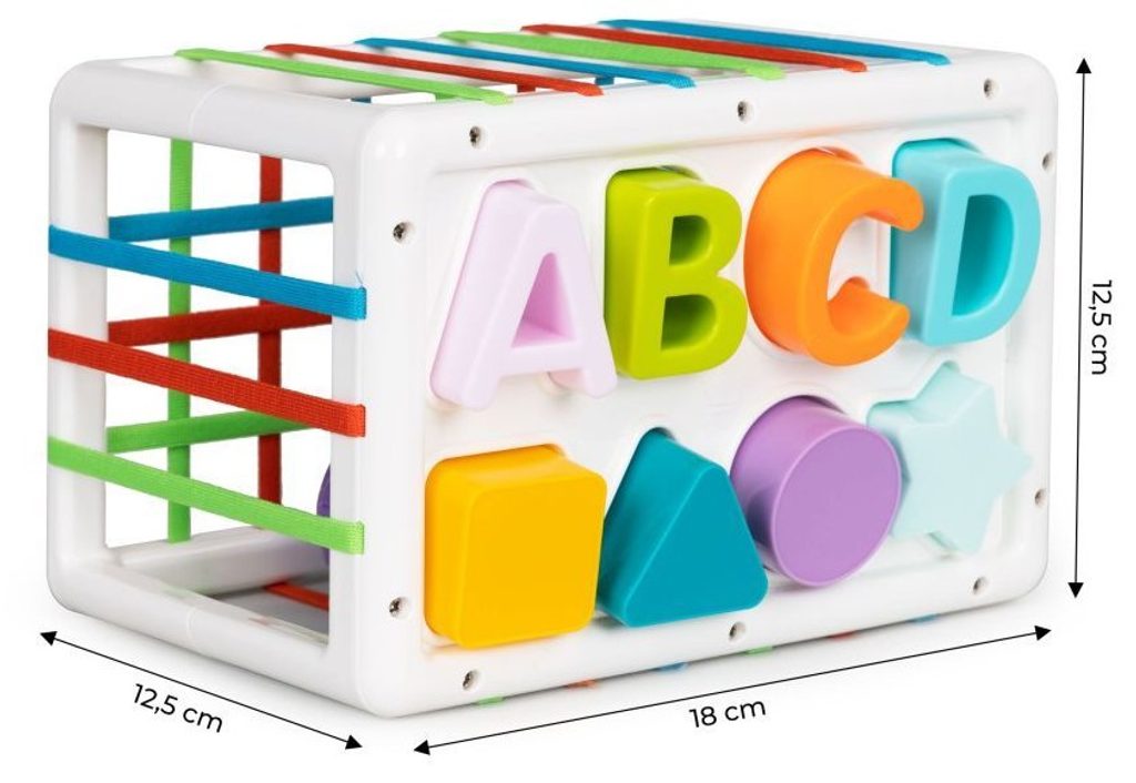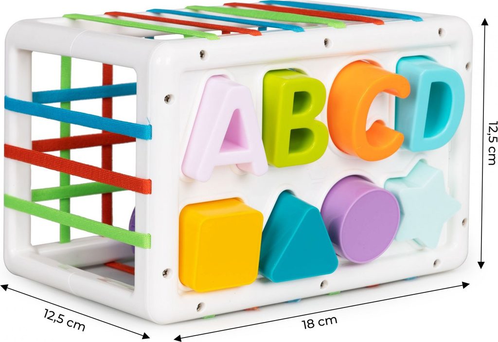 Haunger sada barevných plastových kostek Shape Sorting je určena pro ty nejmenší děti. Stimuluje u nich představivost, mysl, zrak a hlavně manuální zručnost. V boční části boxu jsou umístěny vkládací otvory. V sadě najdete celkem 14 kostek v různých barvách. Hračka je určena pro děti od 18 měsíců věku.
