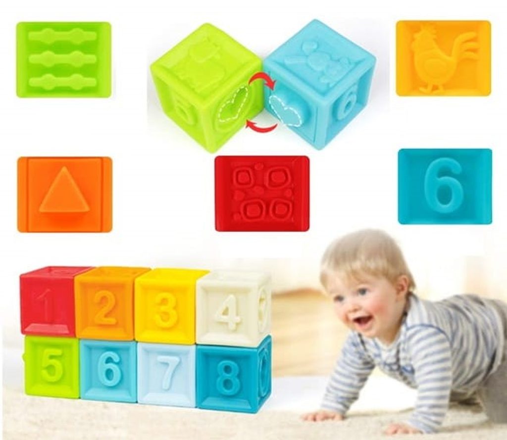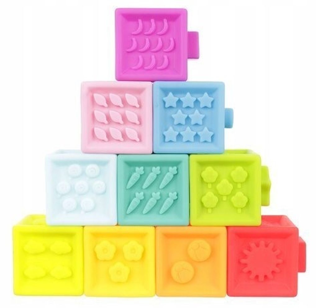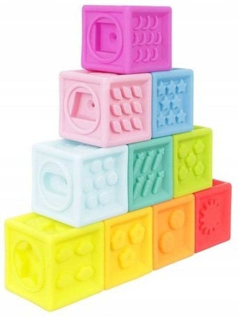Haunger sada měkkých senzorických kostek Textured Blocks je určena pro ty nejmenší děti. Stimuluje u nich představivost, mysl, zrak a sluch. Zmáčknutím se ozve zvuk a navíc tímto dítě posiluje ruce. V sadě najdete celkem 10 kostek míčků v různých barvách s vyobrazením číslic, zvířátek a tvarů vyrobených ze zcela bezpečného materiálu. Hračka je určena pro děti od 6 měsíců věku.