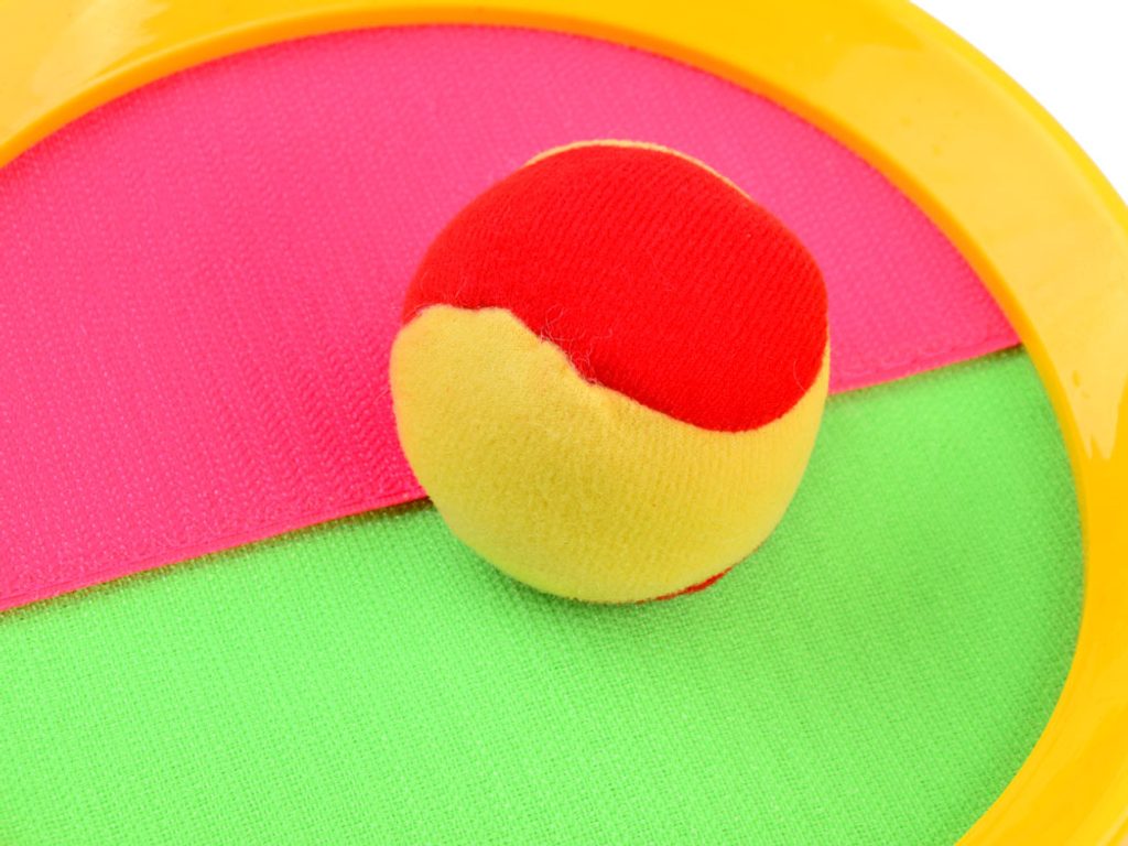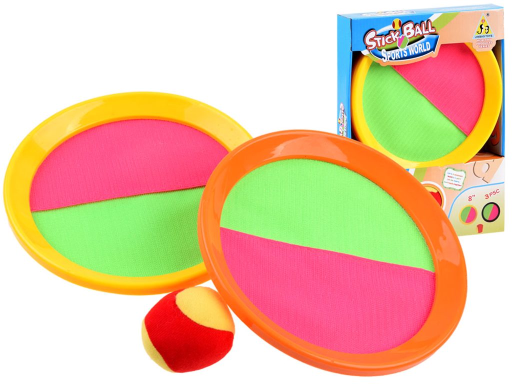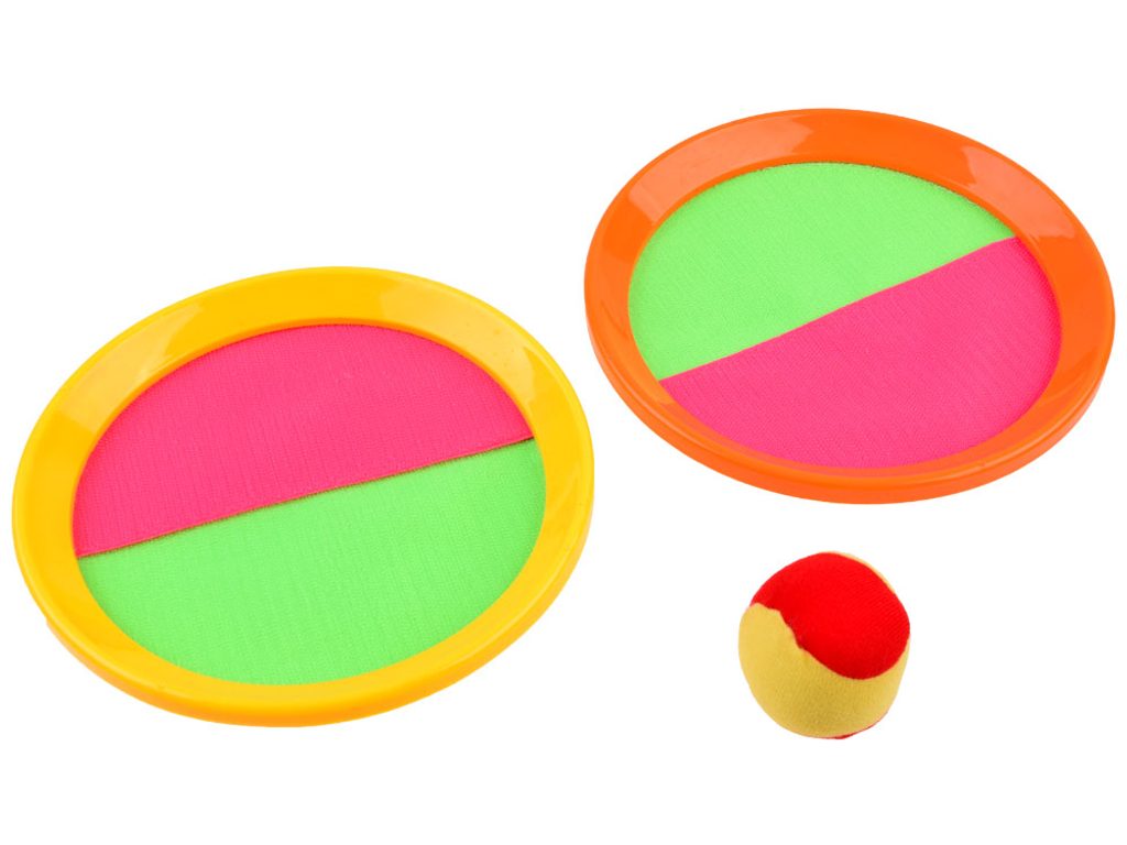 Hra Catch Ball je ideální hračkou pro všechny děti, kteří rádi tráví čas aktivně. Je ideální na pláž, do parku nebo na domácí zahradu. Talíře mají střed kompletně vyplněný suchým zipem, díky kterému chytáme míček hozený soupeřem. Okraj talíře je vyroben z odolného plastu a na zadní straně je nastavitelná rukojeť, která umožní přizpůsobit se velikosti dětské ruky. Míček je vyrobený z měkkého, snadno připevnitelného materiálu, který usnadňuje chytání.
