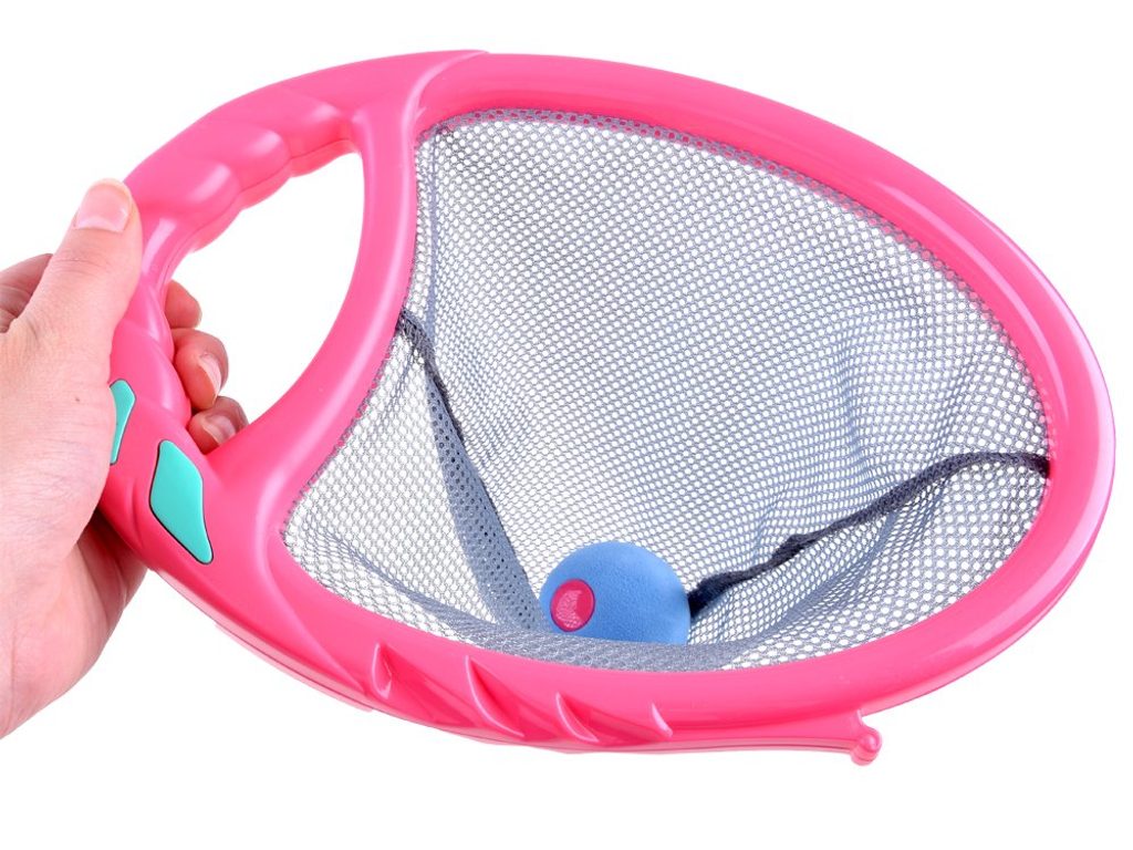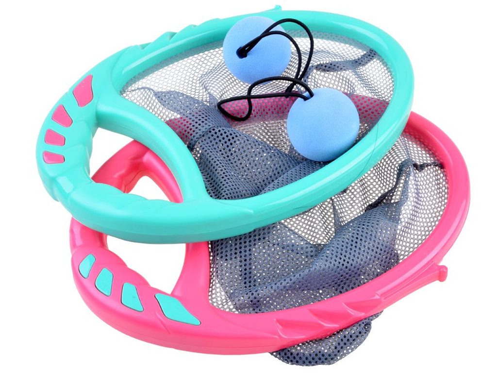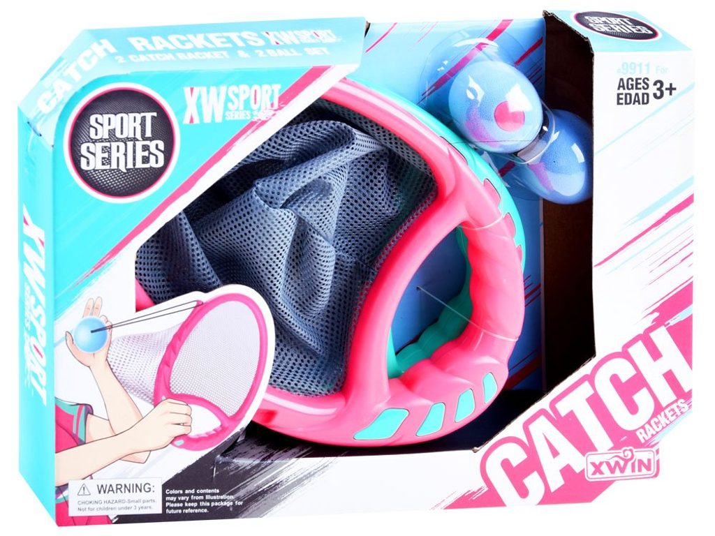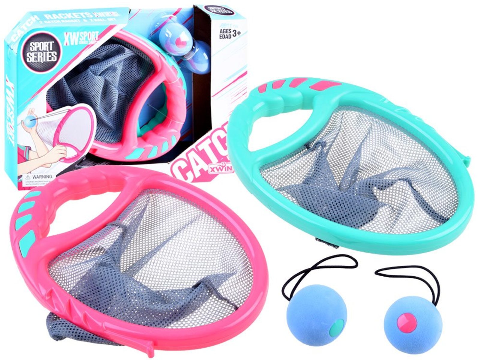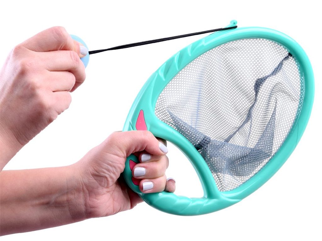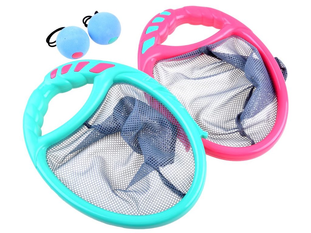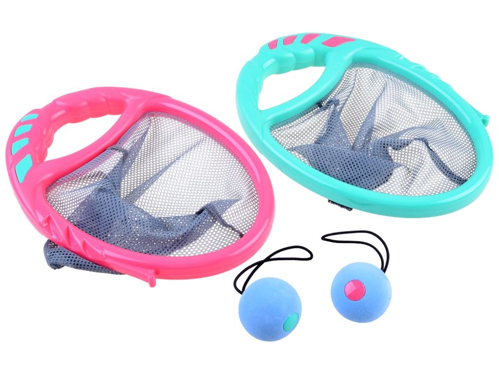 Hra Catchball Racket je ideální hračkou pro všechny děti, kteří rádi tráví čas aktivně. Je ideální na pláž, do parku nebo na domácí zahradu. Lapače jsou vybaveny síťkou do které chytáme míček hozený soupeřem. Ten se hází pomocí natažení gumičky, zamíření a jeho vystřelení do protivníkova lapače. Hračka je určena pro děti od 3 let věku.