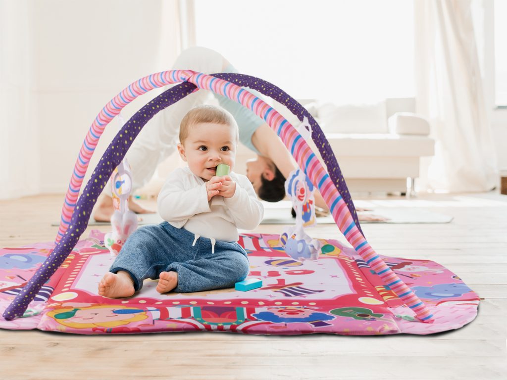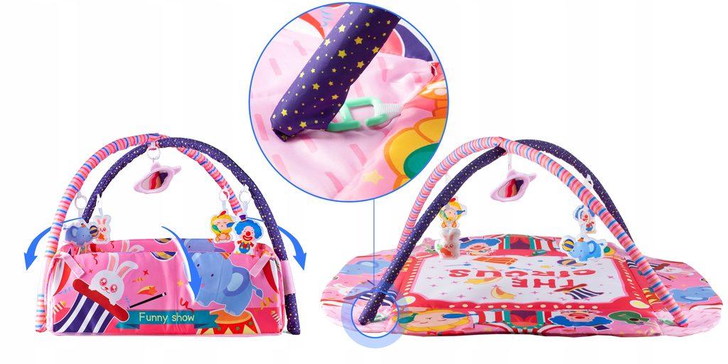 • vybavena barevnými hrazdičkami se 4 zavěšenými hračkami s pískátky