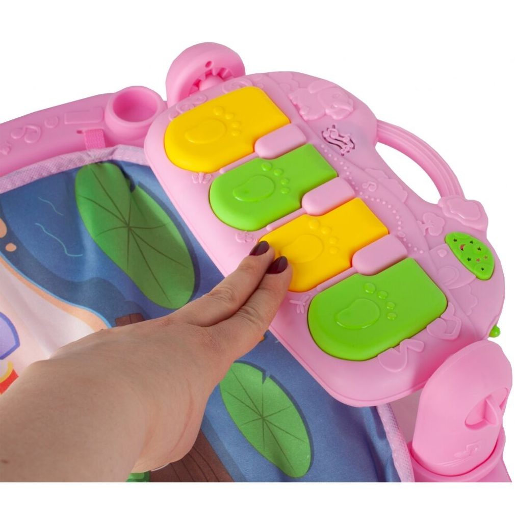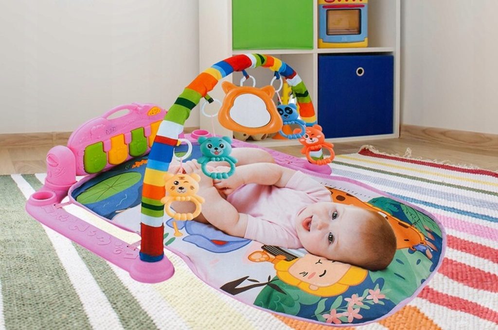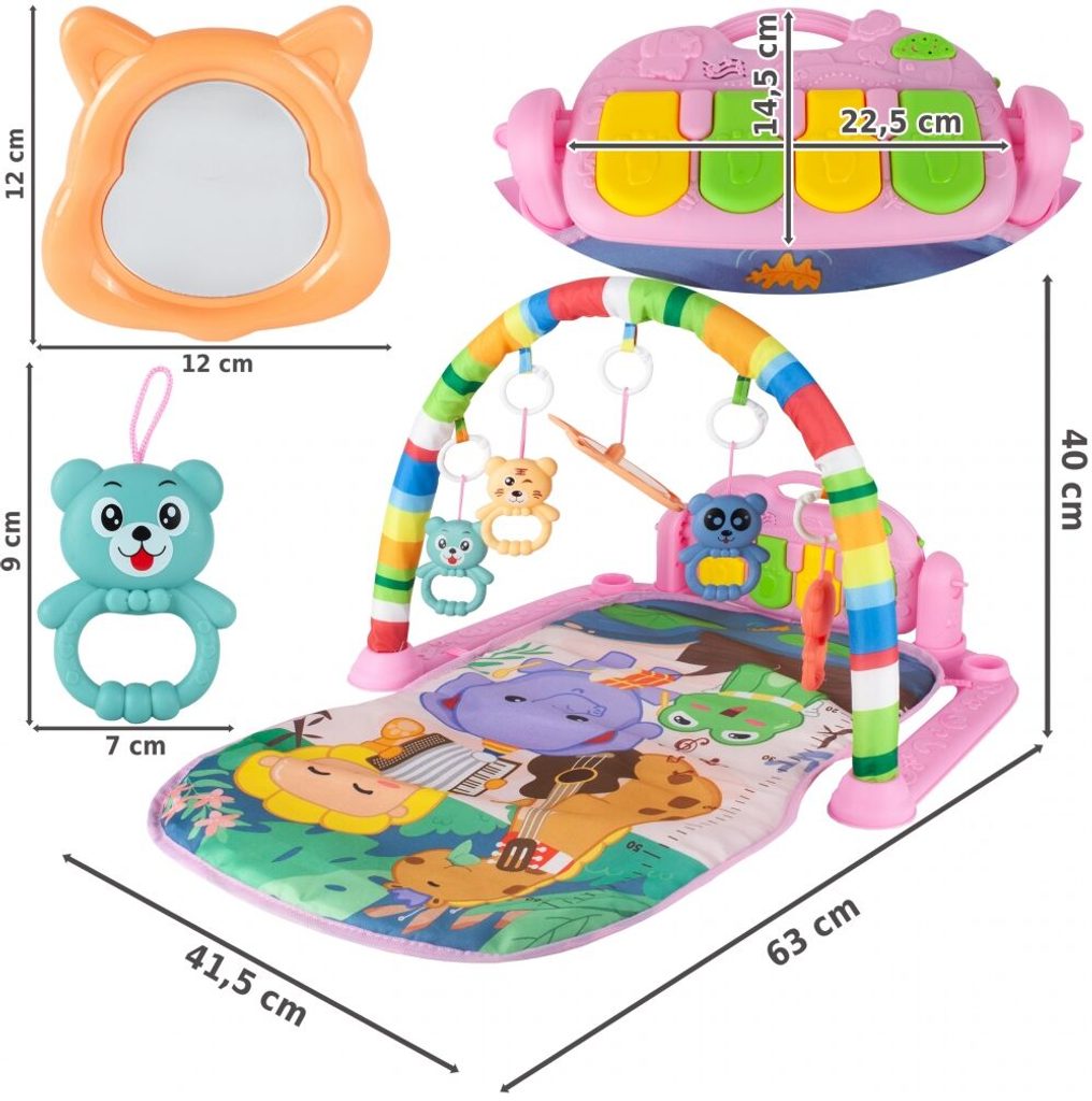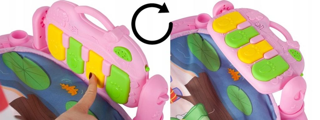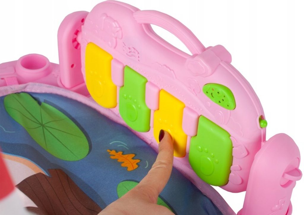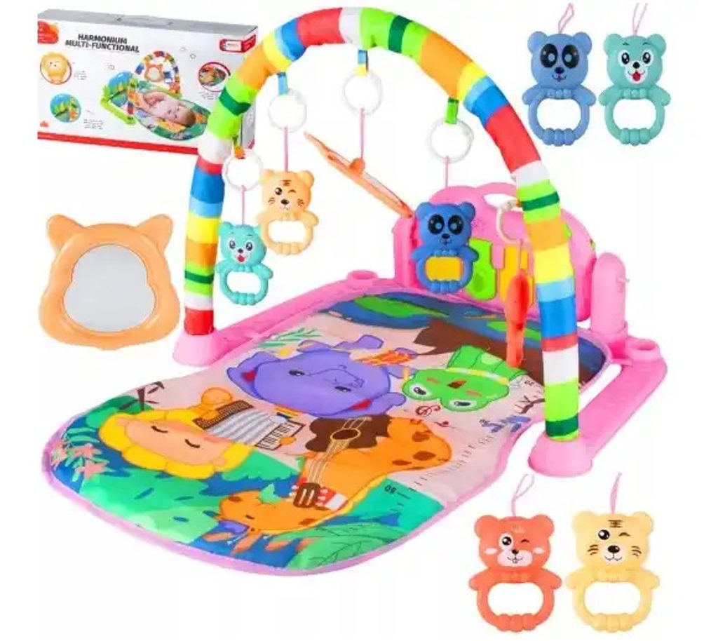 Barevná hrací deka Harmonika je určena Vašemu dítěti už od narození. Součástí deky je hrazdička se zavěšenými chrastítky a malinkým zrcadlem a také pianko, které hraje melodie. Dítě si může v leže hrát s chrastítky a sledovat se u toho v zrcátku a pianko může být využito jako uspávací melodie (0-12 měsíců). Na břiše se dítě naučí zvedat hlavičku a pozorovat věci kolem sebe, pomůže mu k prvním krůčkům a zároveň odděluje dítě od chladné podlahy (6-18 měsíců). Pokud již dítě samostatně sedí může hrát na pianko nebo ho využít jako interaktivní stoleček. Zároveň se tím prohlubuje motorika dítěte, rozvíjí se sluch a zrak (6-36 měsíců).